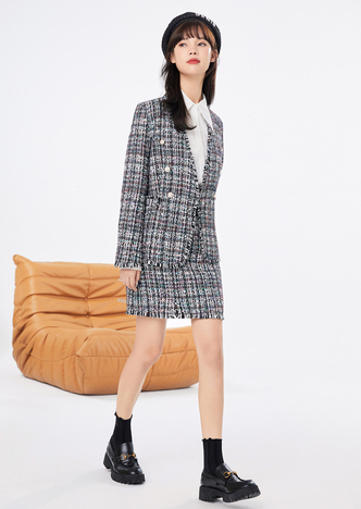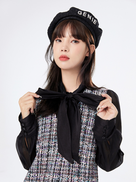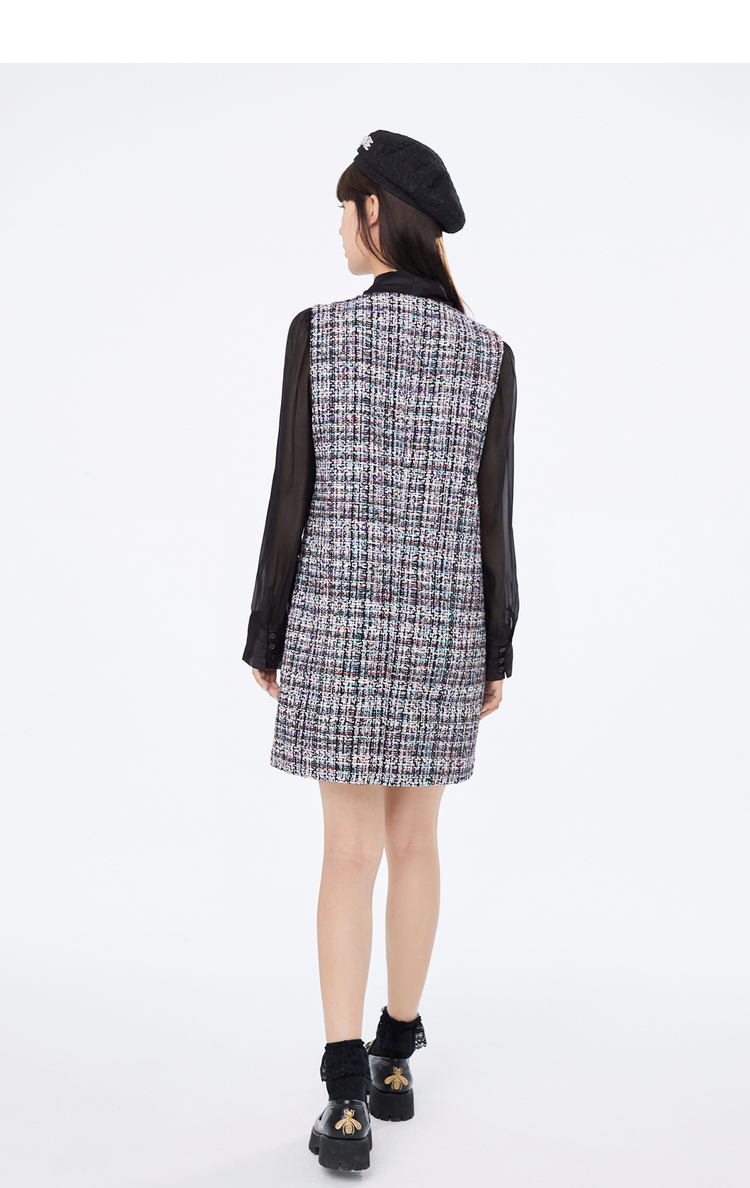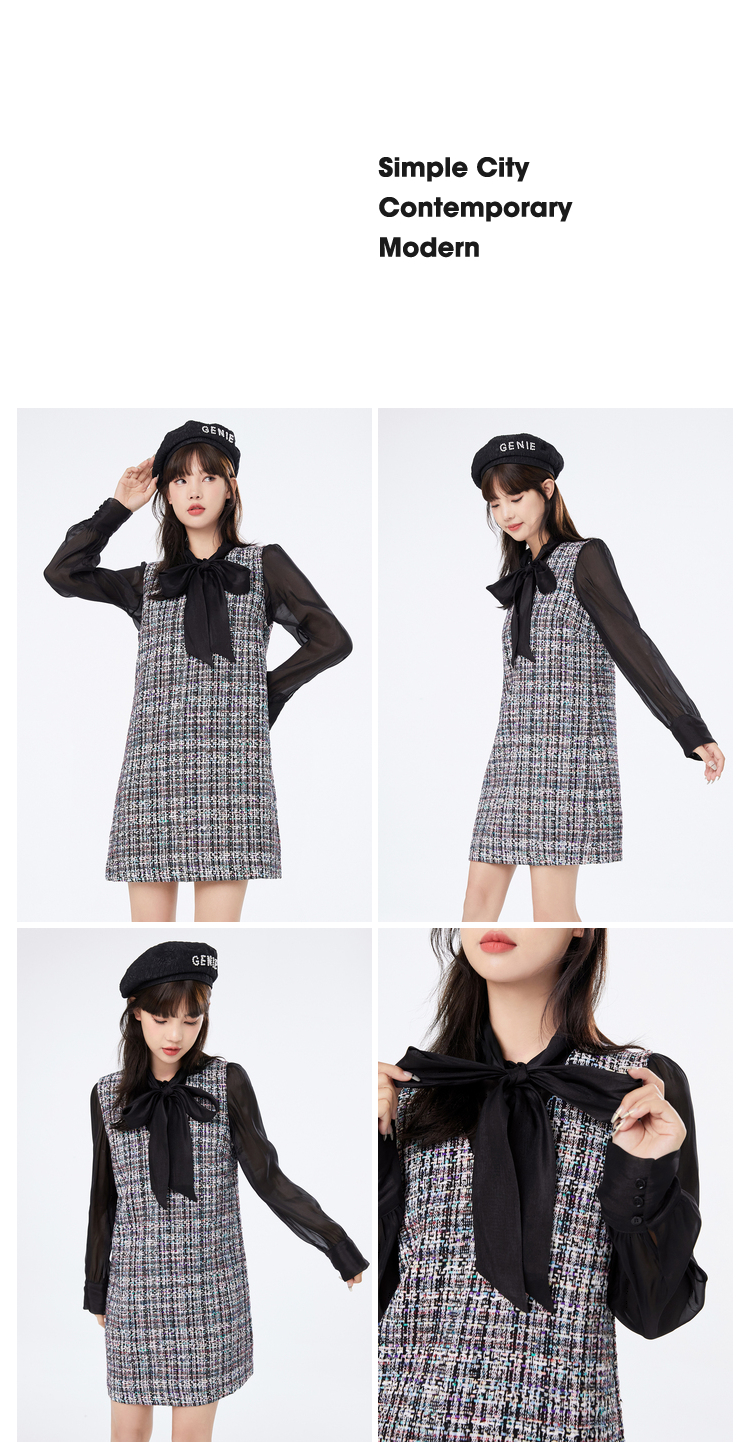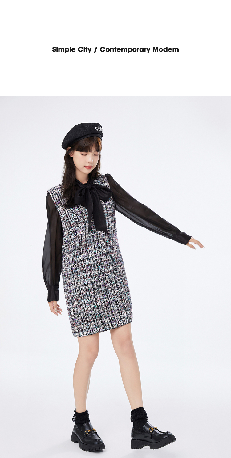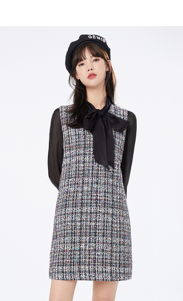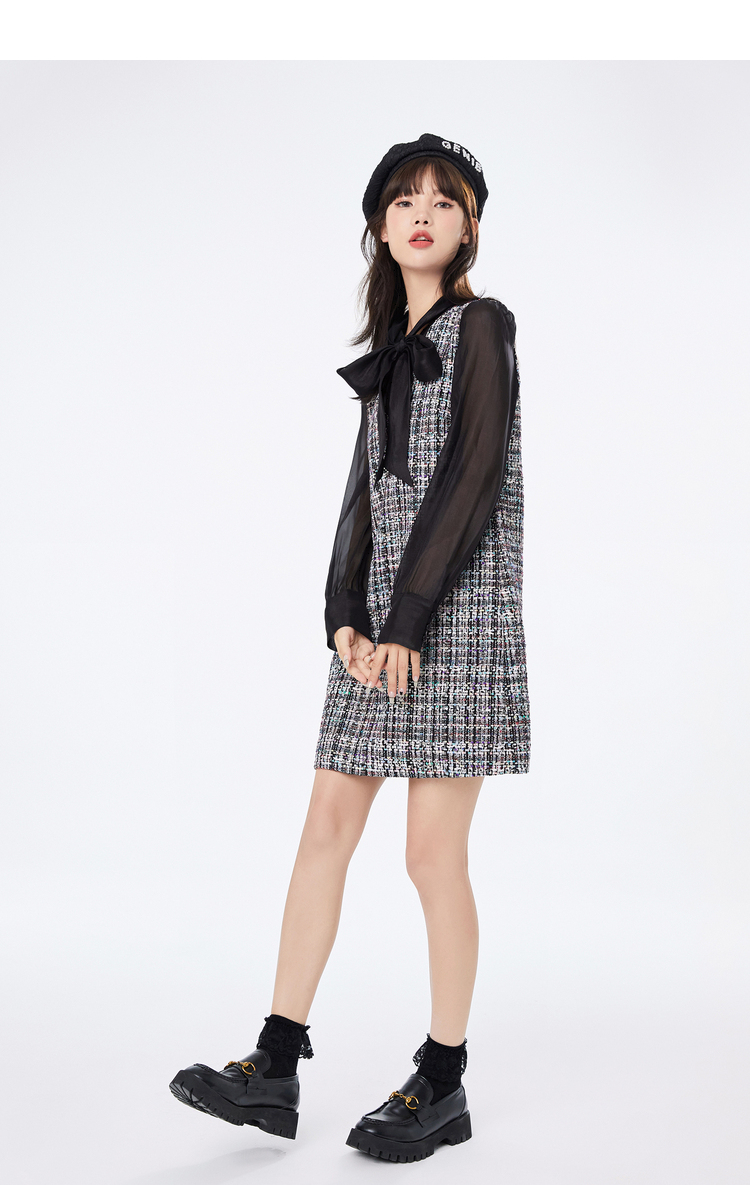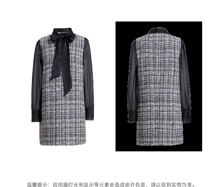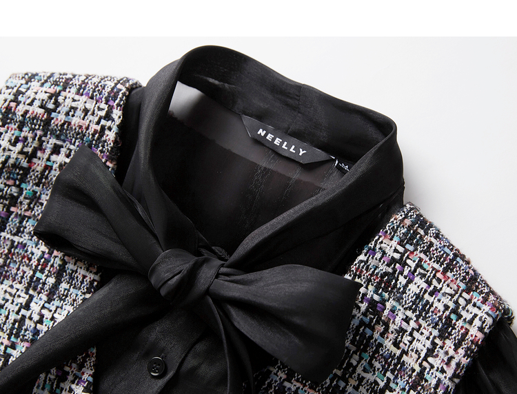NEELLY纳俪假两件连衣裙女微透视衬衣拼接小香风直筒裙小个子NE2001DY377