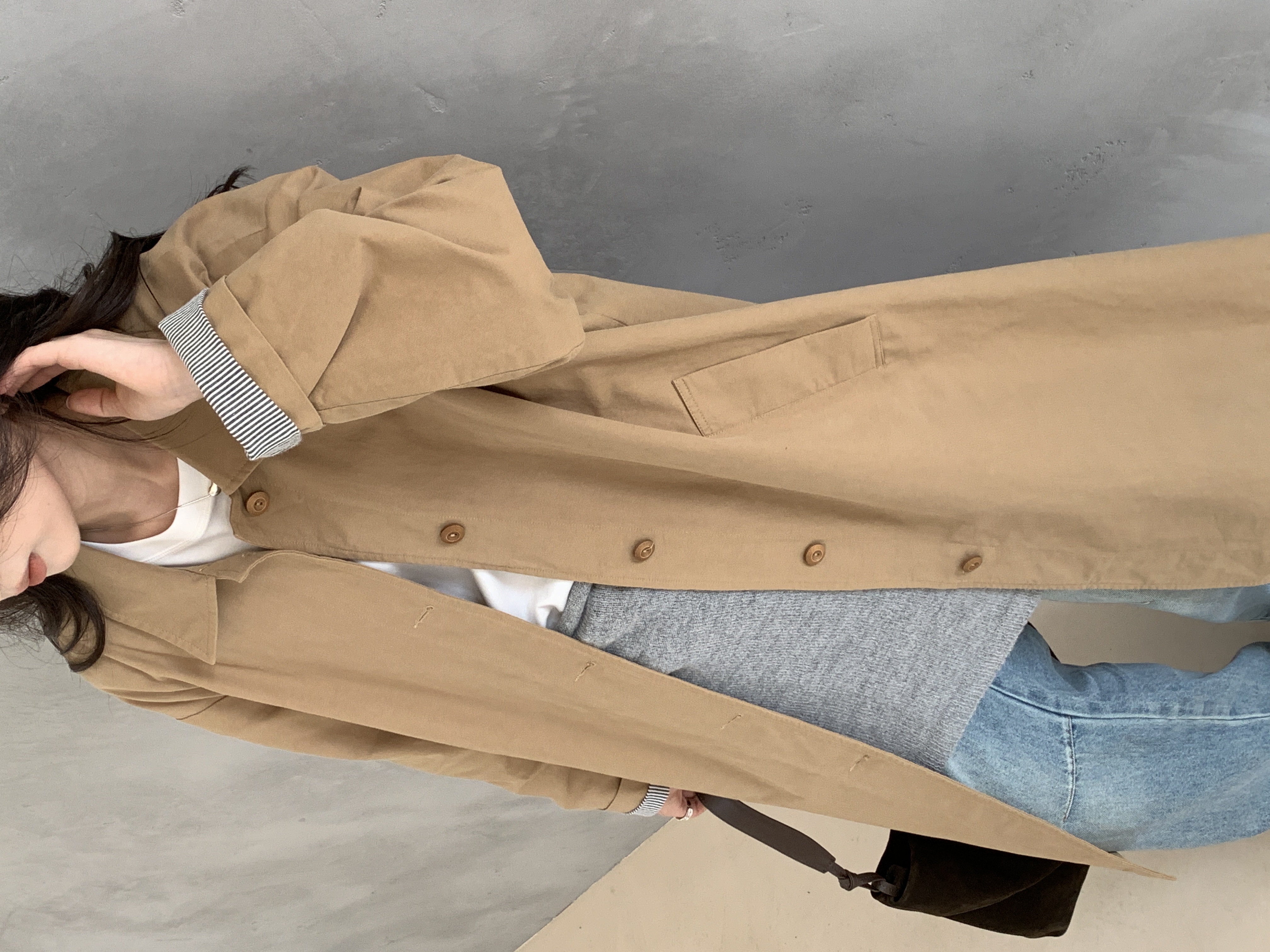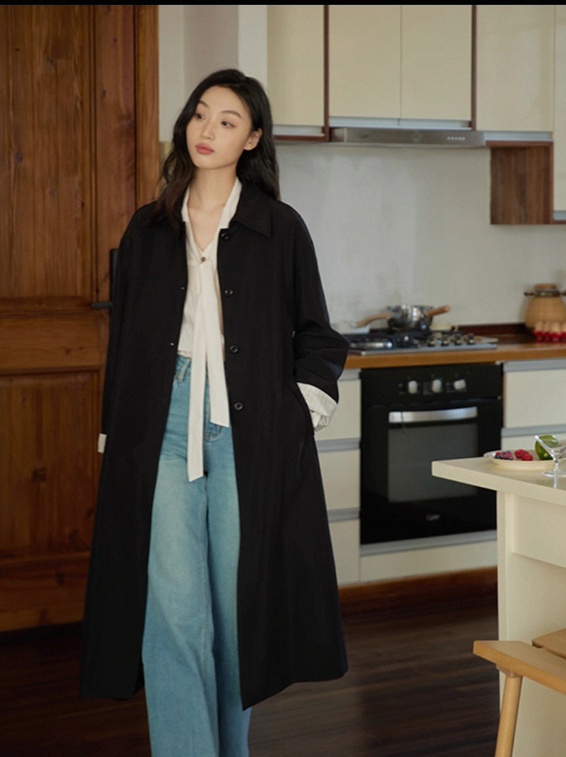 老米优品🎈3-5天。韩代同款《松弛感100%棉撞色袖复古风衣》廓形中长款!复古文艺氛围感~WT251027A