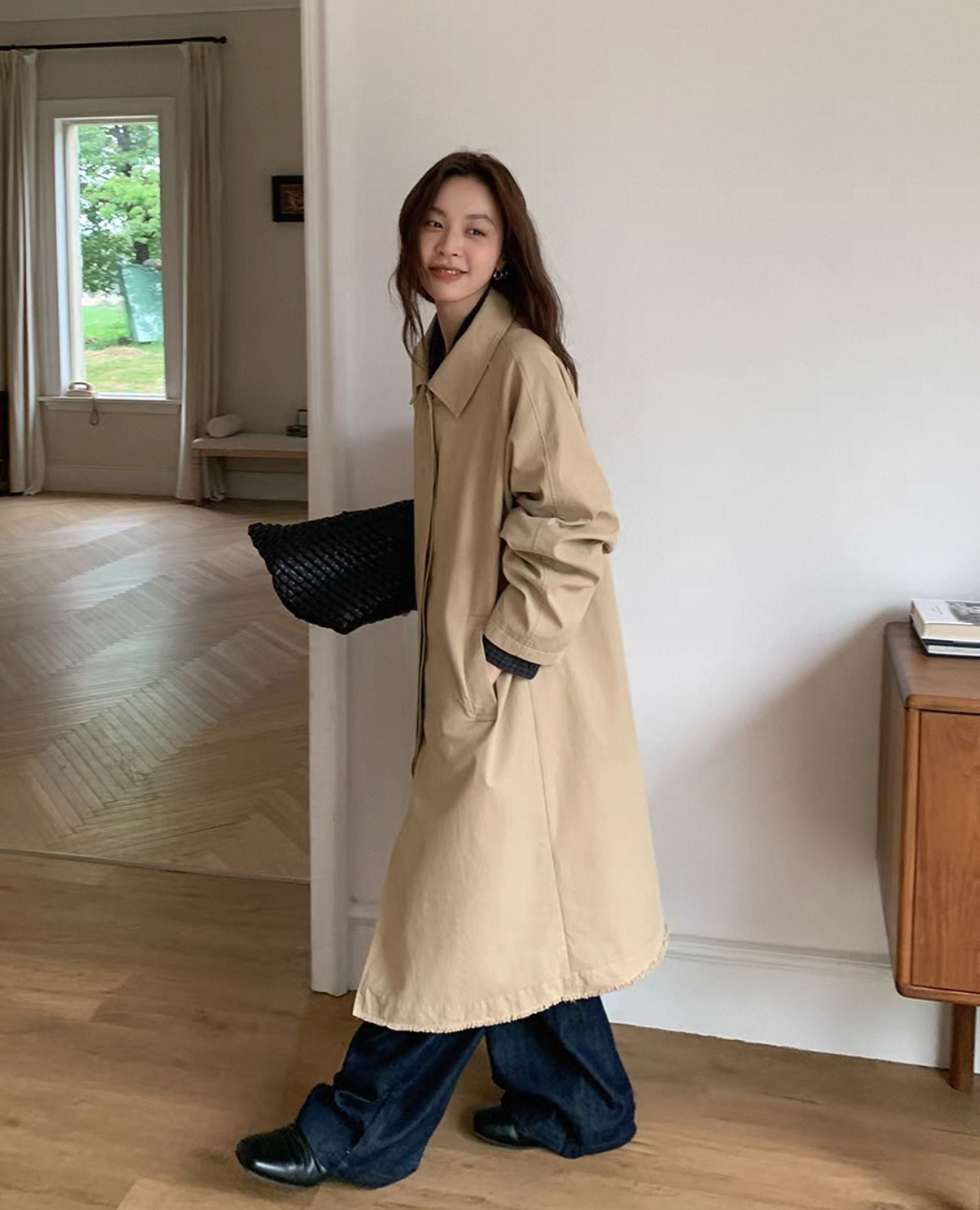 中长款廓形剪裁,潇洒落肩,行走间尽是松弛,