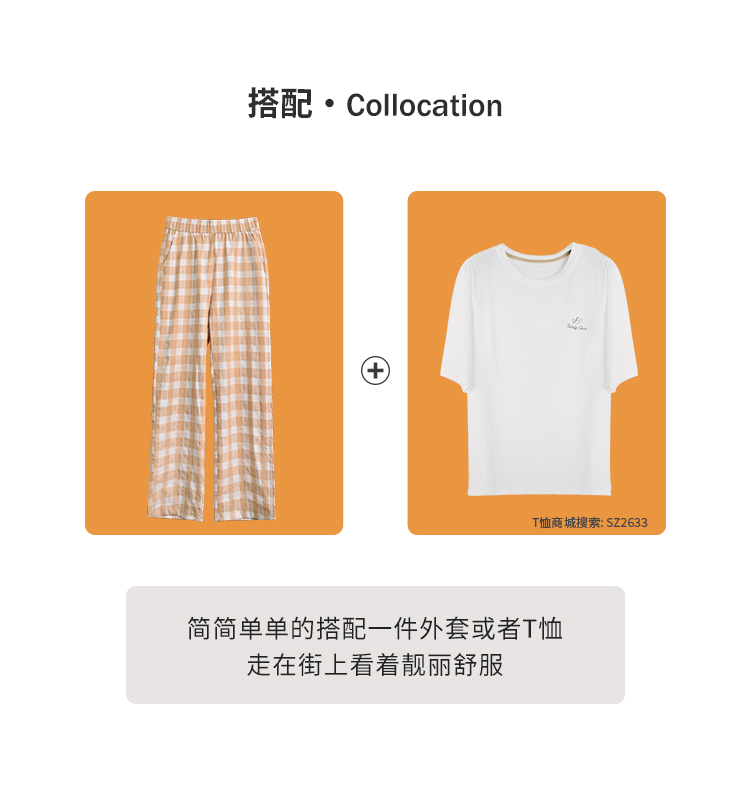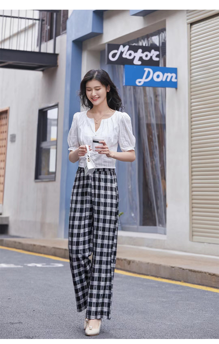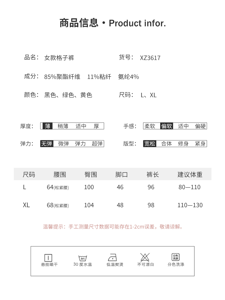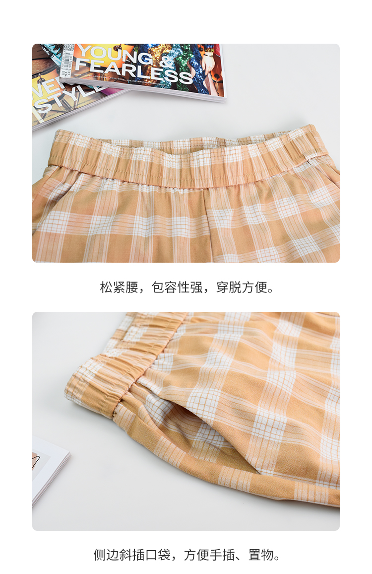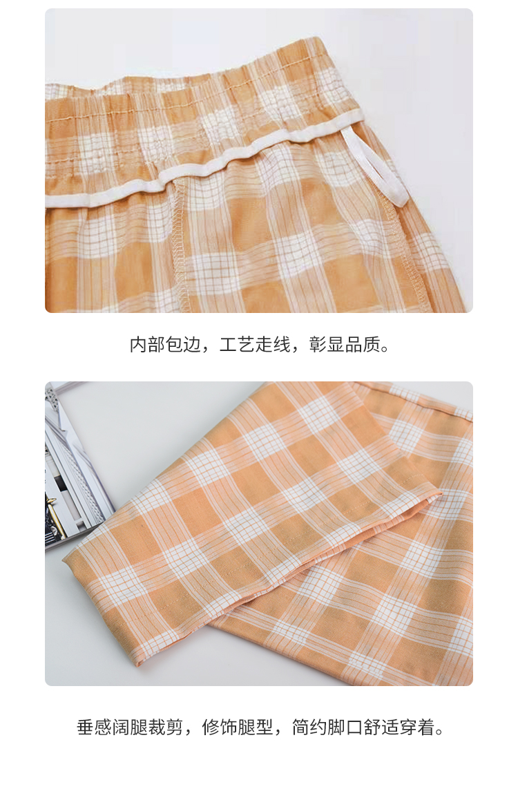 【舒适感极强,必买!】皇家丽美松紧腰柔软舒适格子元素中高腰休闲阔腿裤XZ3617