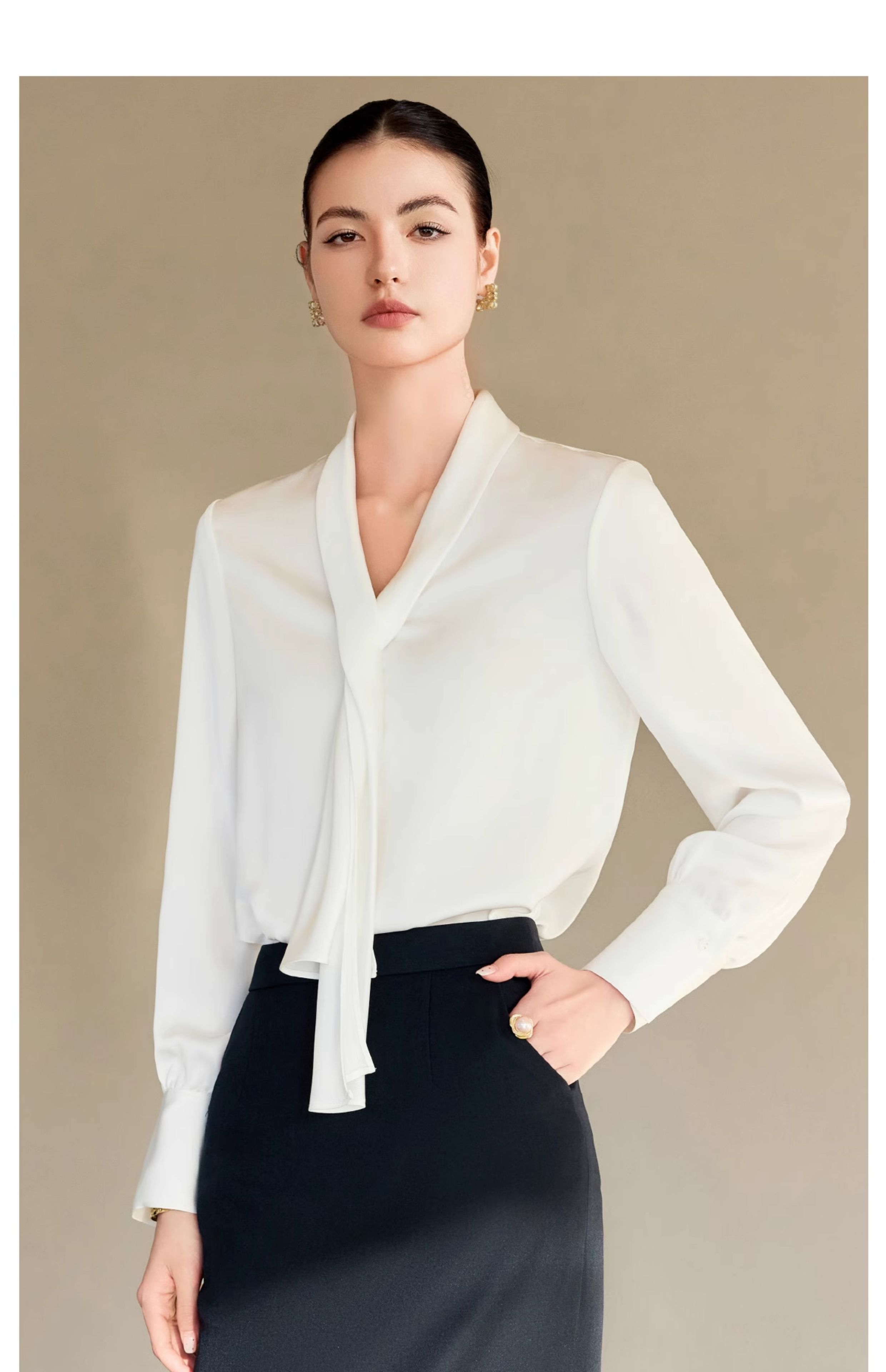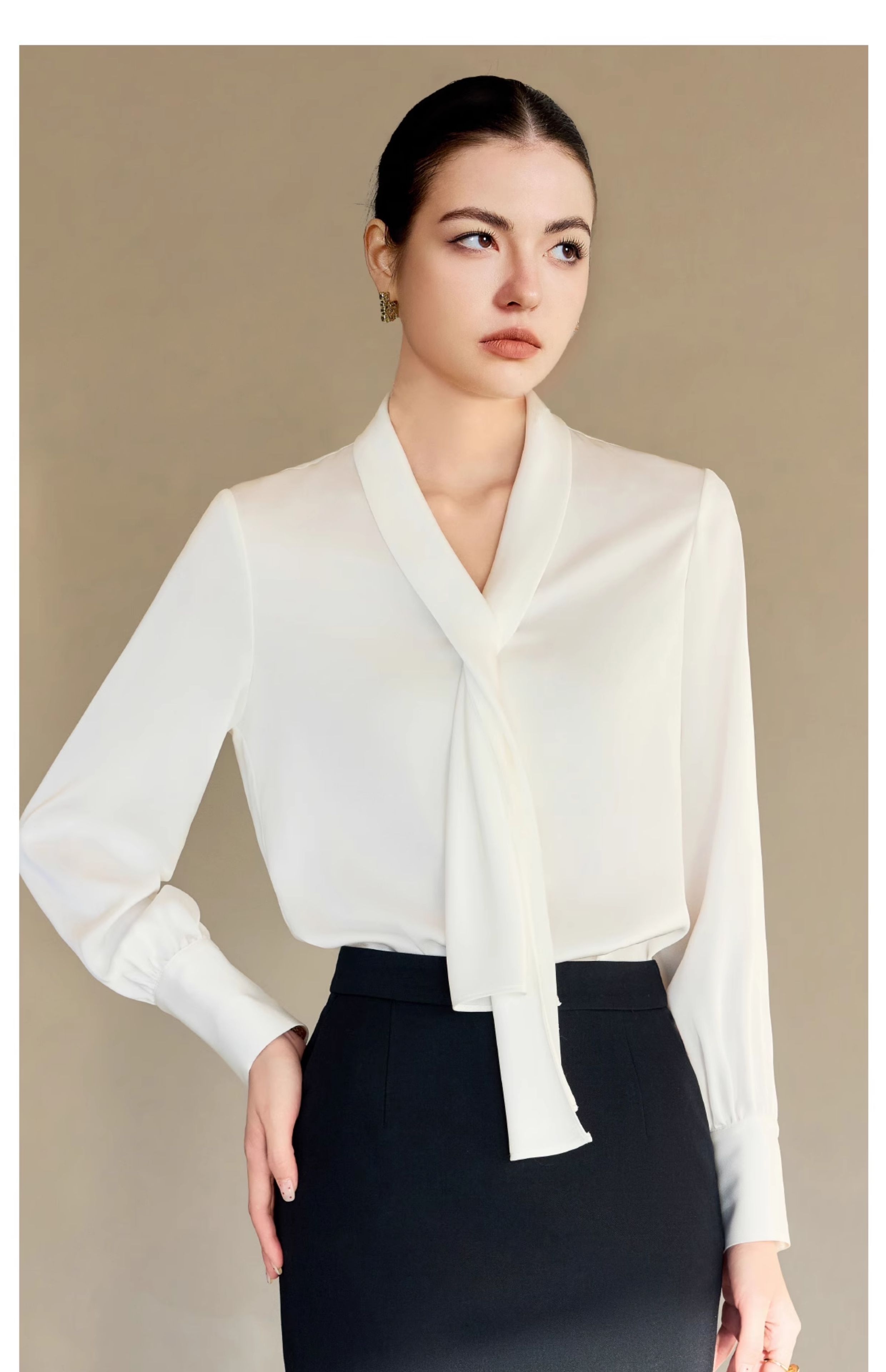 IWY/春夏白色衬衫女新款飘带衬衣设计感小众百搭西装内搭WB131
