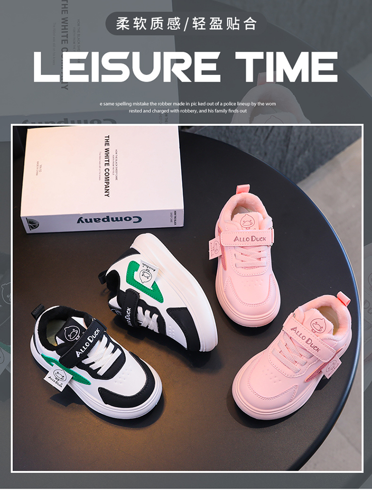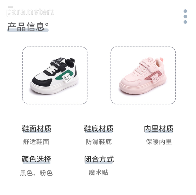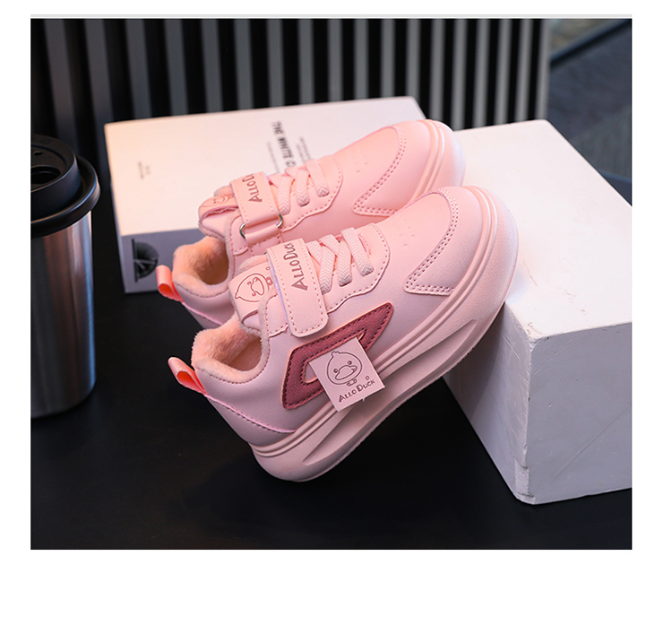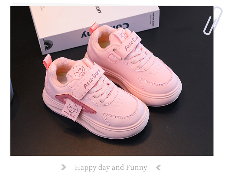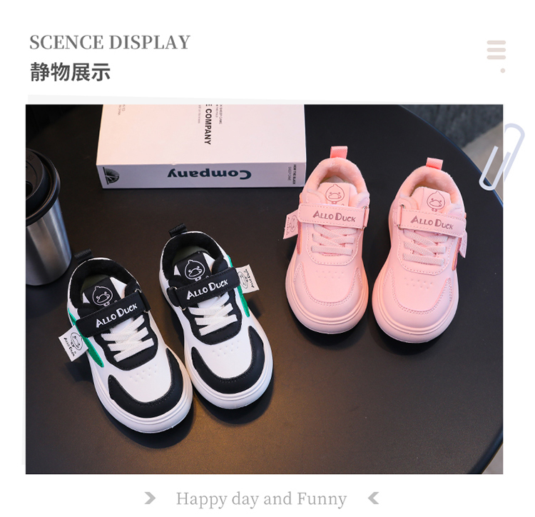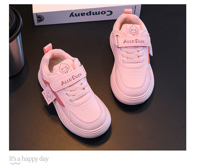 小黄鸭冬季新款运动鞋儿童皮面防水男女童加绒保暖小中童跑步鞋潮24-38