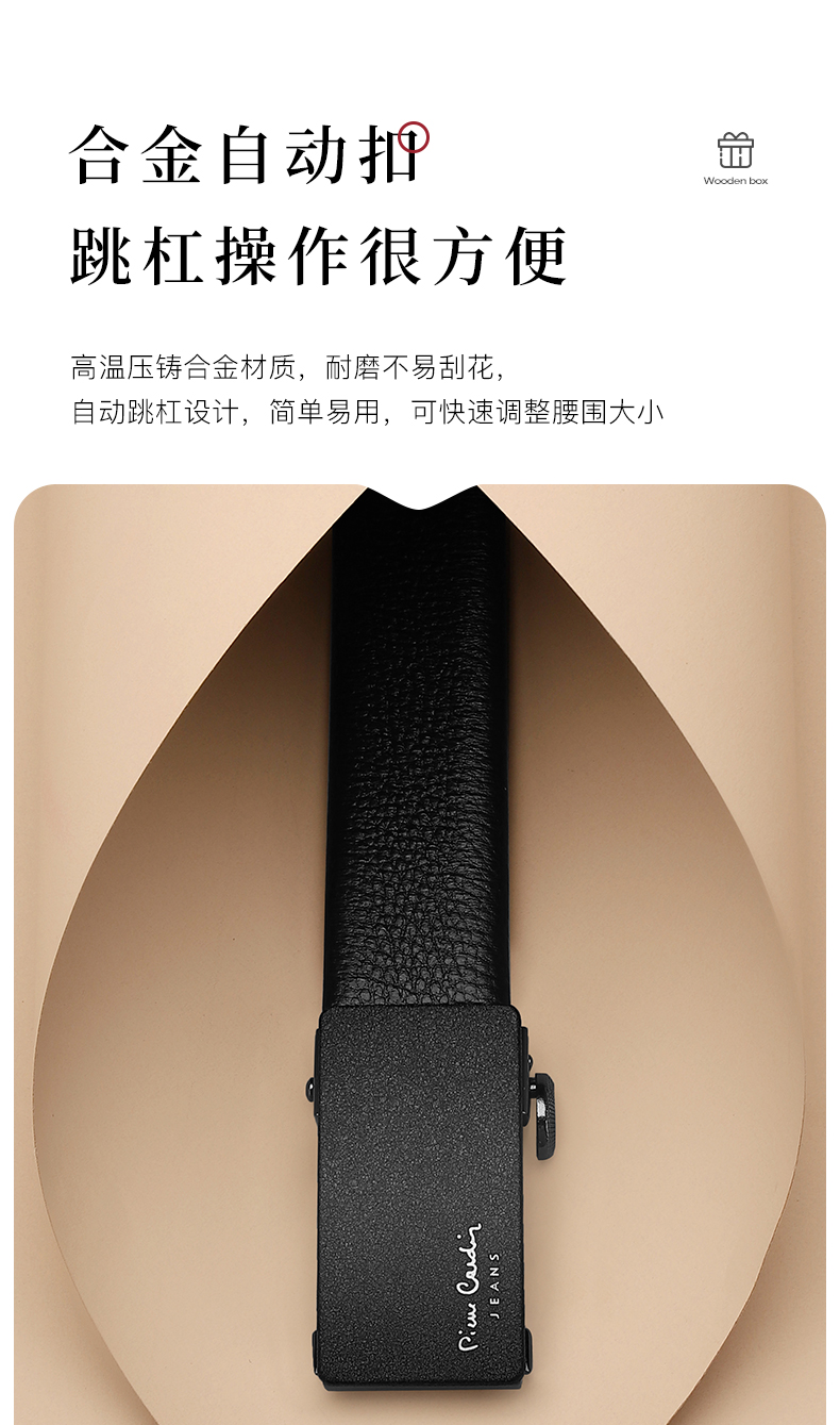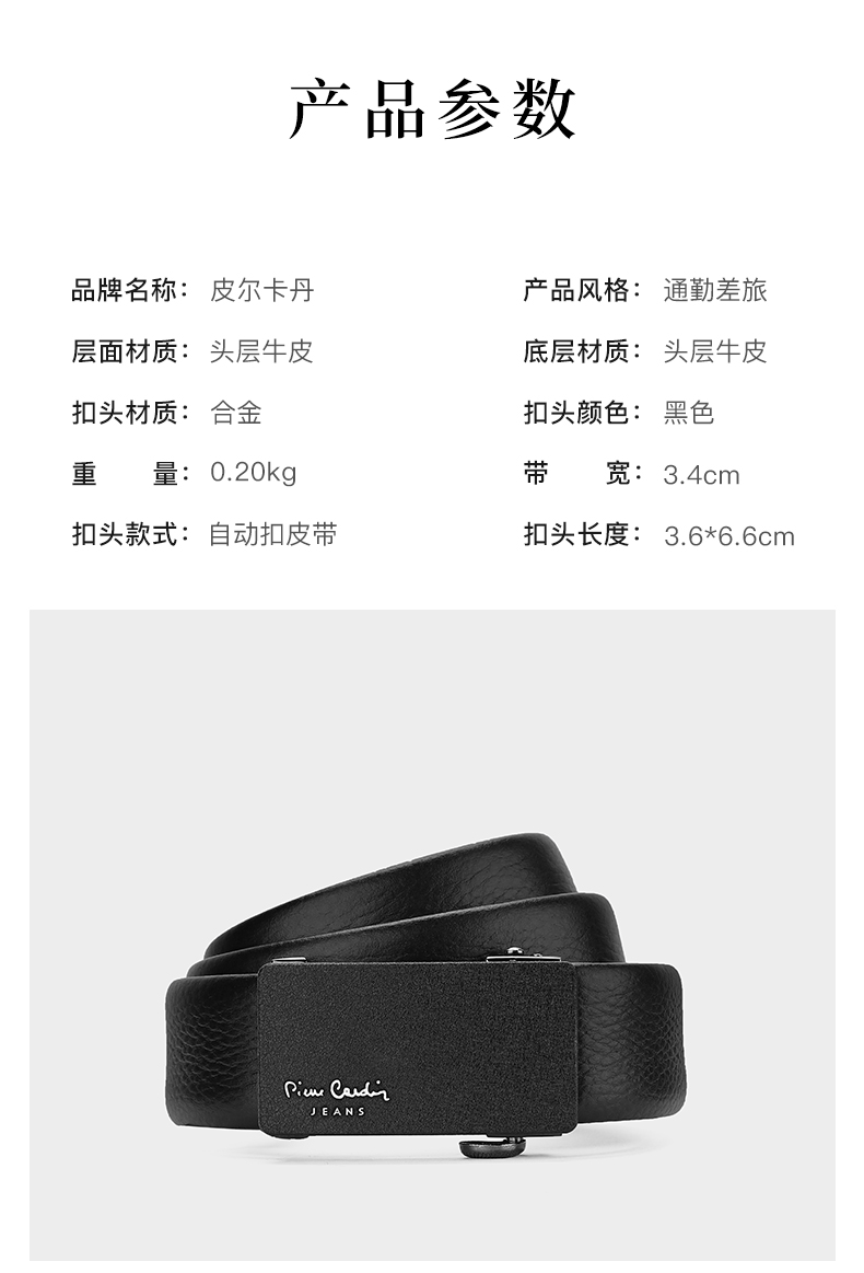 皮尔卡丹头层牛皮皮带男款商务休闲都市自动扣男士腰带高级感牛皮男式裤腰带送爸爸