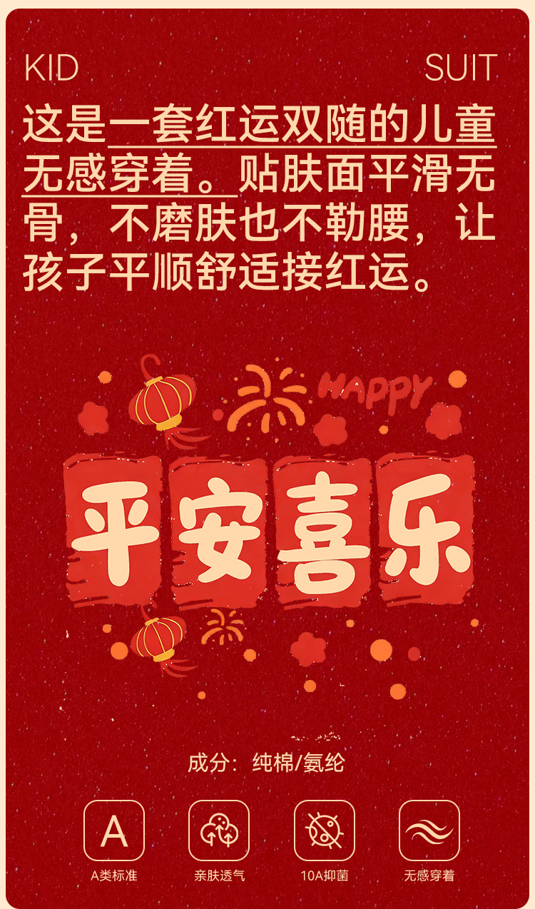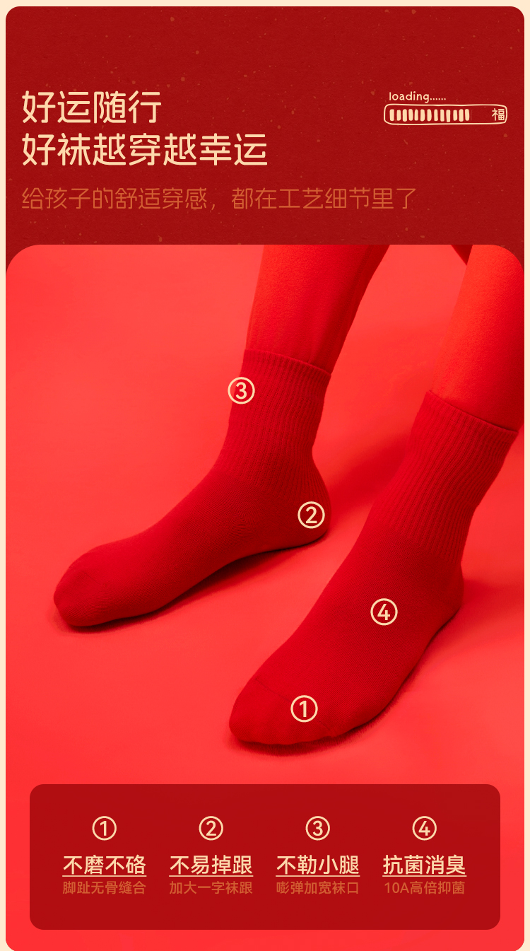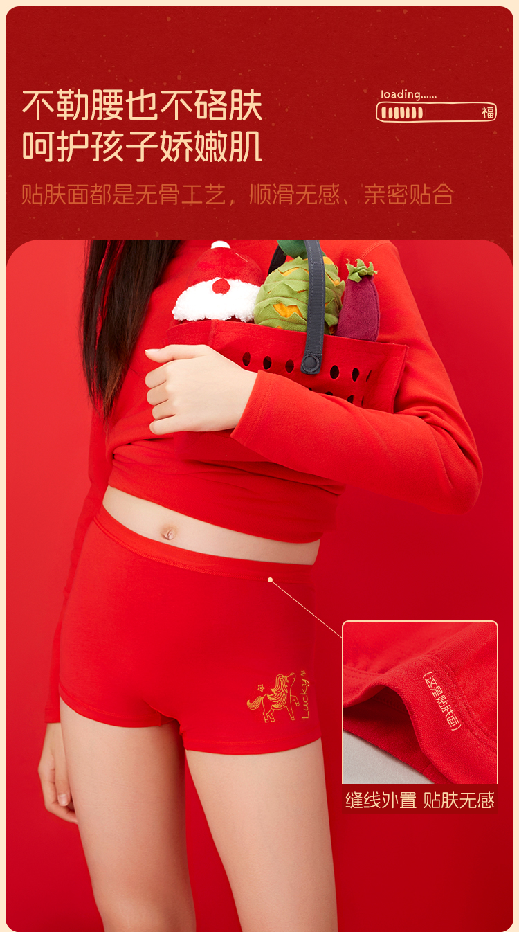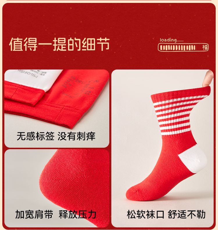 【米乐鱼 儿童开门红 内裤袜子组合4件套】 母婴A类95%高支精梳棉10A级抗菌内档 新年穿红色幸运又平安~