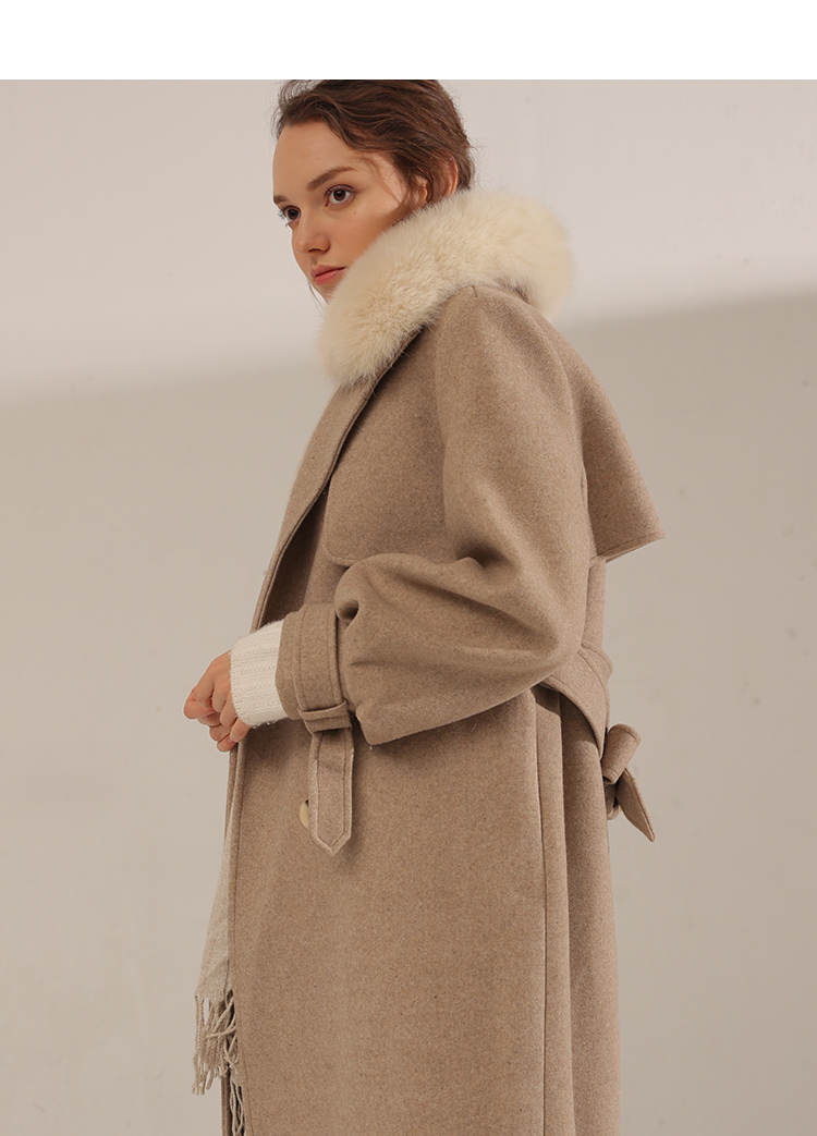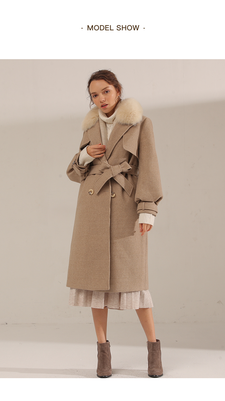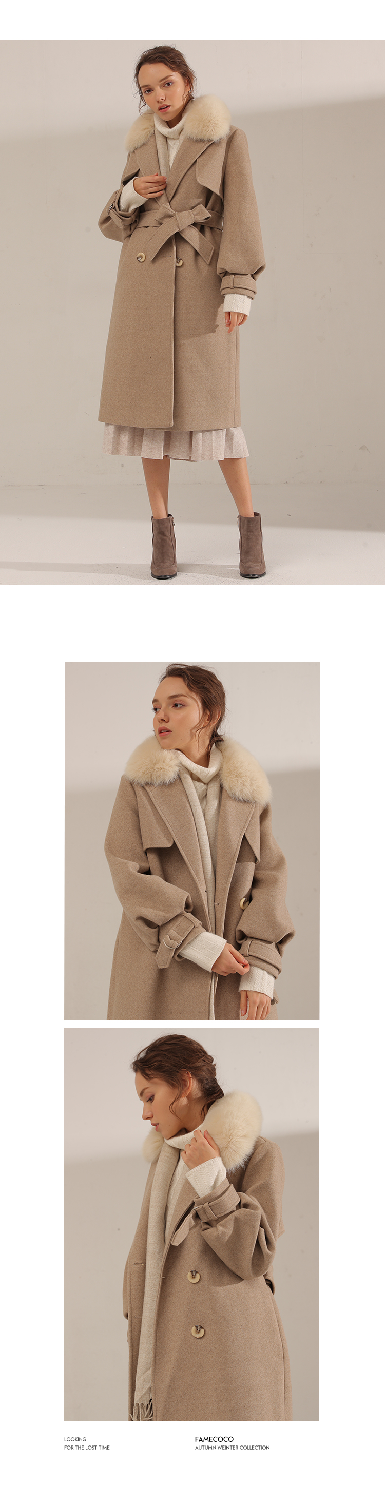 Famecoco范可儿毛呢外套中长款时尚狐狸毛领大衣F188AC001
