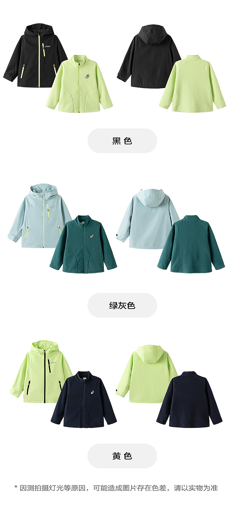 ASICS/亚瑟士儿童2026年新款三合一摇粒绒外套防风透湿两件套