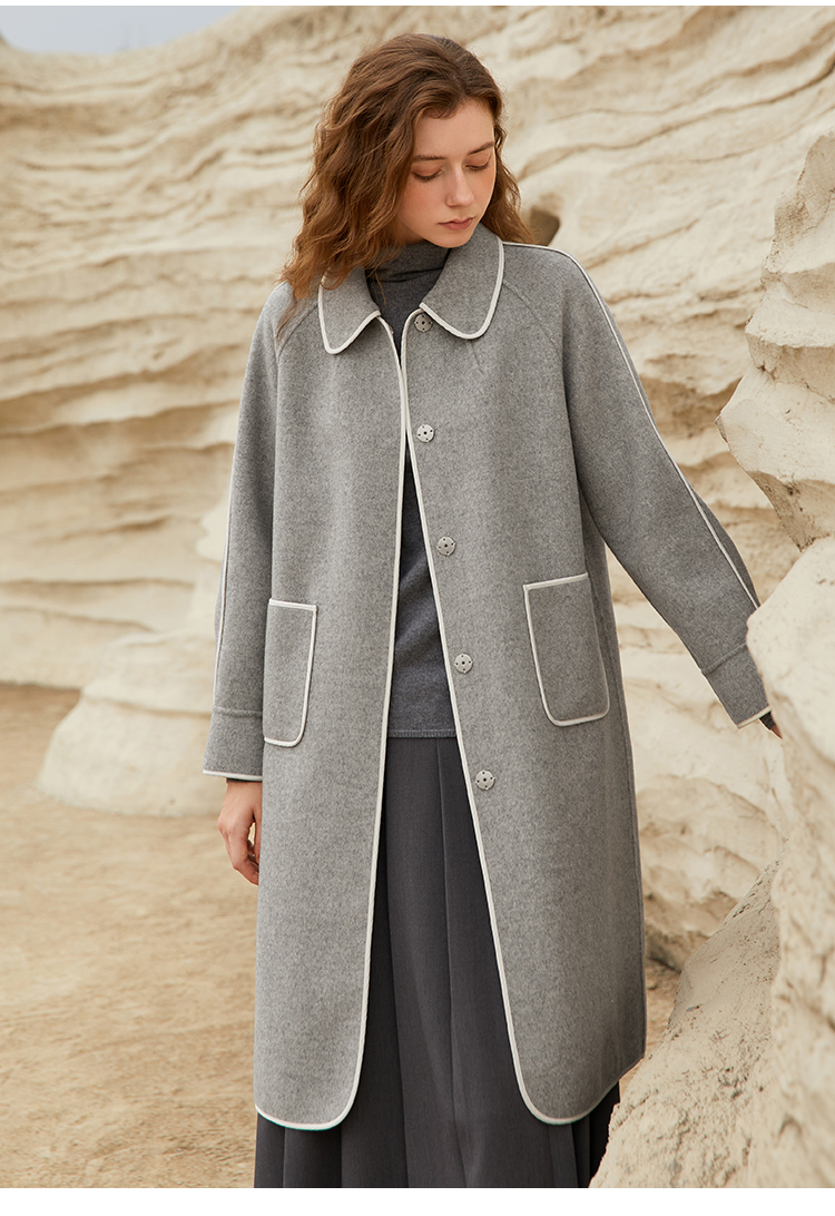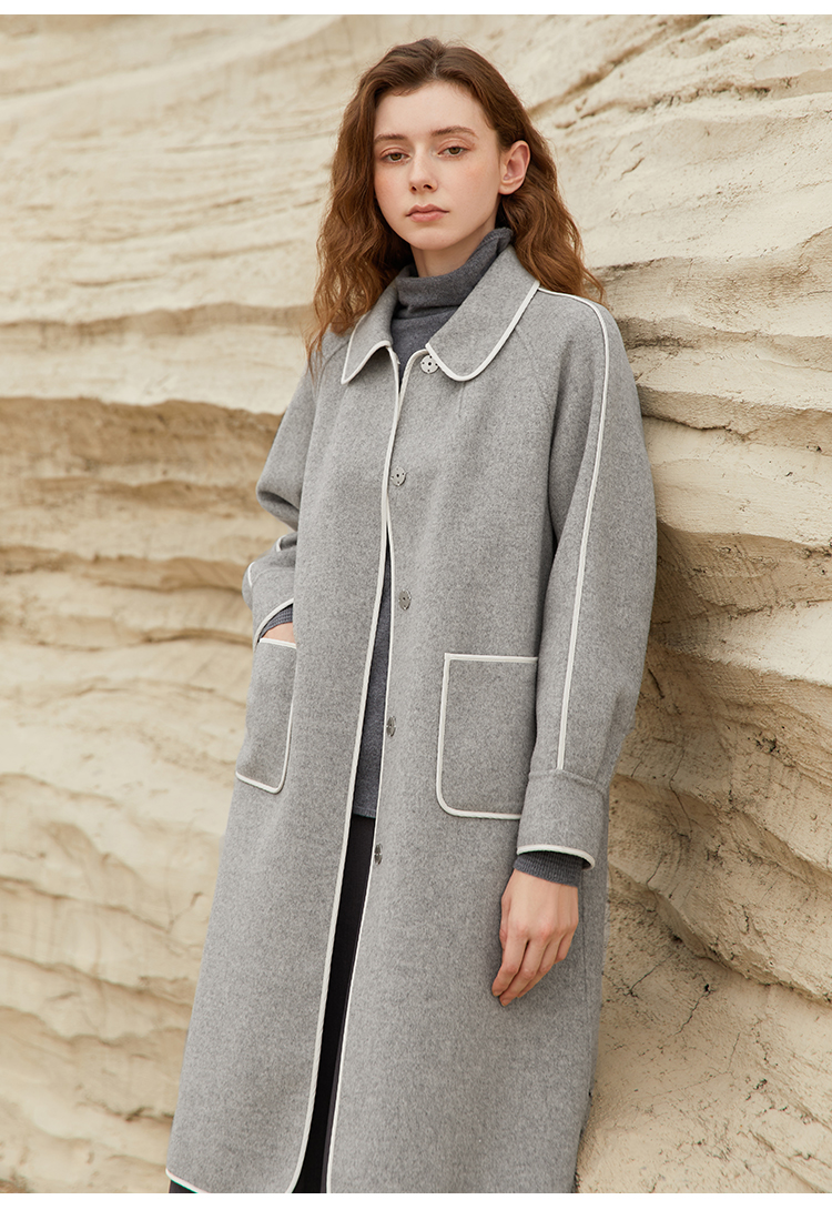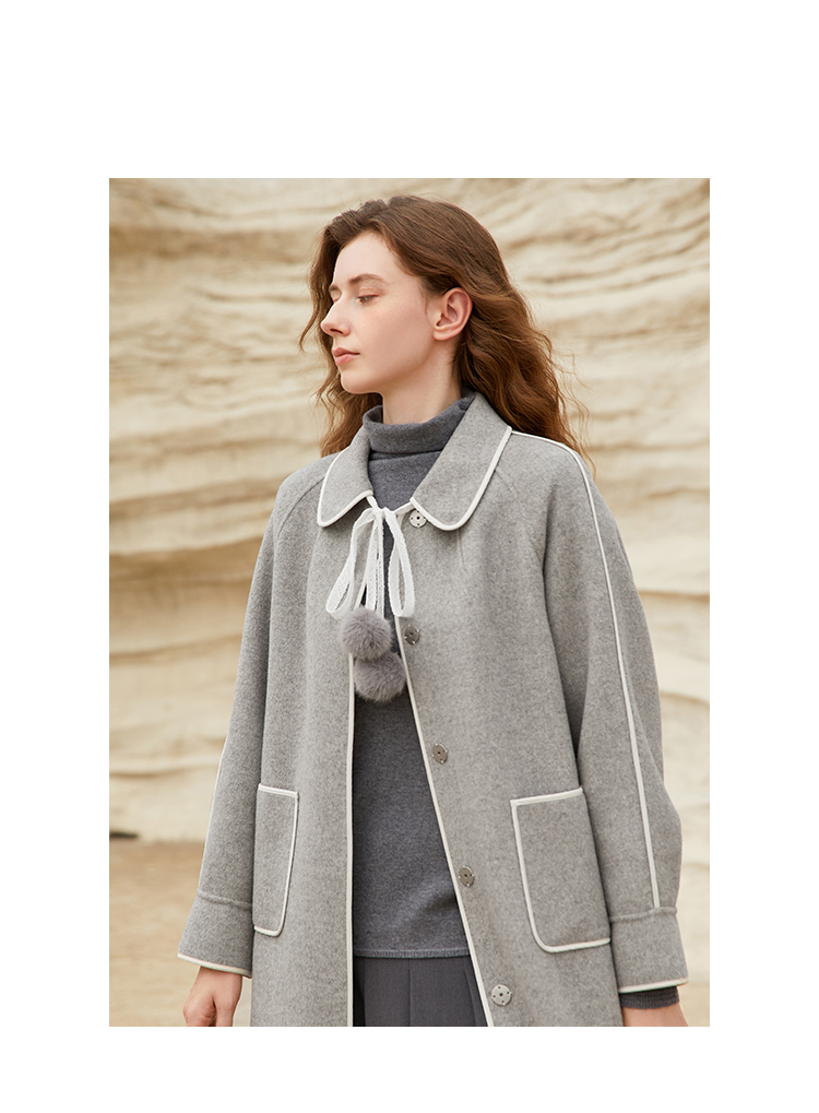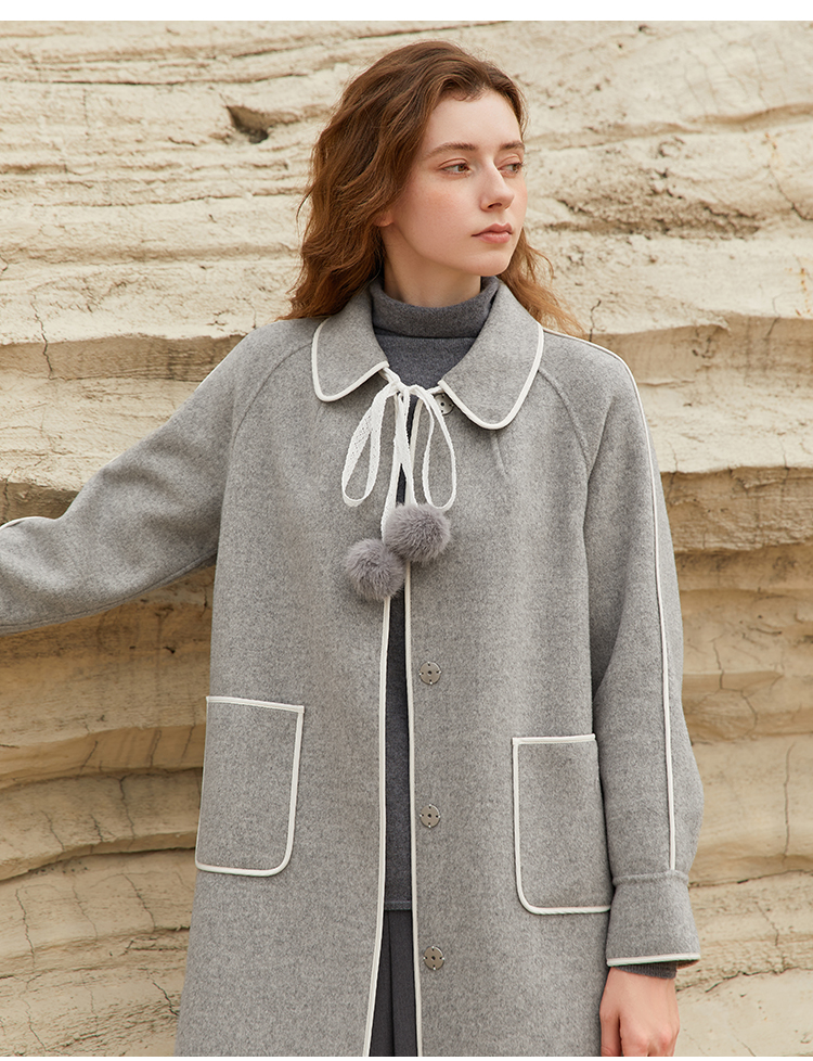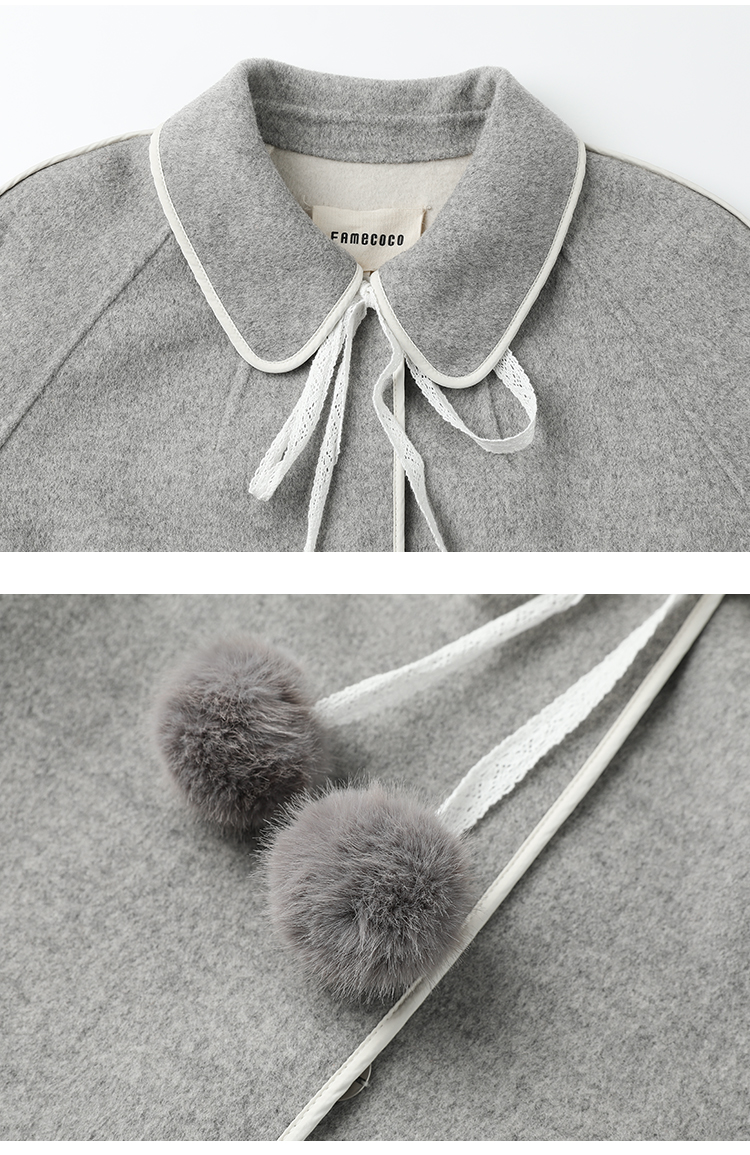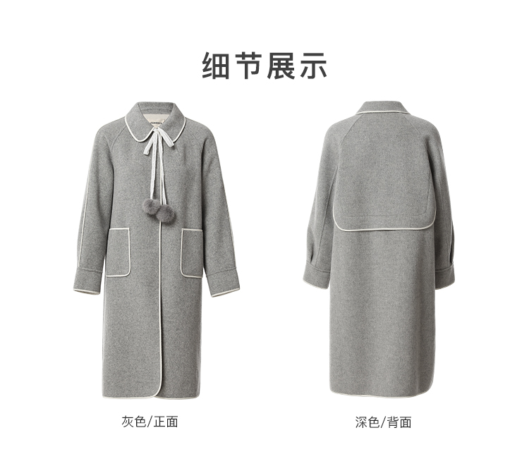 Famecoco范可儿长款毛呢大衣外套女士秋冬FAB8AR040