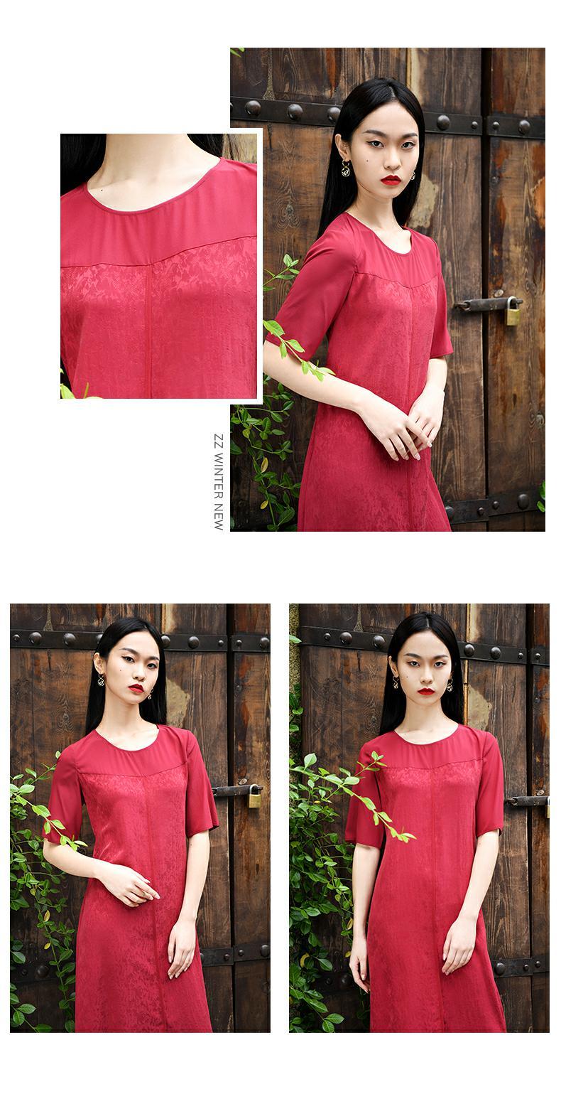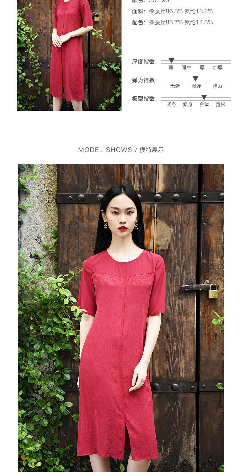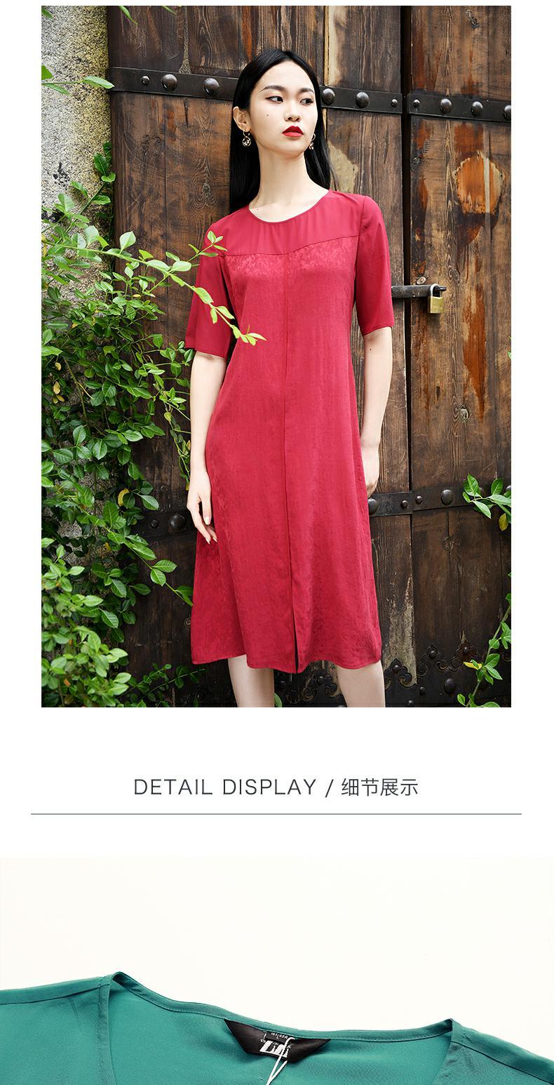 佐尔美夏季新款真丝圆领拼接纯色修身显瘦桑蚕丝连衣裙E02LS63