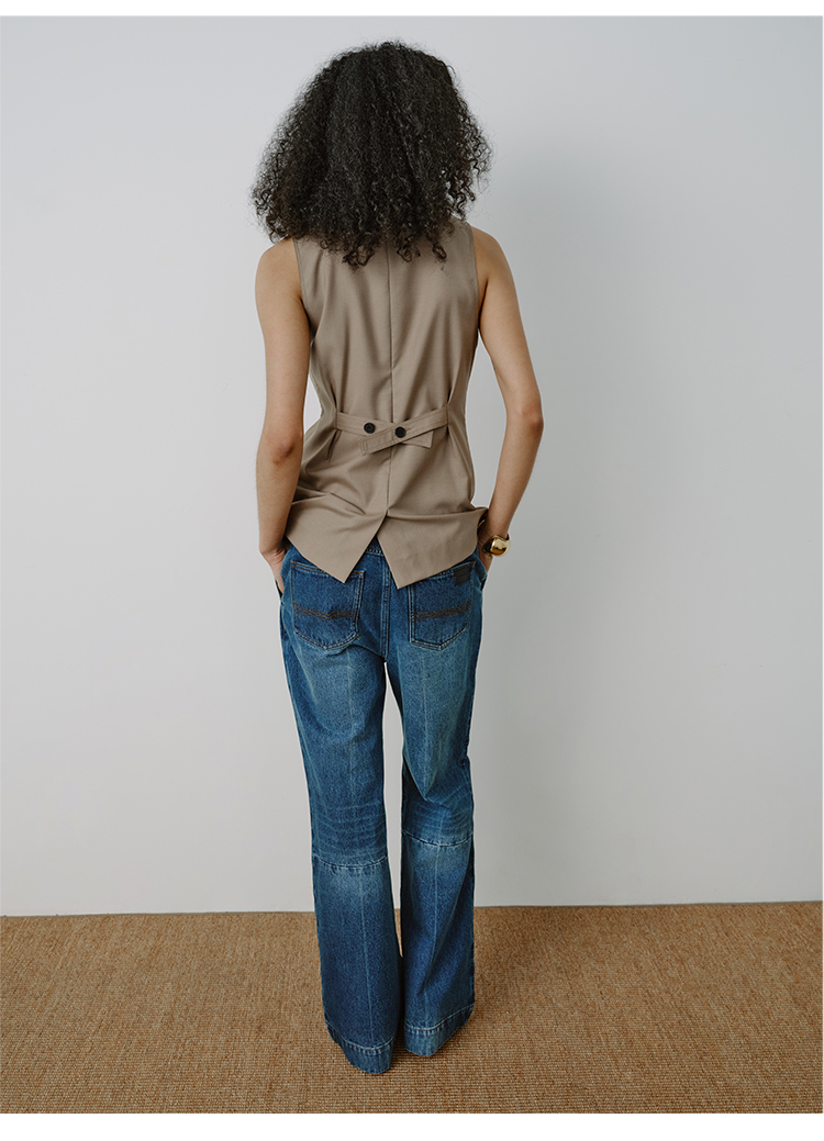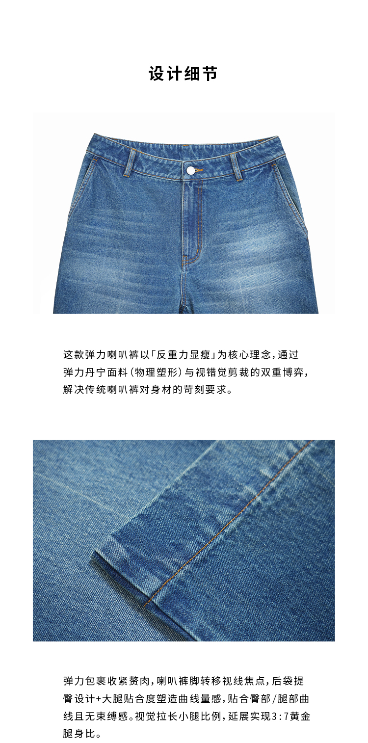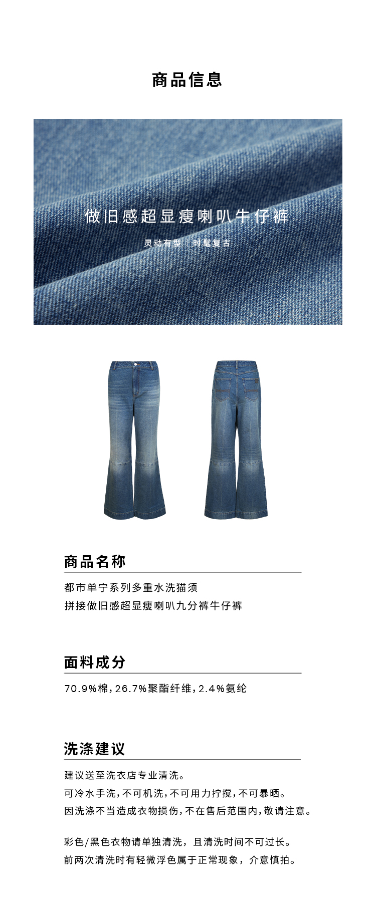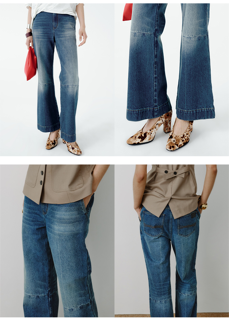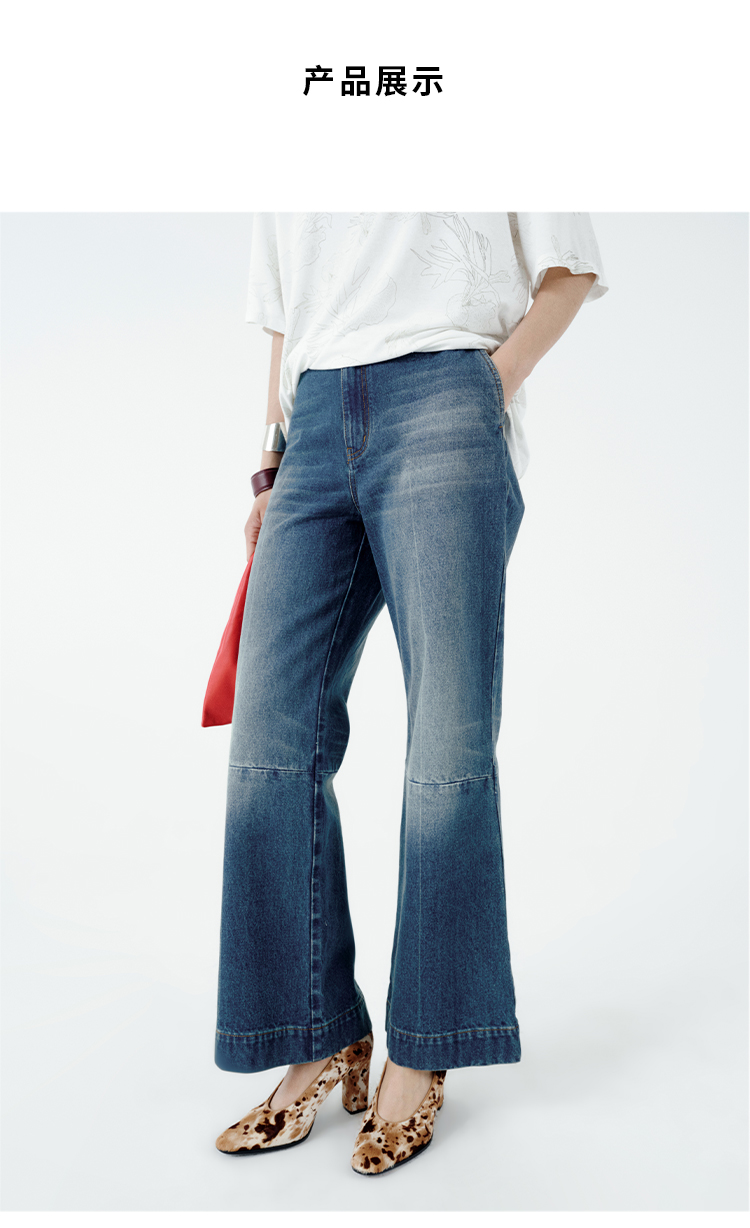 HIDEMI都市单宁系列多重水洗猫须拼接做旧感超显瘦喇叭九分裤牛仔裤