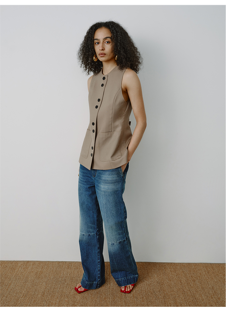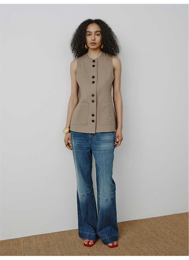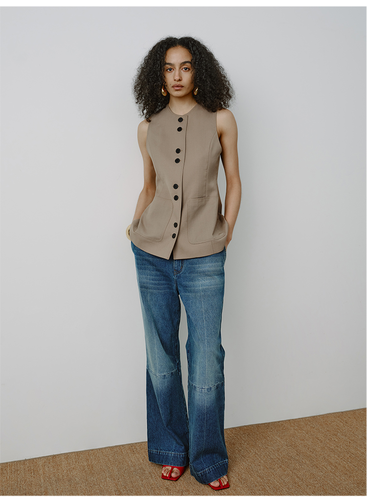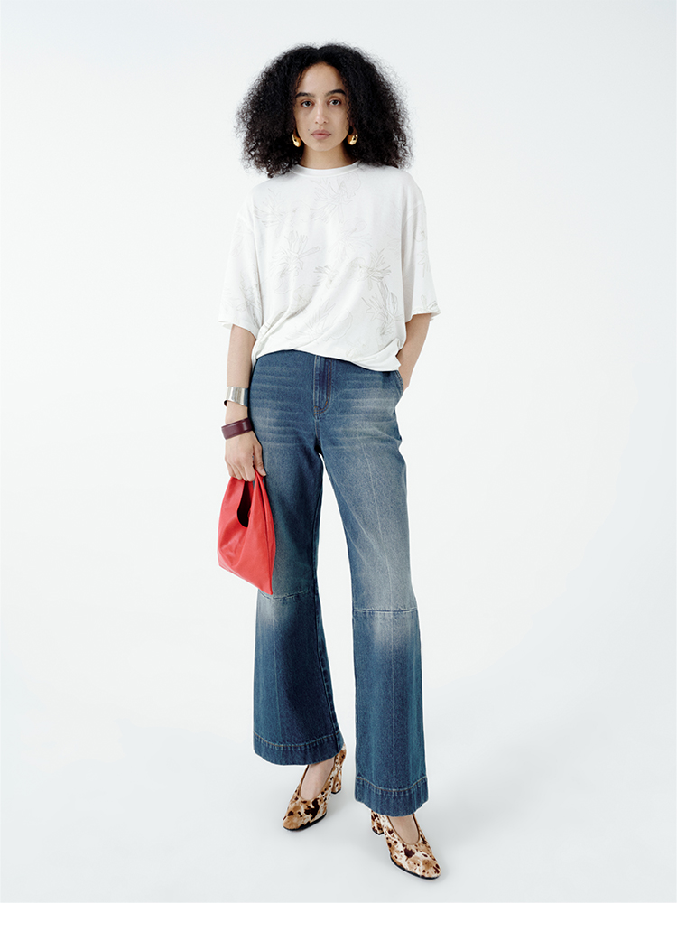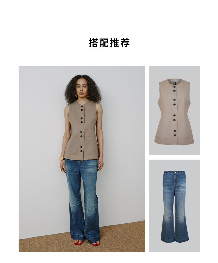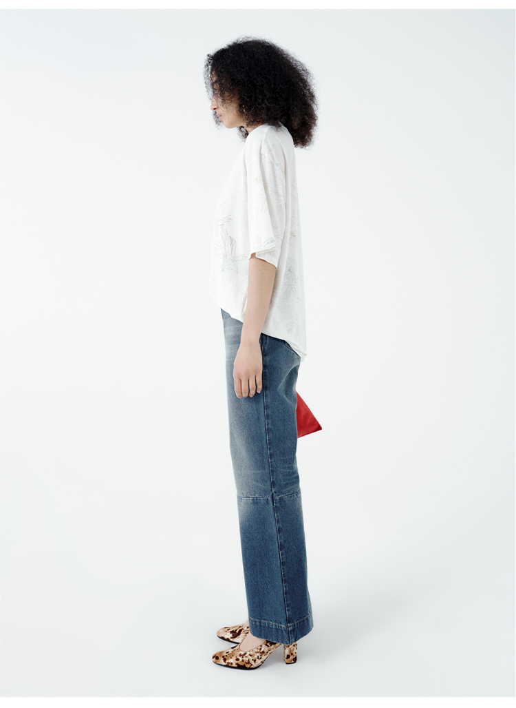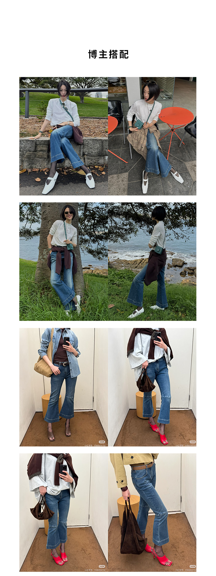 HIDEMI都市单宁系列多重水洗猫须拼接做旧感超显瘦喇叭九分裤牛仔裤