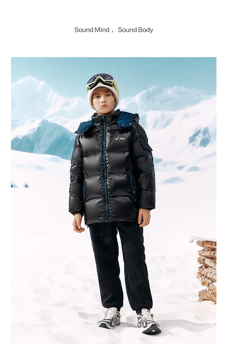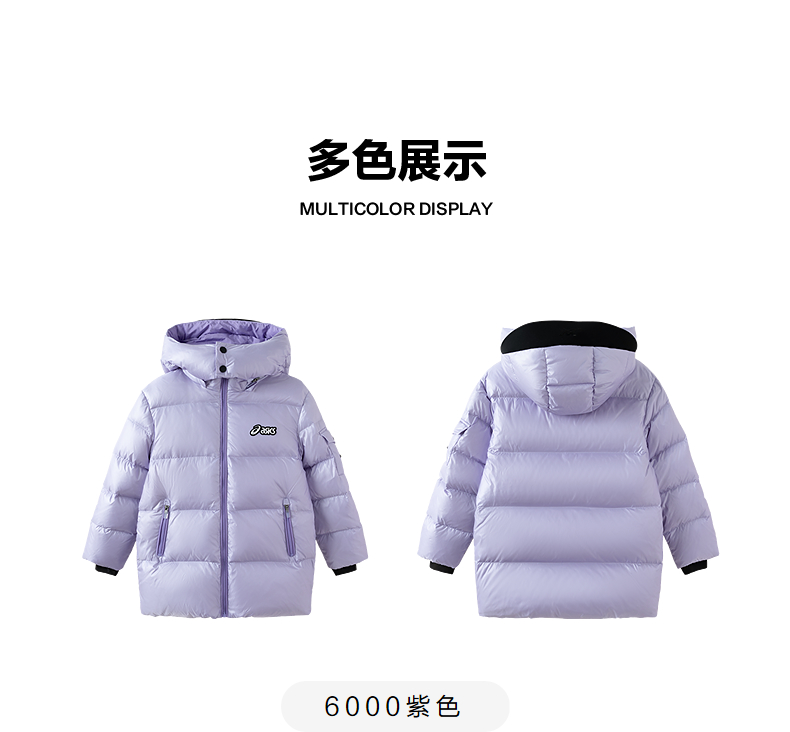 ASICS/亚瑟士儿童25年新款鹅绒服蓄热保暖布面光泽柔软舒适有质感