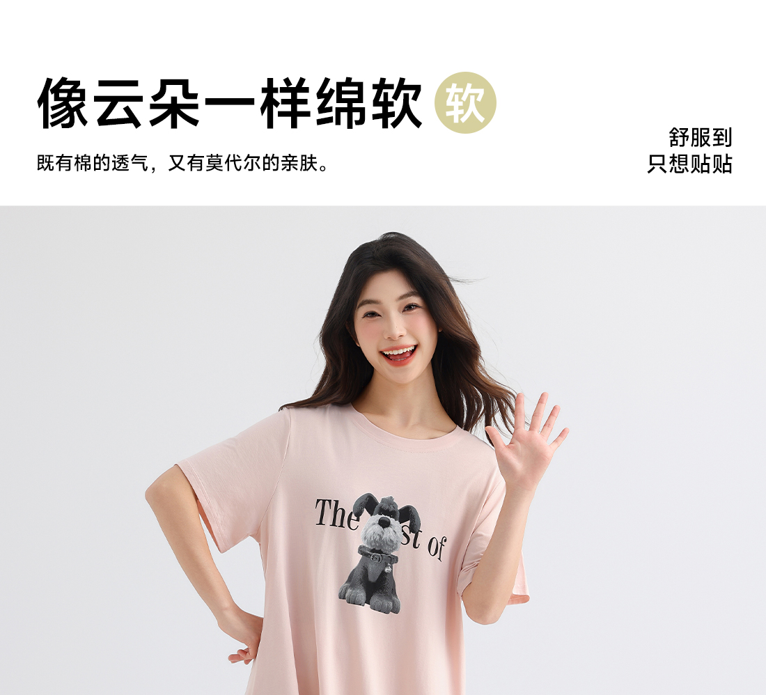 美季美优睡衣裙女士2025新款夏季棉莫代尔可爱小狗短袖薄款家居服