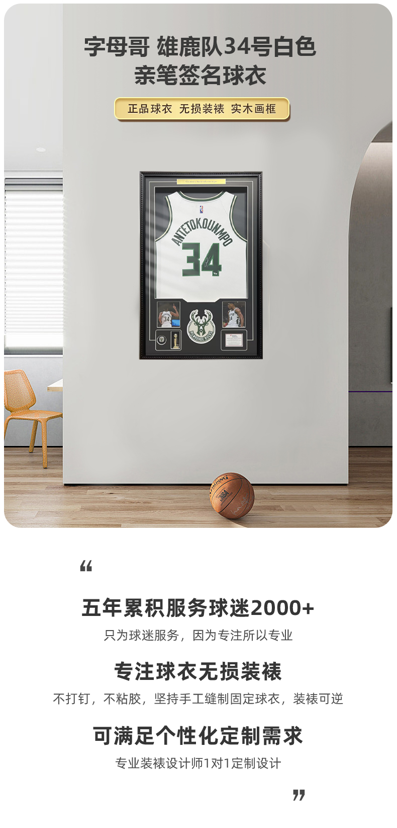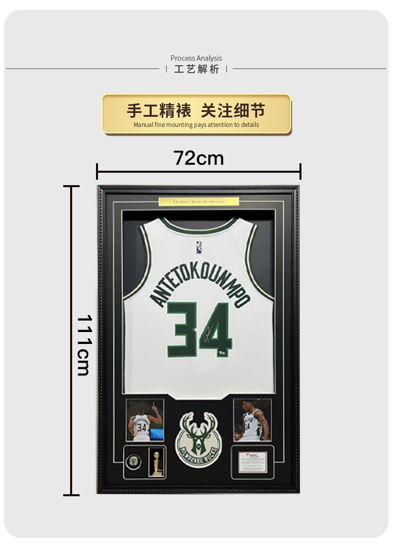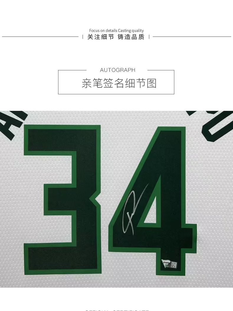 收藏系列 字母哥 雄鹿队34号白色 亲笔签名球衣