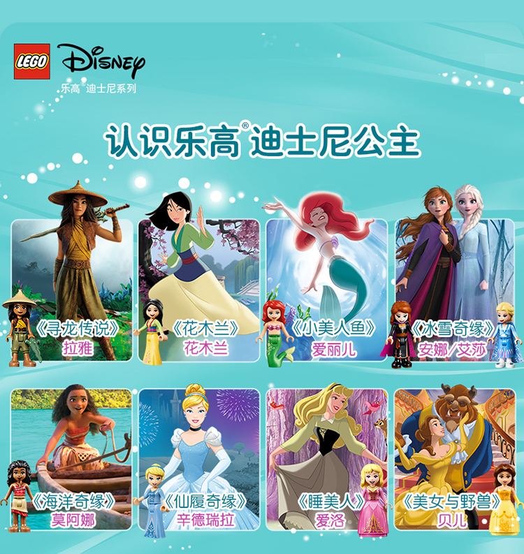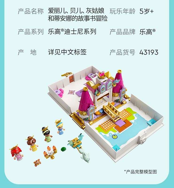 乐高LEGO 爱丽儿、贝儿、灰姑娘和蒂安娜的故事书大冒险 LEGC43193