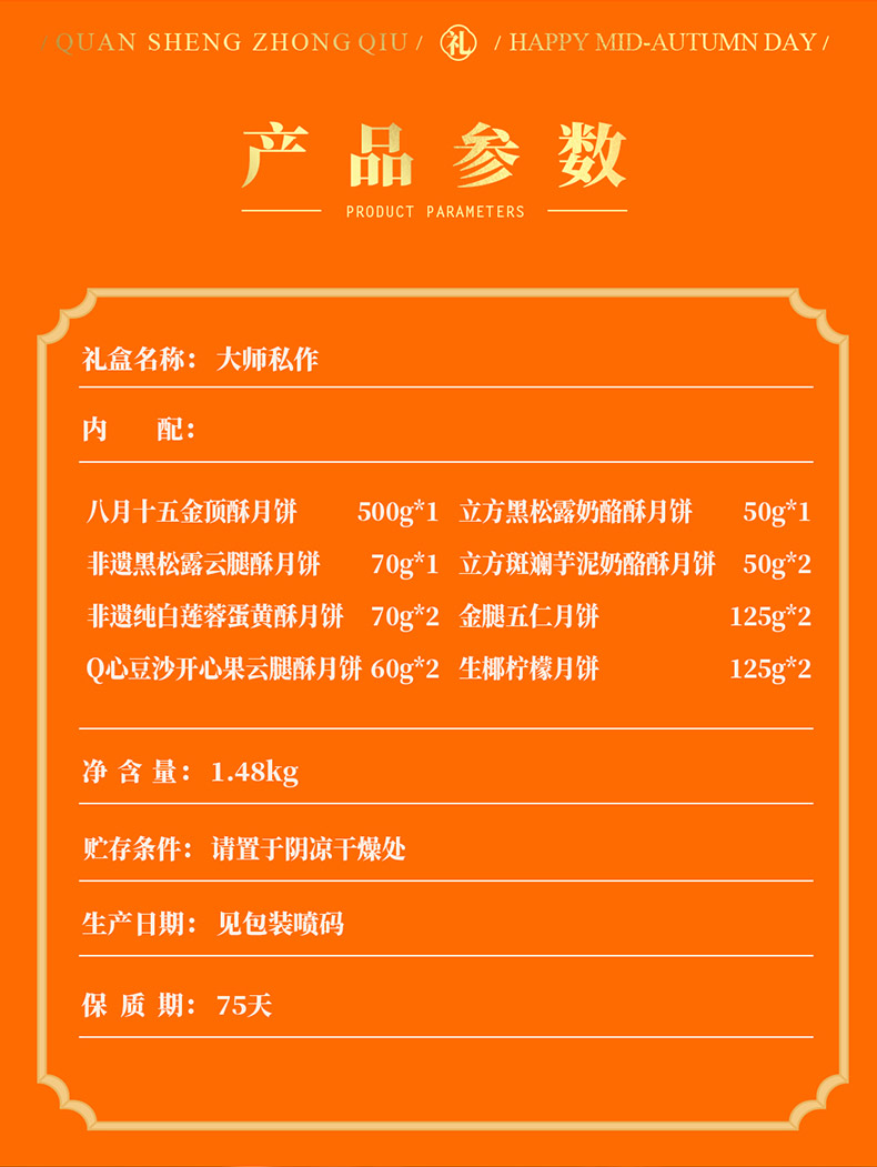 【全规格SKU】香港荃盛 感恩礼赞 名饼荟萃月饼礼盒 蛋黄酥 榴莲 流心奶黄月饼 黑松露 双黄莲蓉月饼礼盒
