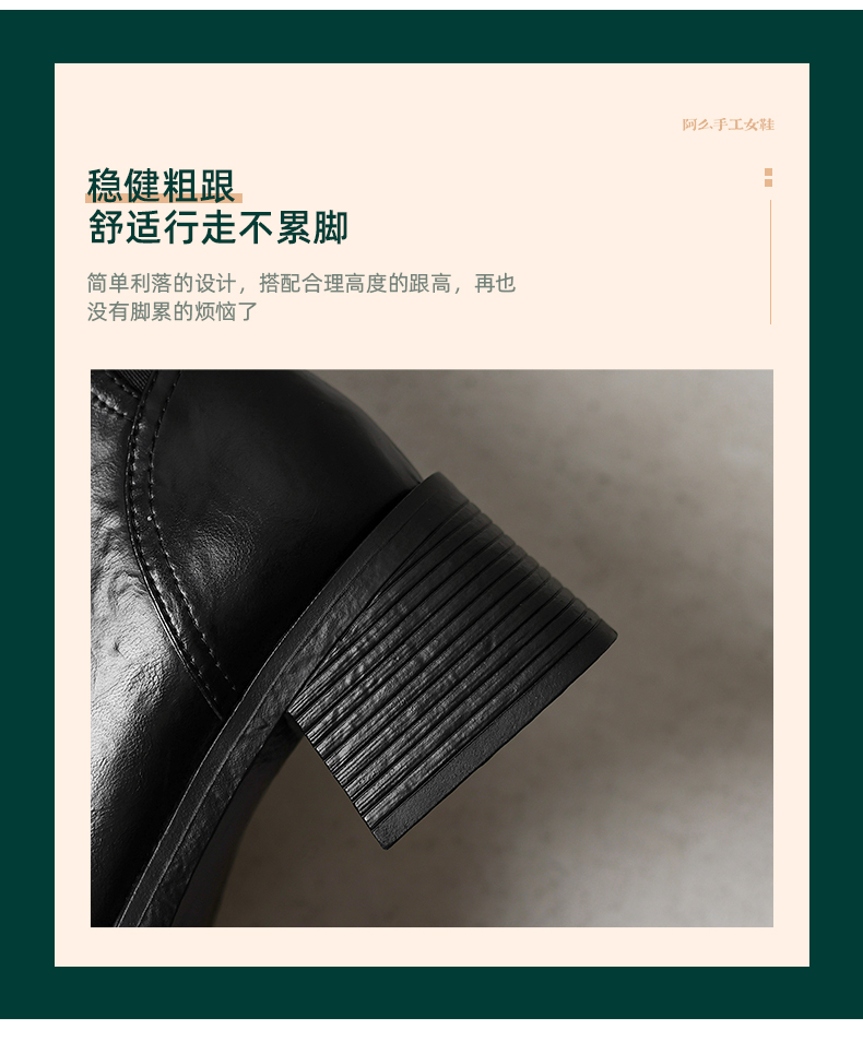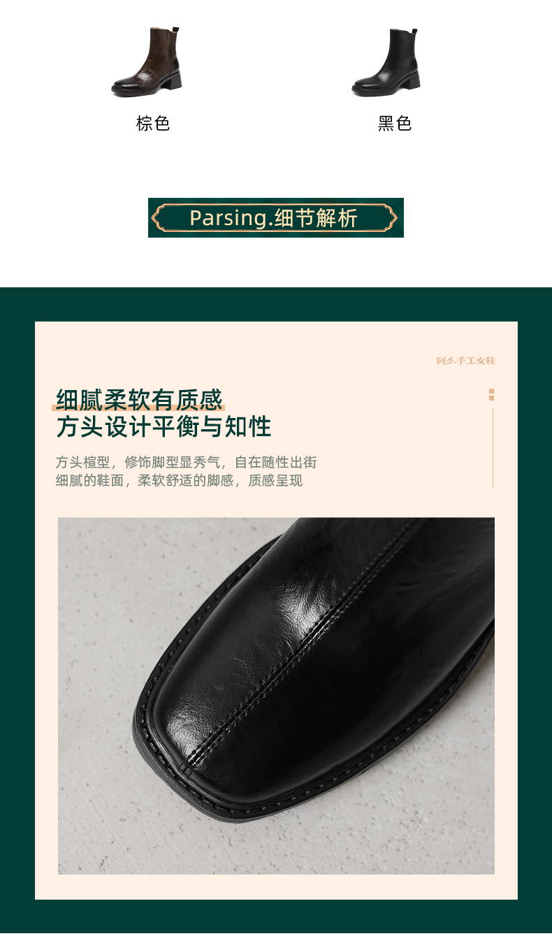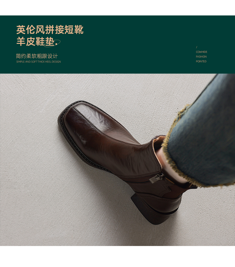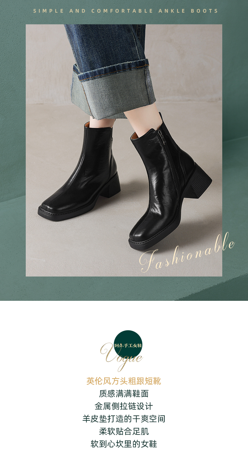 阿么手工女鞋秋冬复古瘦瘦靴女2025新款简约方头真皮短靴软底6CM