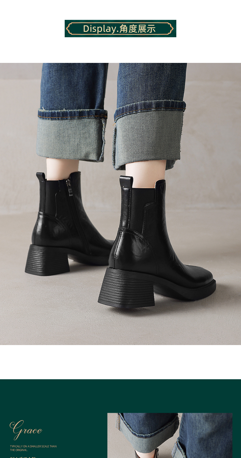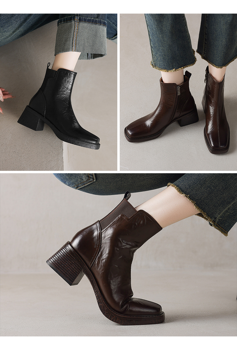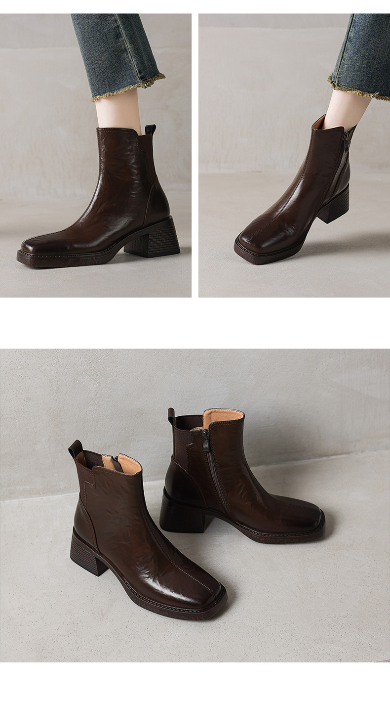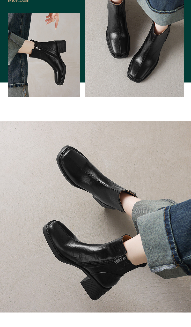阿么手工女鞋秋冬复古瘦瘦靴女2025新款简约方头真皮短靴软底6CM
