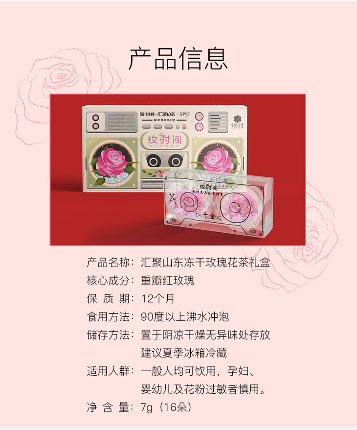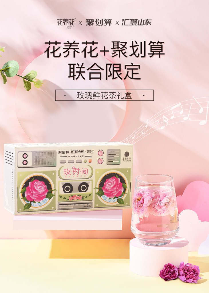 花养花x聚划算·汇聚山东 玫时间冻干玫瑰鲜花茶礼盒7g