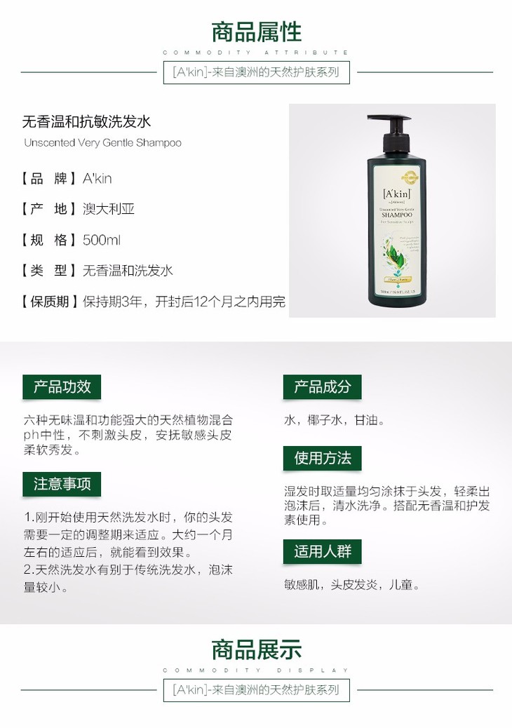 A'kin 柔顺洗发水 敏感头皮 500mlJPY带授权招加盟代理