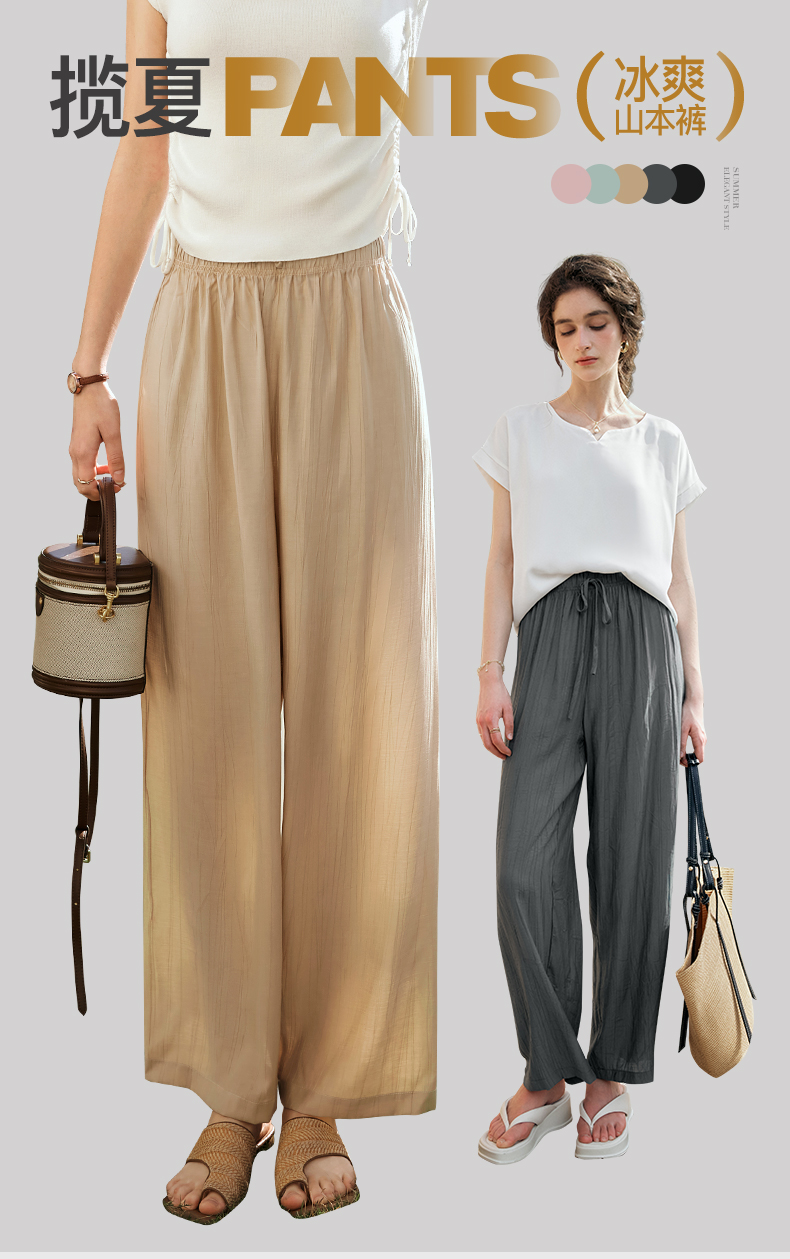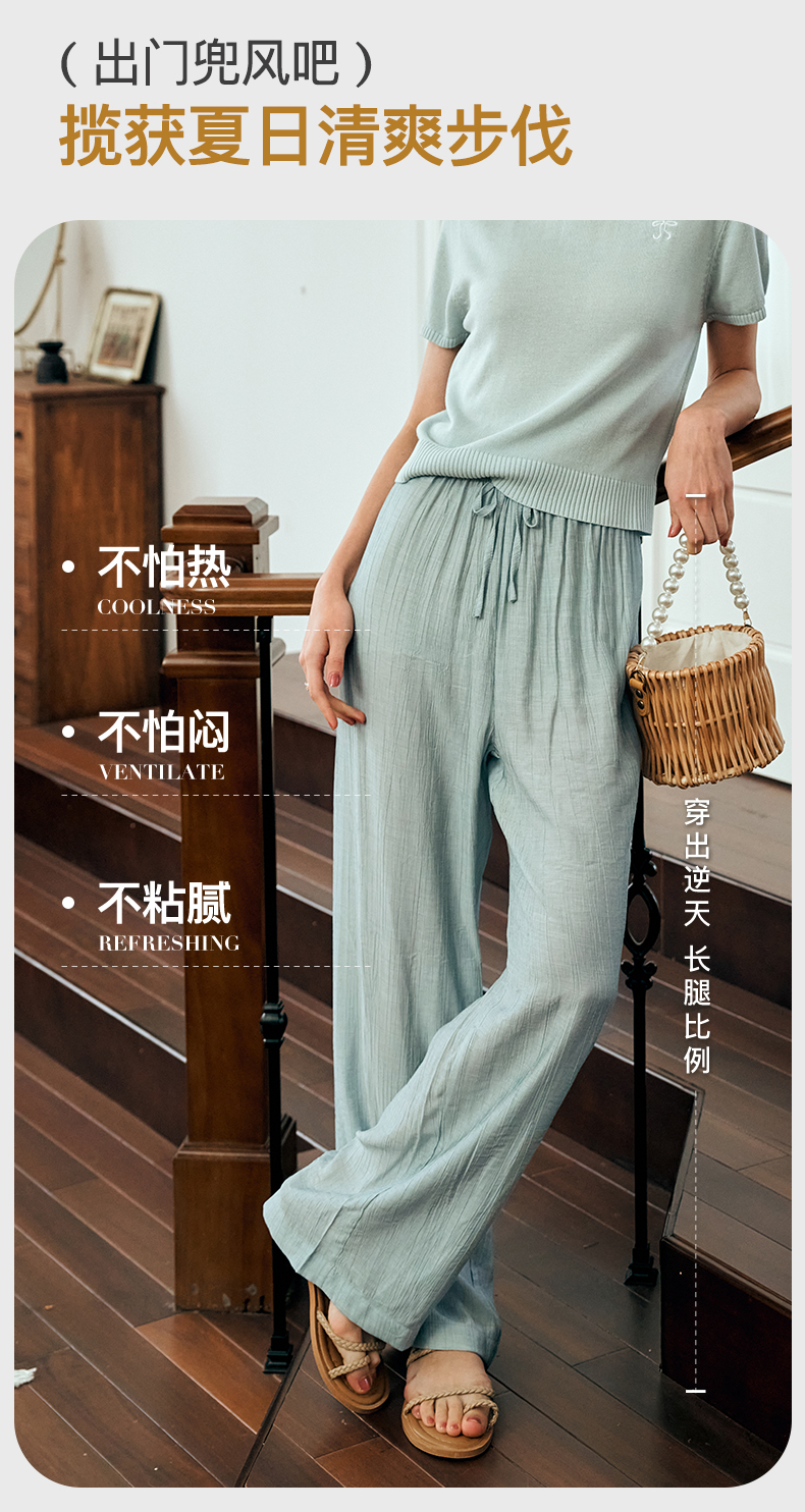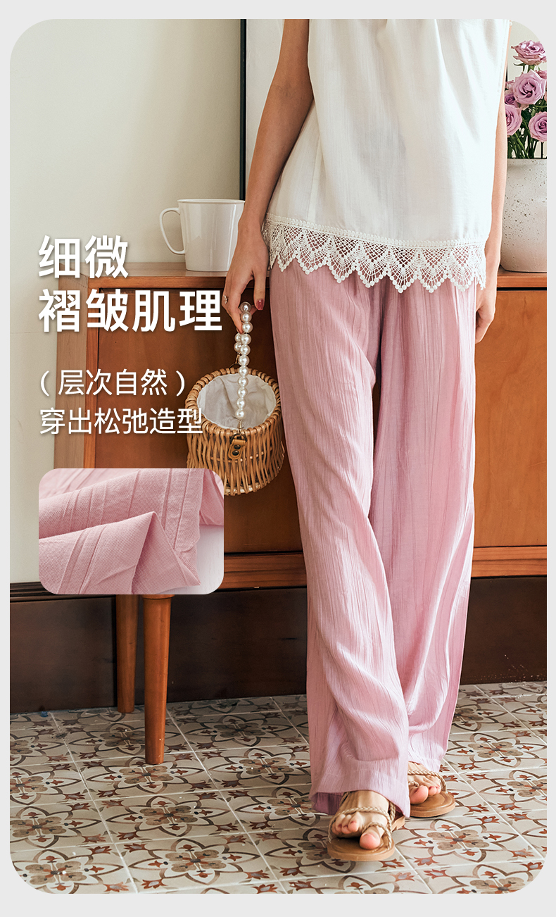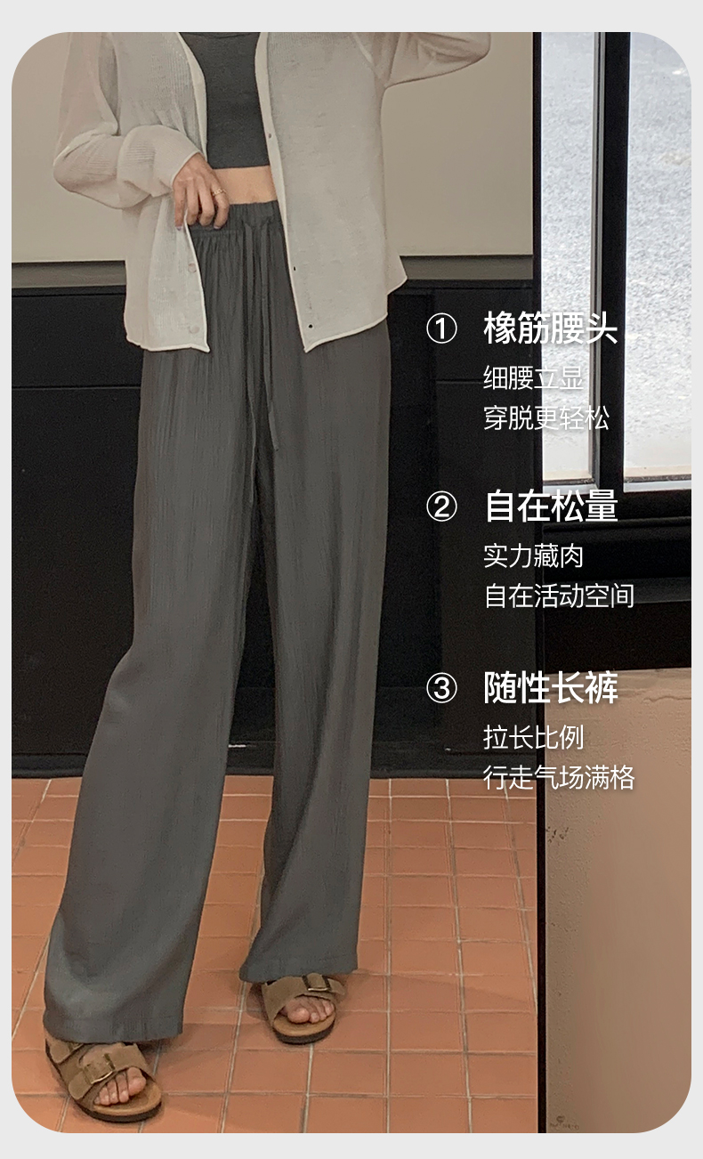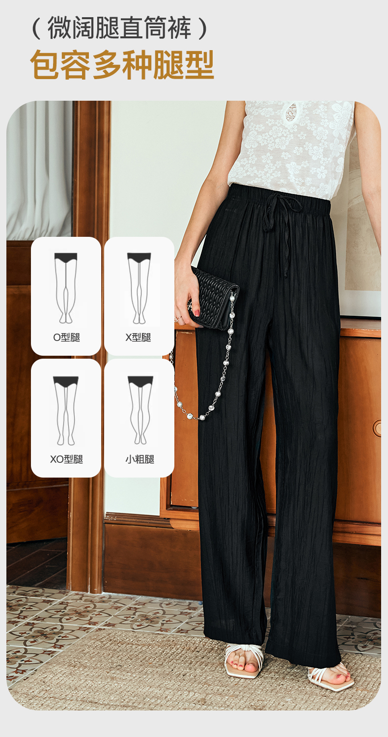 凉凉冰丝 高级褶皱肌理感OLrain欧芮儿法式冰爽休闲裤女夏季2023新款高腰垂感阔腿防晒裤子