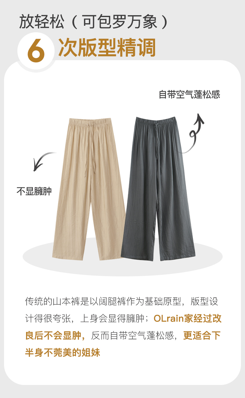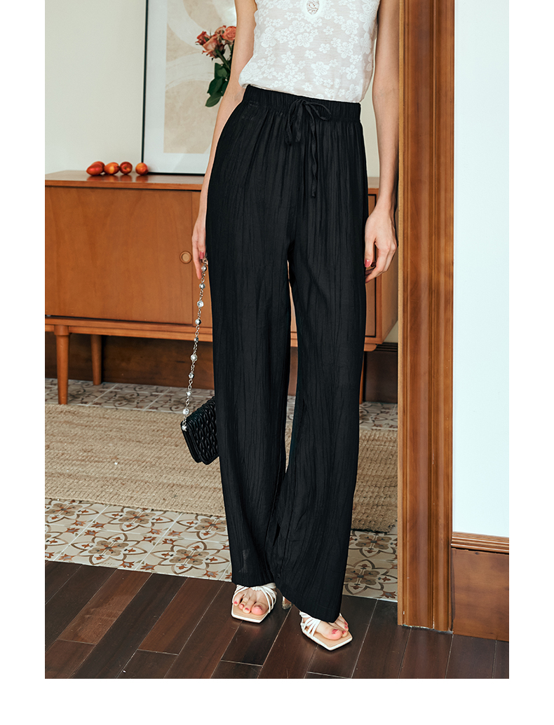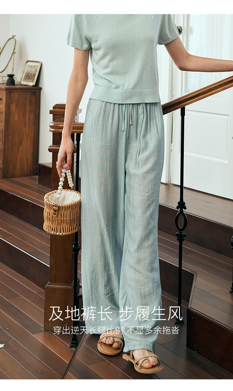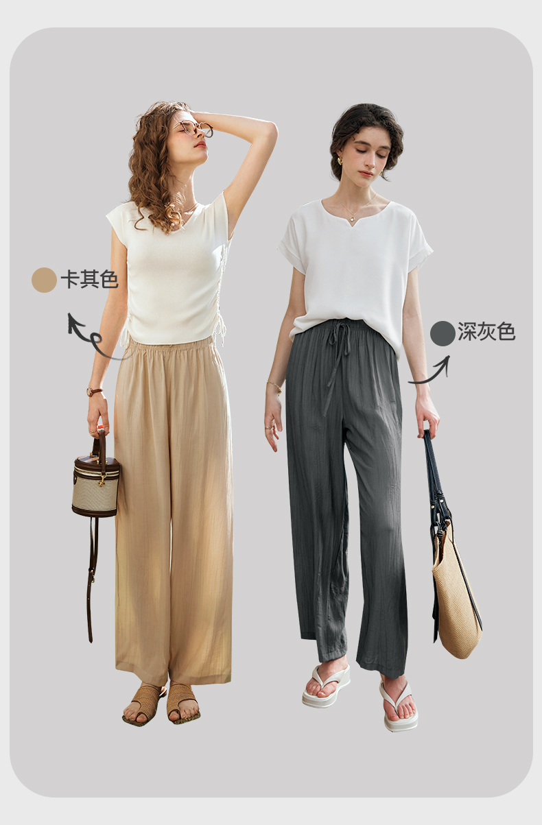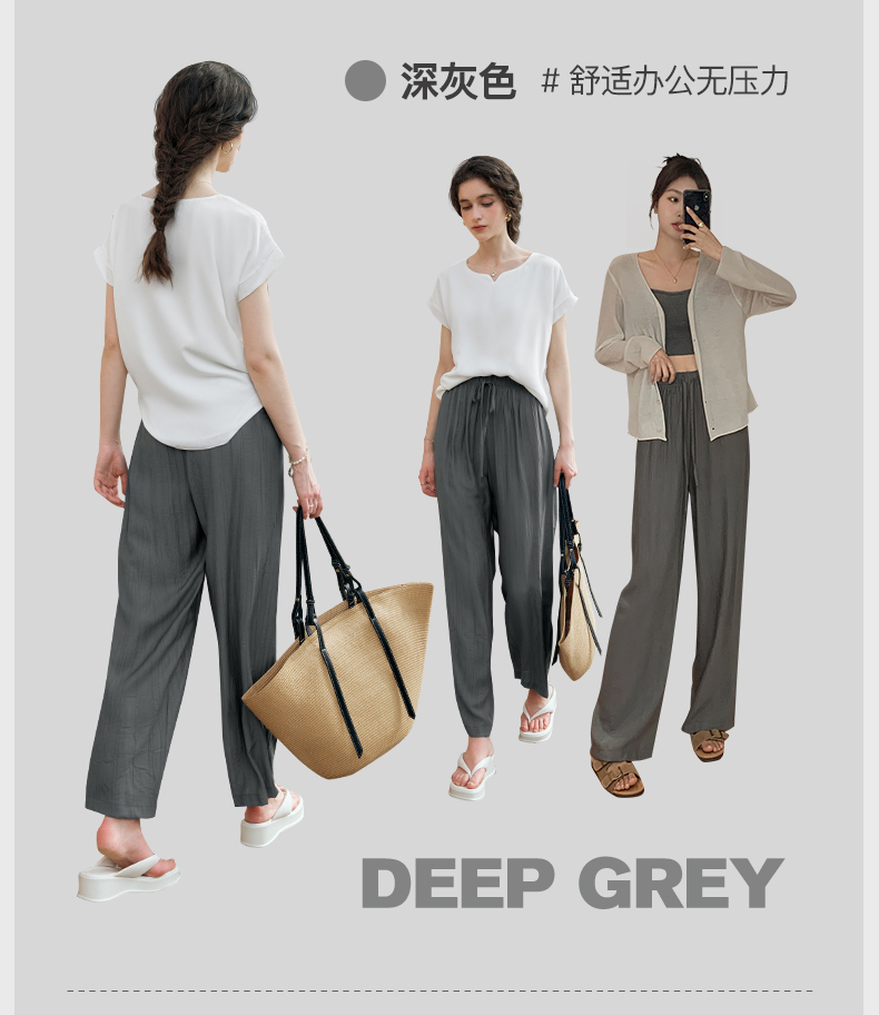 凉凉冰丝 高级褶皱肌理感OLrain欧芮儿法式冰爽休闲裤女夏季2023新款高腰垂感阔腿防晒裤子