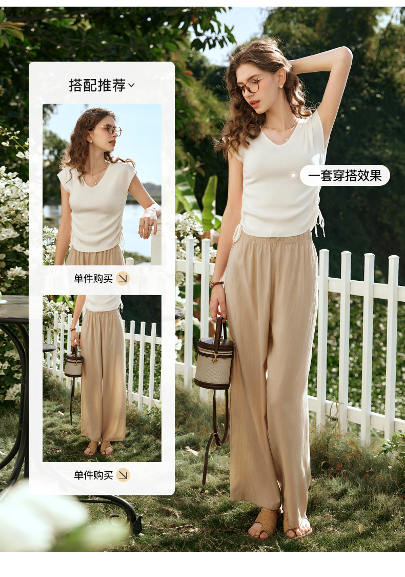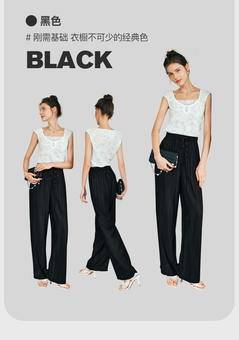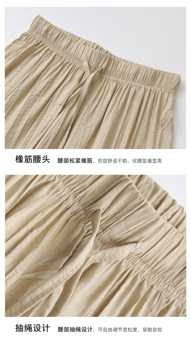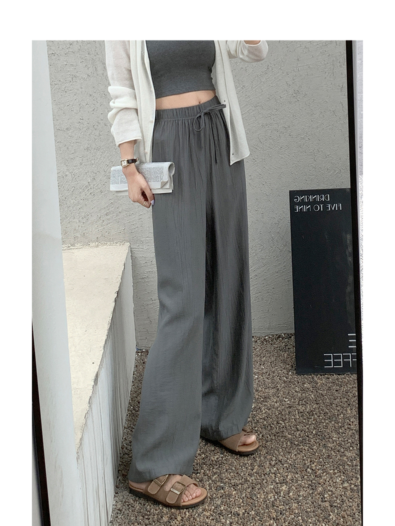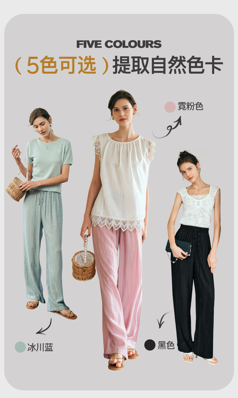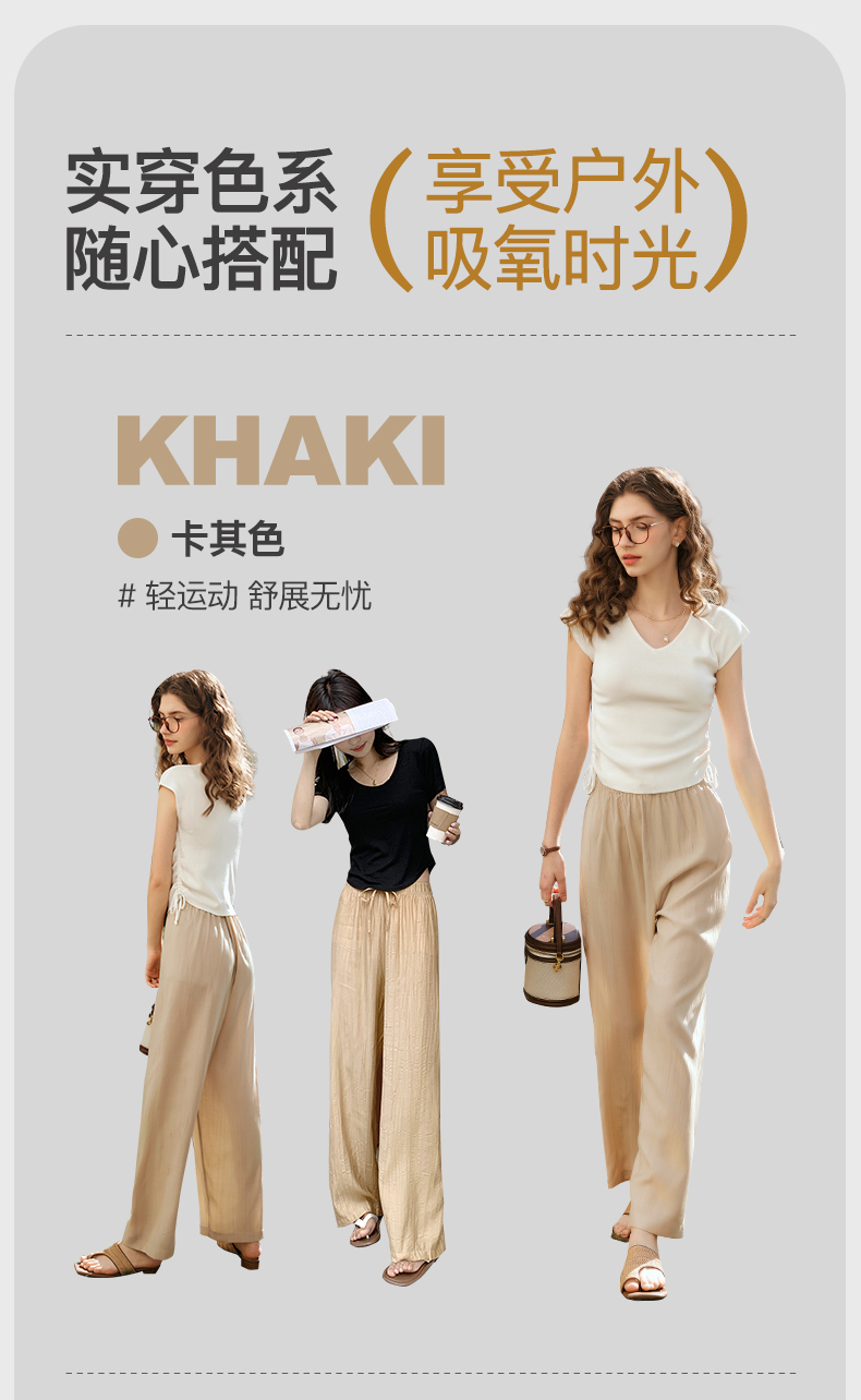 凉凉冰丝 高级褶皱肌理感OLrain欧芮儿法式冰爽休闲裤女夏季2023新款高腰垂感阔腿防晒裤子