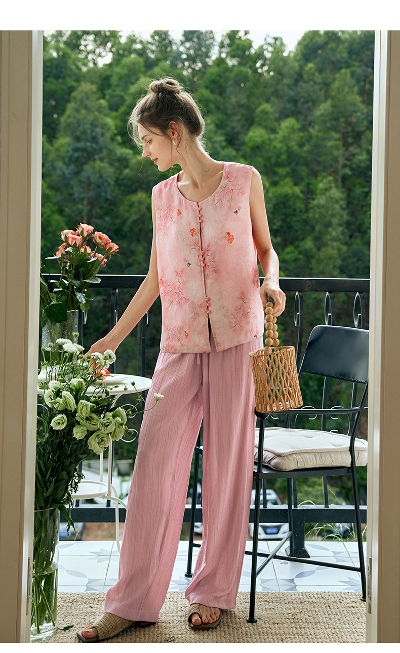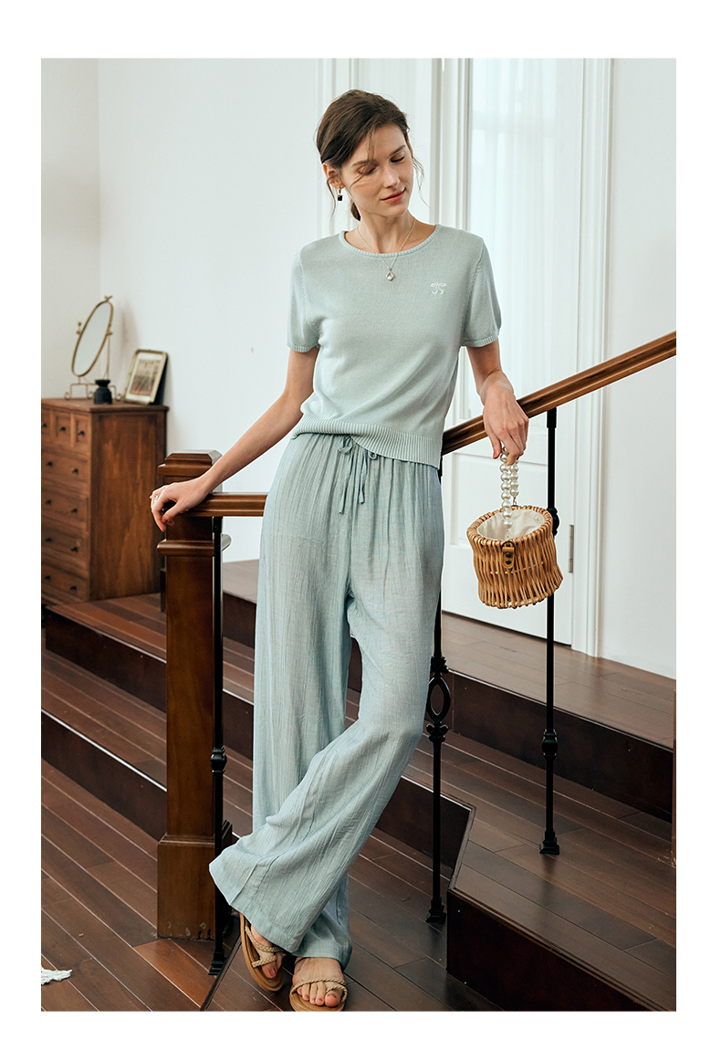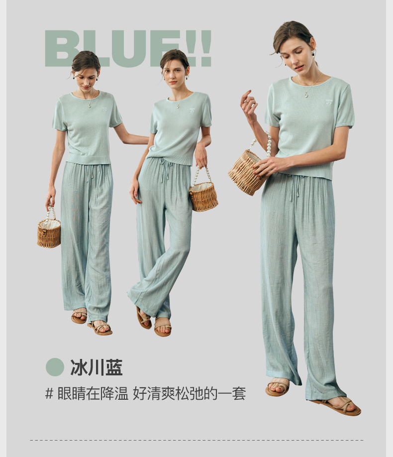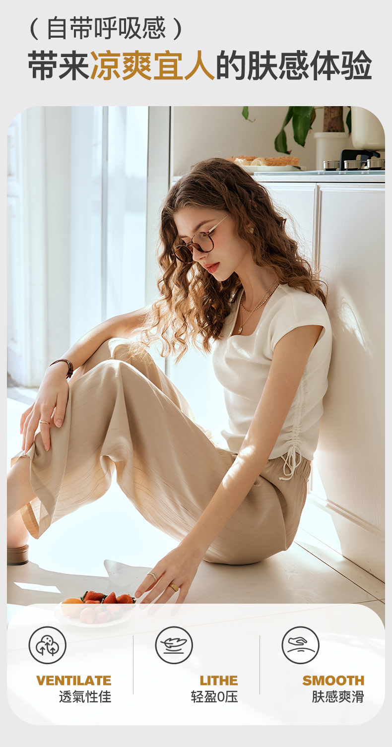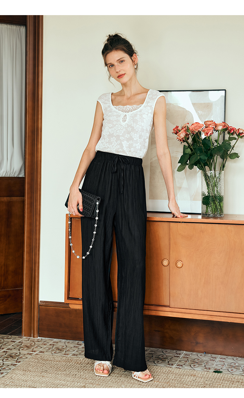 凉凉冰丝 高级褶皱肌理感OLrain欧芮儿法式冰爽休闲裤女夏季2023新款高腰垂感阔腿防晒裤子