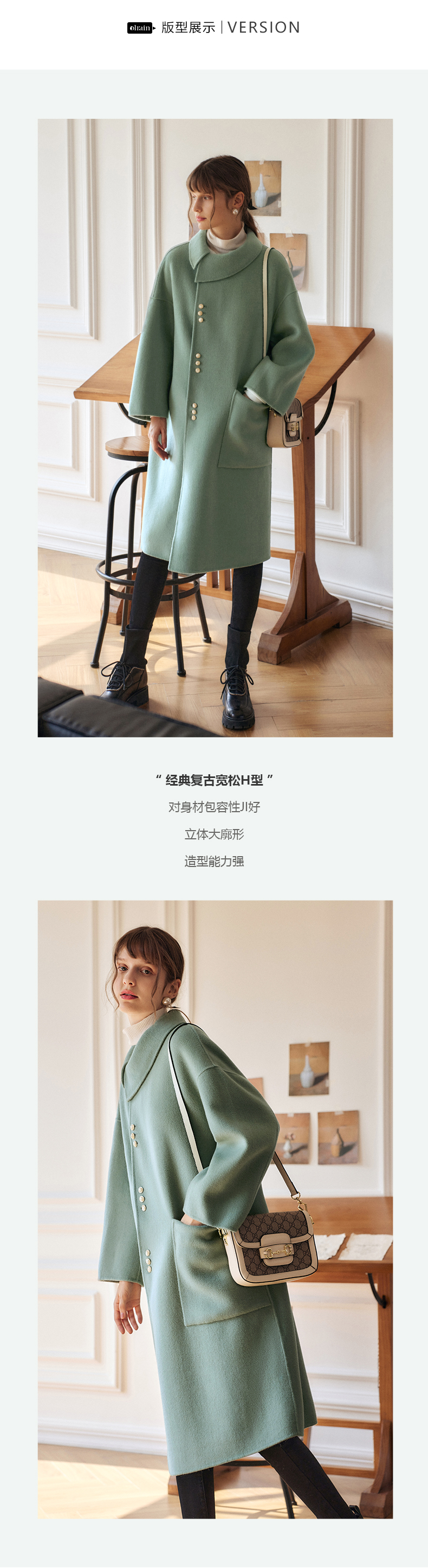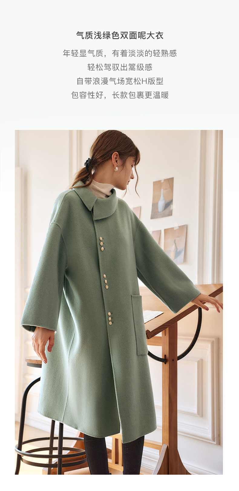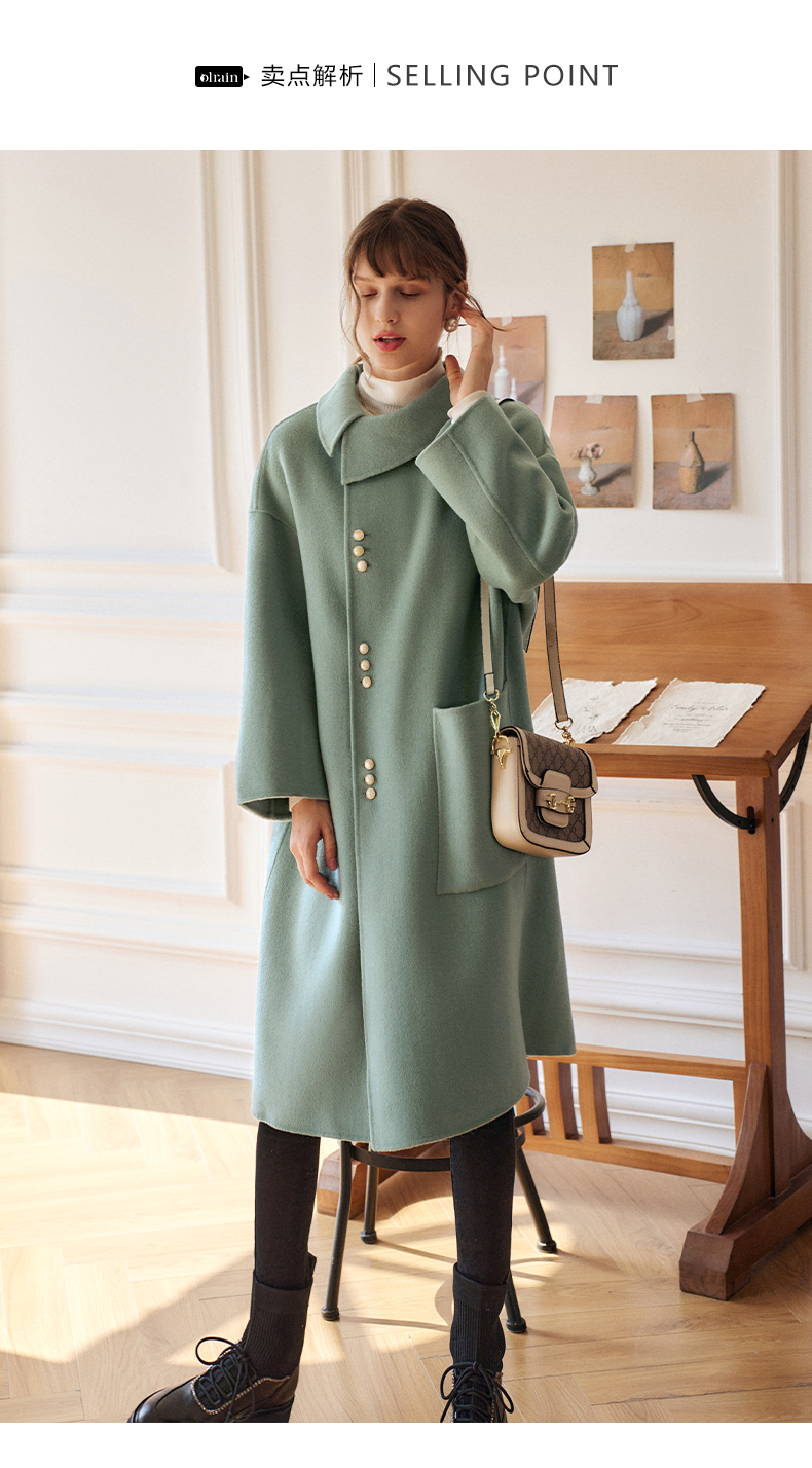 欧芮儿双面毛呢外套女冬季新款2021宽松显瘦百搭气质过膝羊毛大衣