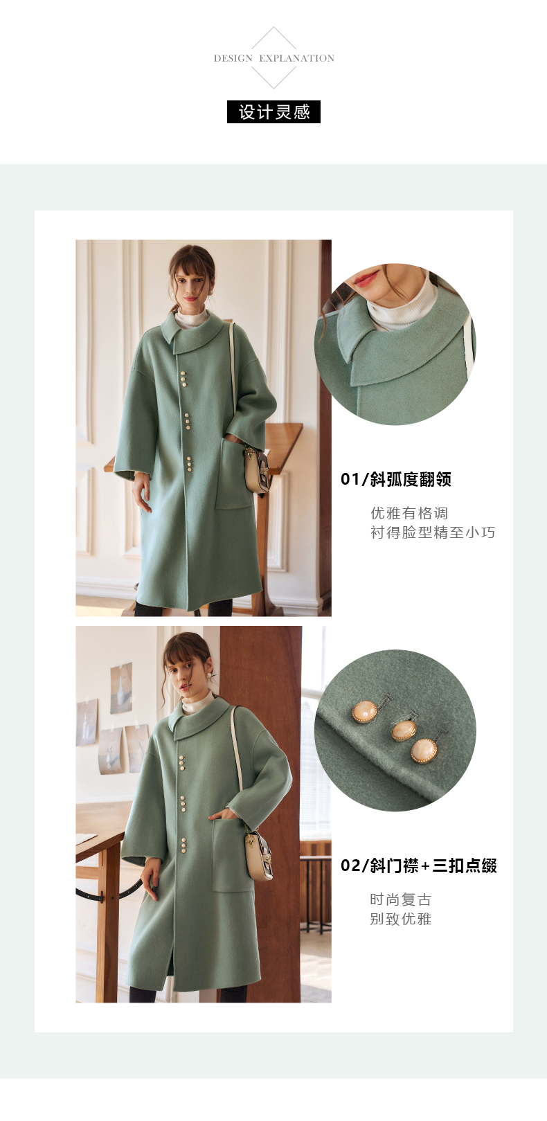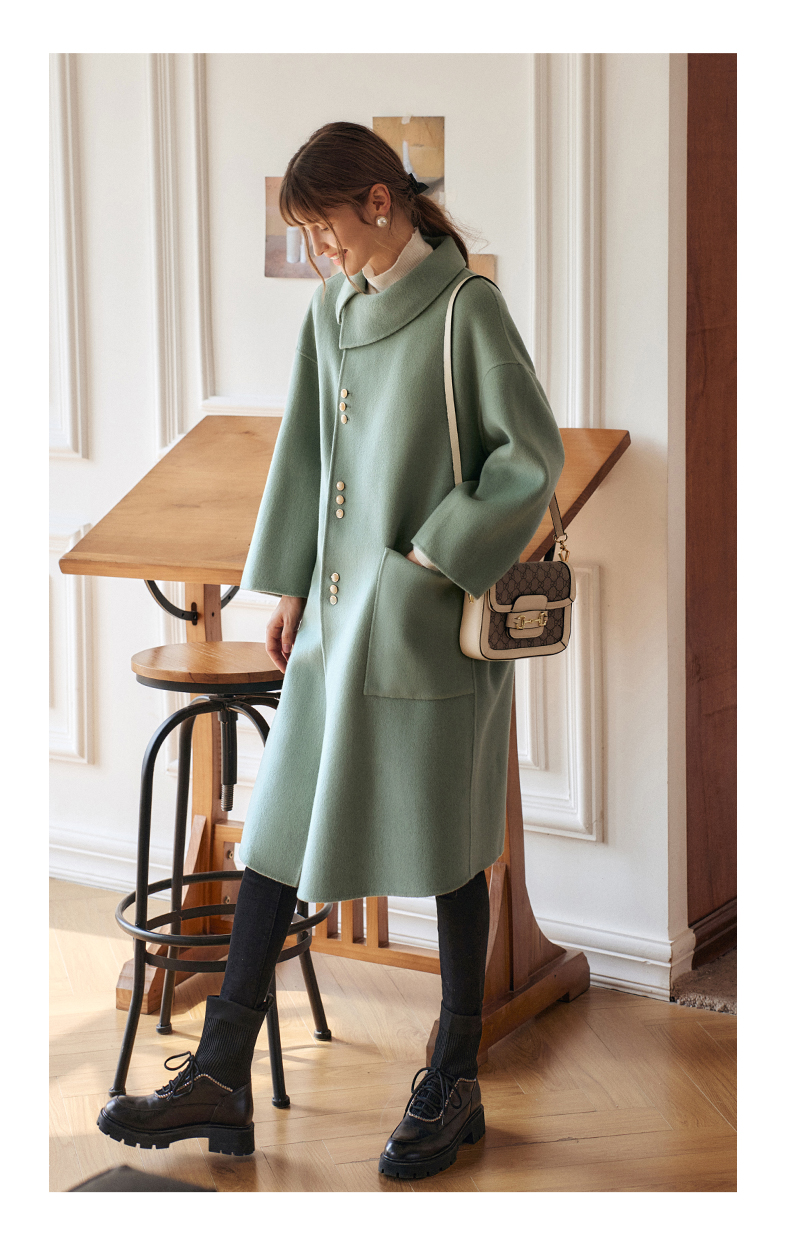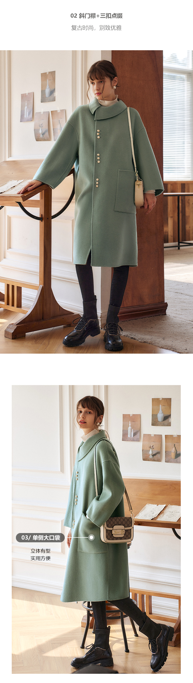 欧芮儿双面毛呢外套女冬季新款2021宽松显瘦百搭气质过膝羊毛大衣