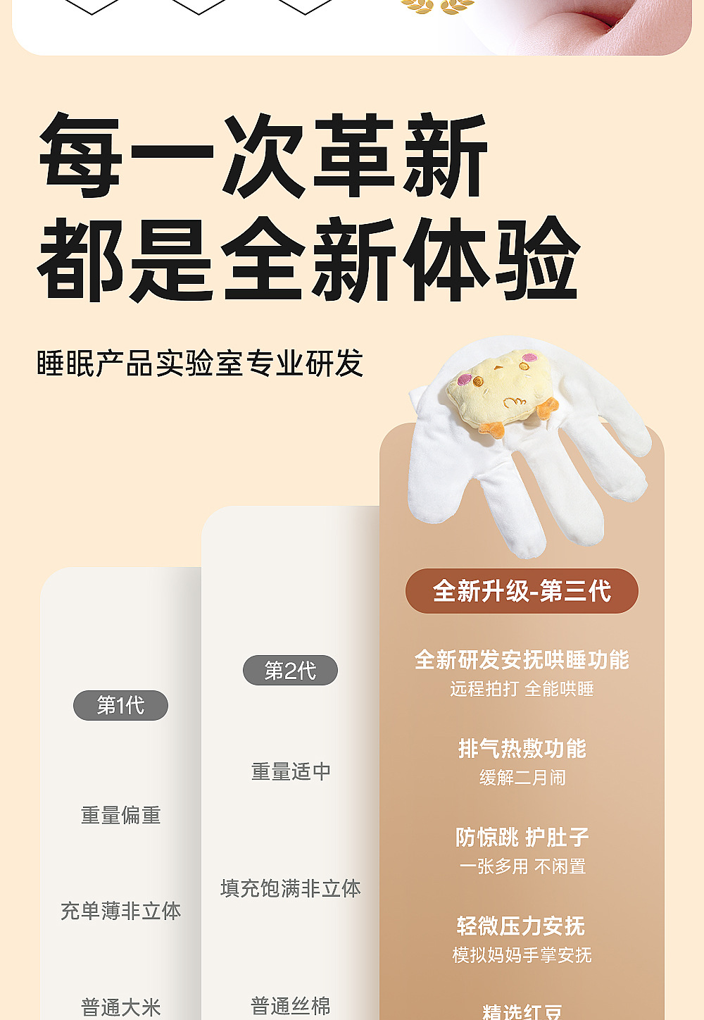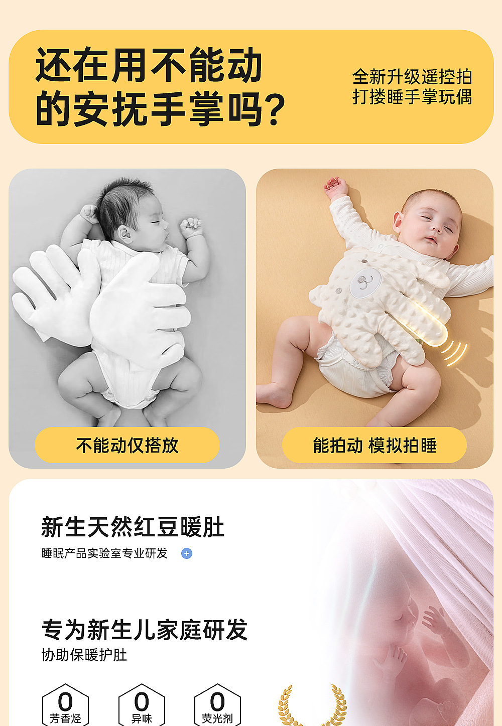 【专为新生儿家庭研发 抱着就想睡】宝宝安抚手掌 远程拍打 安抚好帮手 红豆填充可加热 全能哄睡 随时操作 给孩子妈妈般温暖
