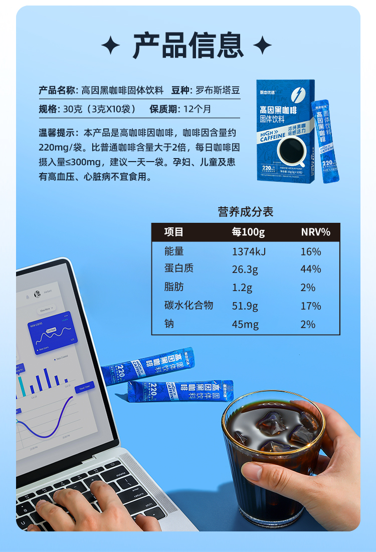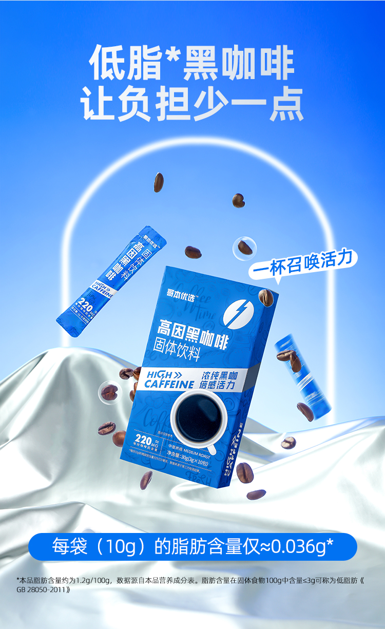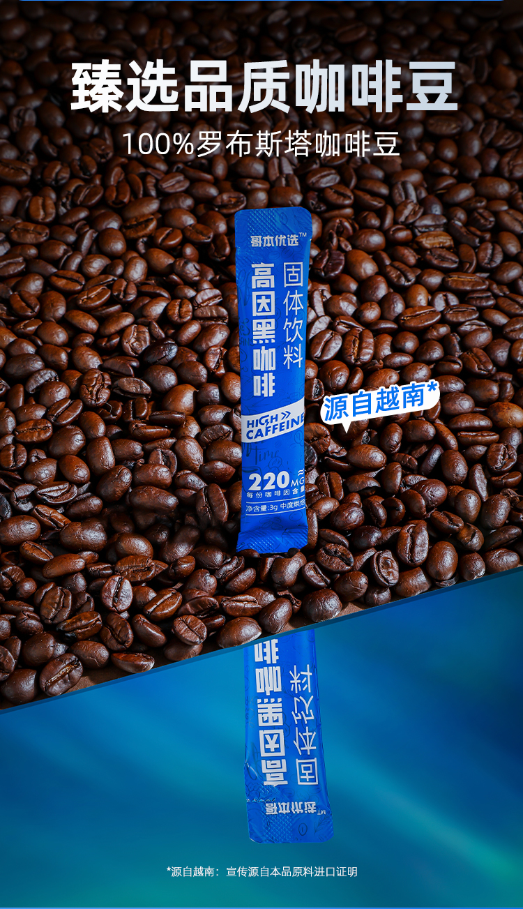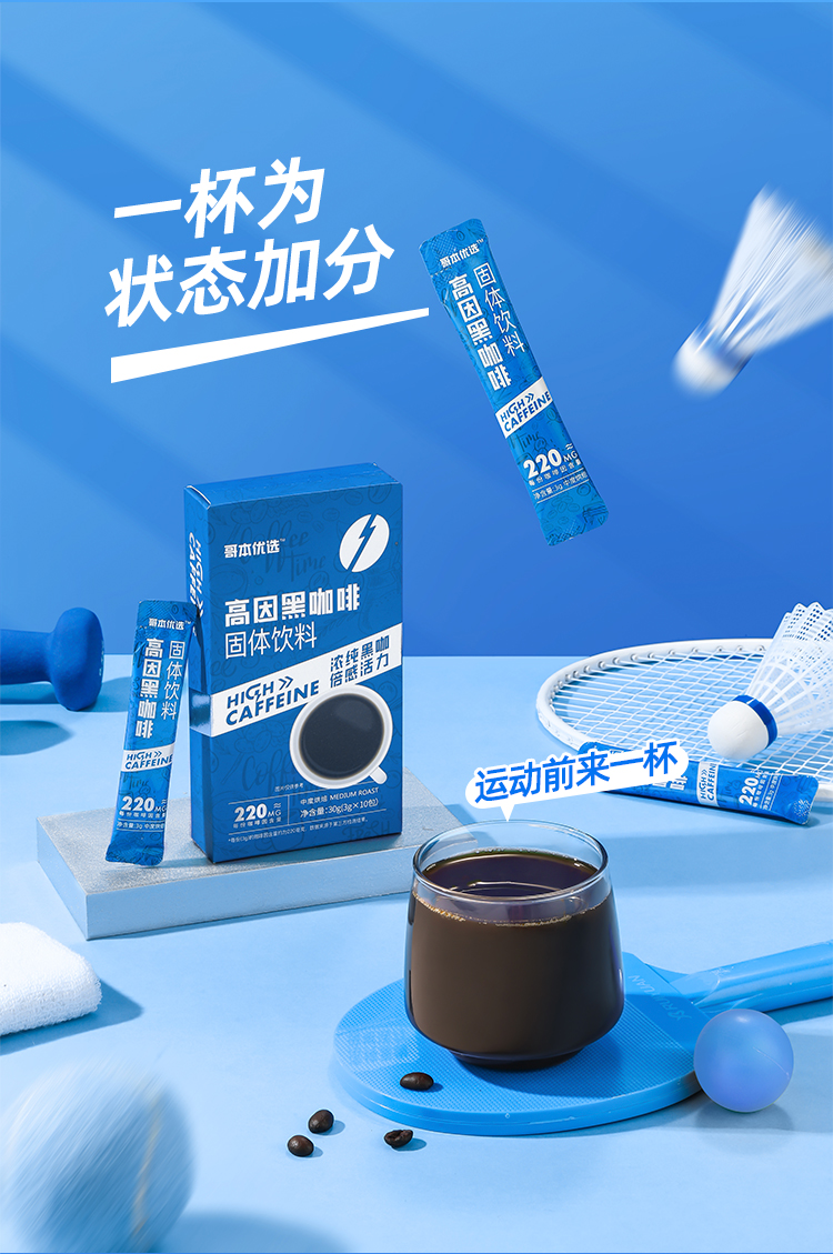 【双12史低价⚡7.7起超值秒杀】【1盒装】【满39包邮】【每条咖啡因含量≥220mg】哥本™高因黑咖啡固体饮料*1盒(10支)
