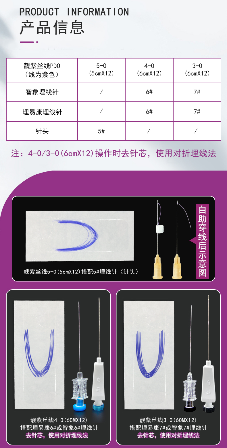 “自助穿线”【PDO单股对折埋线】靓紫丝线