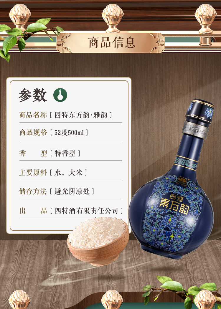 四特酒 白酒 东方韵 雅韵 特香型白酒 52度 500ml 单瓶装 江西四特酒