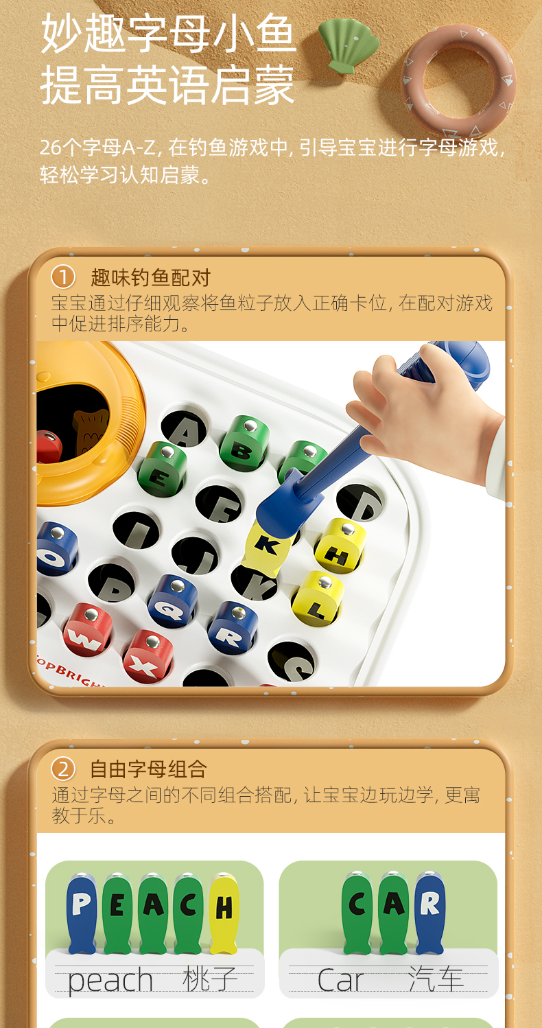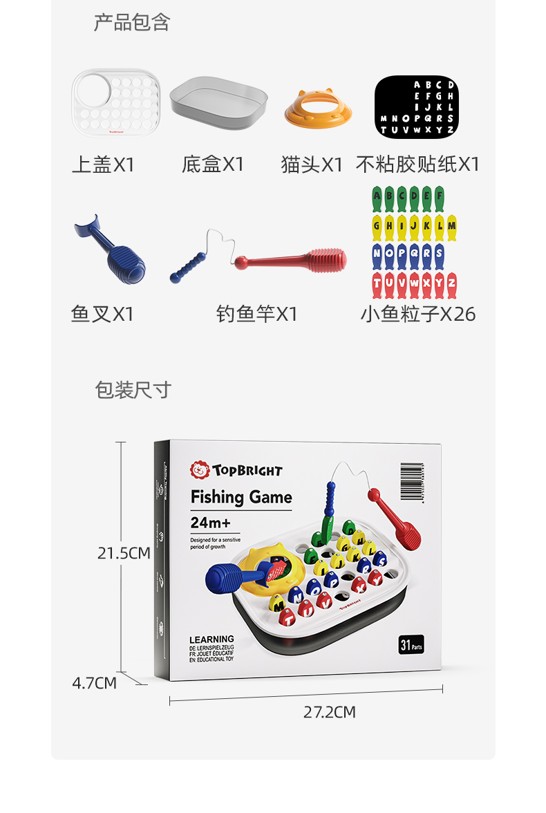 【2阶钓鱼游戏 提高英语启蒙】TOPBRIGHT特宝儿新款钓鱼玩具 情景式主题 宝宝把玩不停 大颗粒防误吞 一体式收纳不易丢