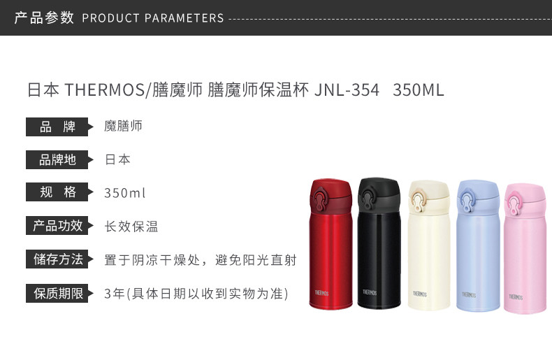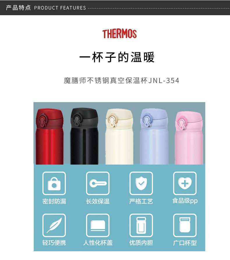 THERMOS/膳魔师 保温杯JNL-354 黑色 350MLJPY带授权招加盟代理