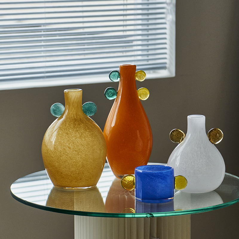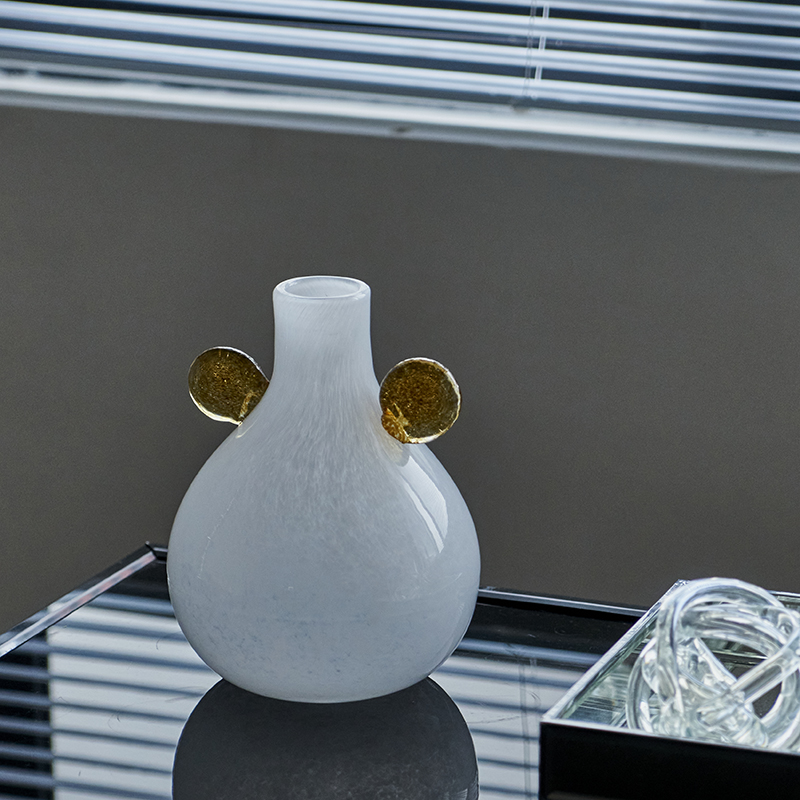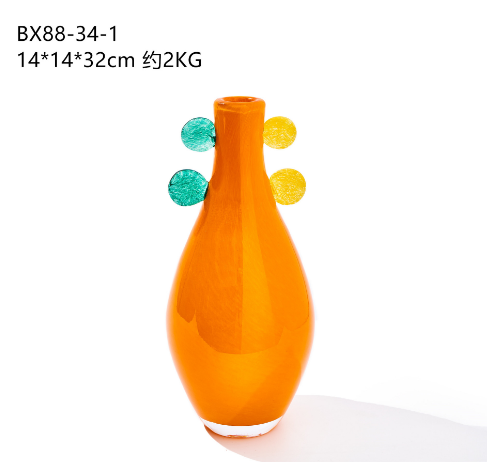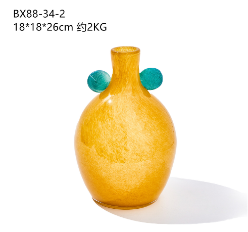 批发中古风创意手工双耳渐变大肚子小口花瓶高级感软装家居装饰玻