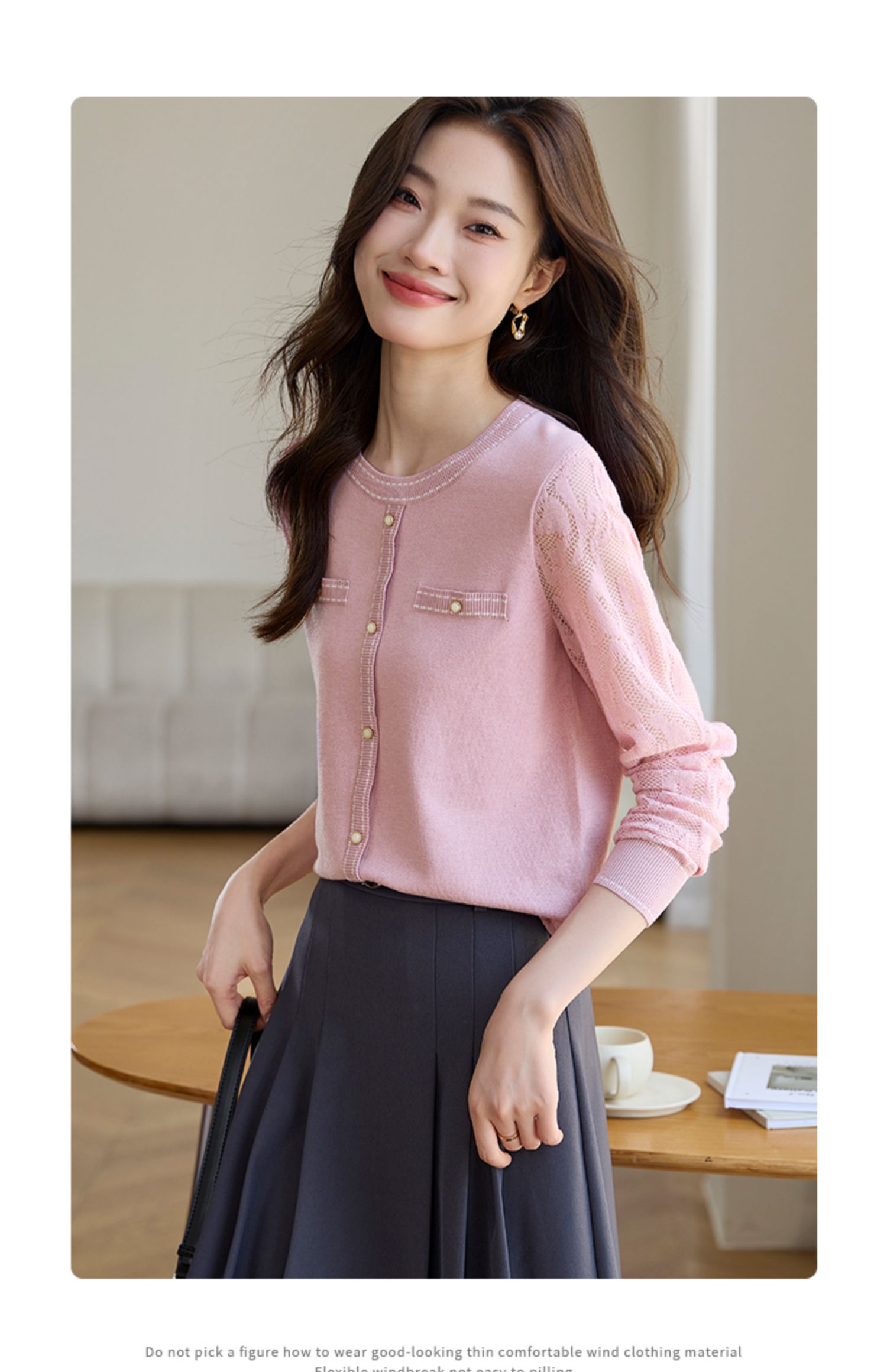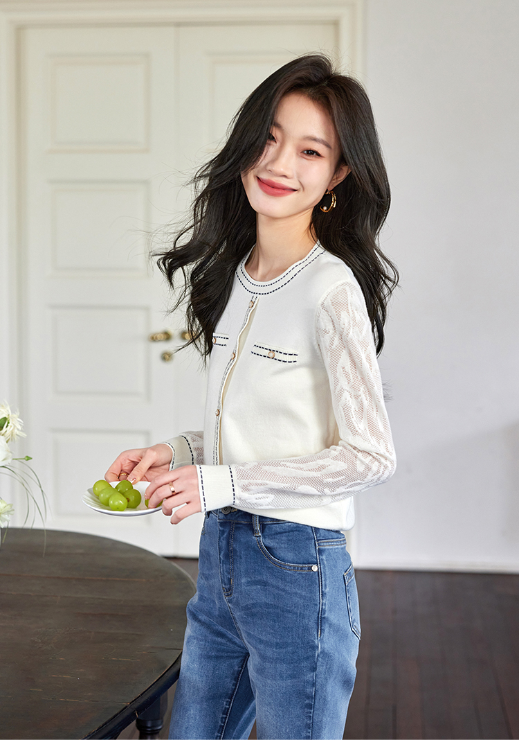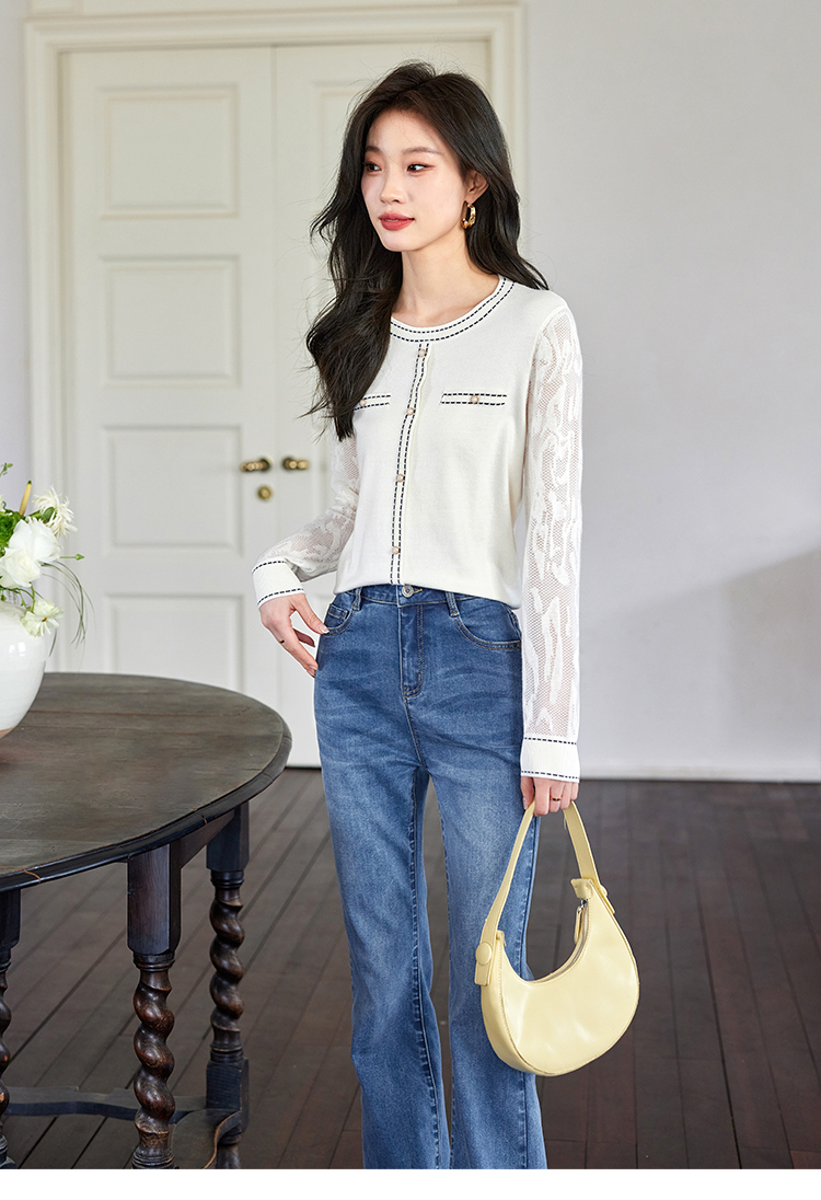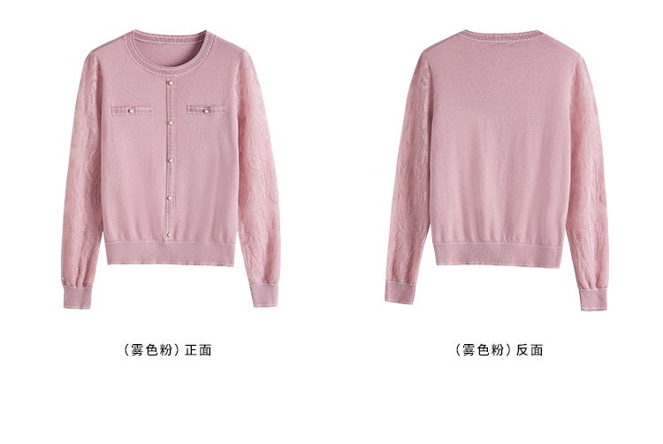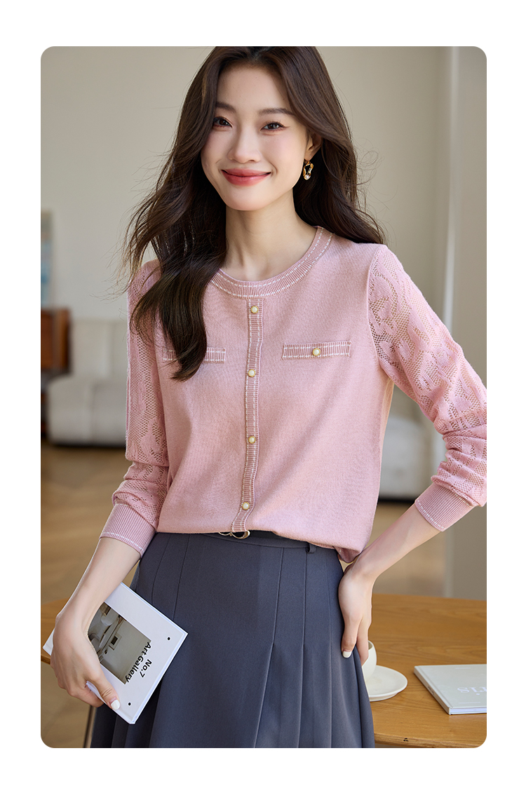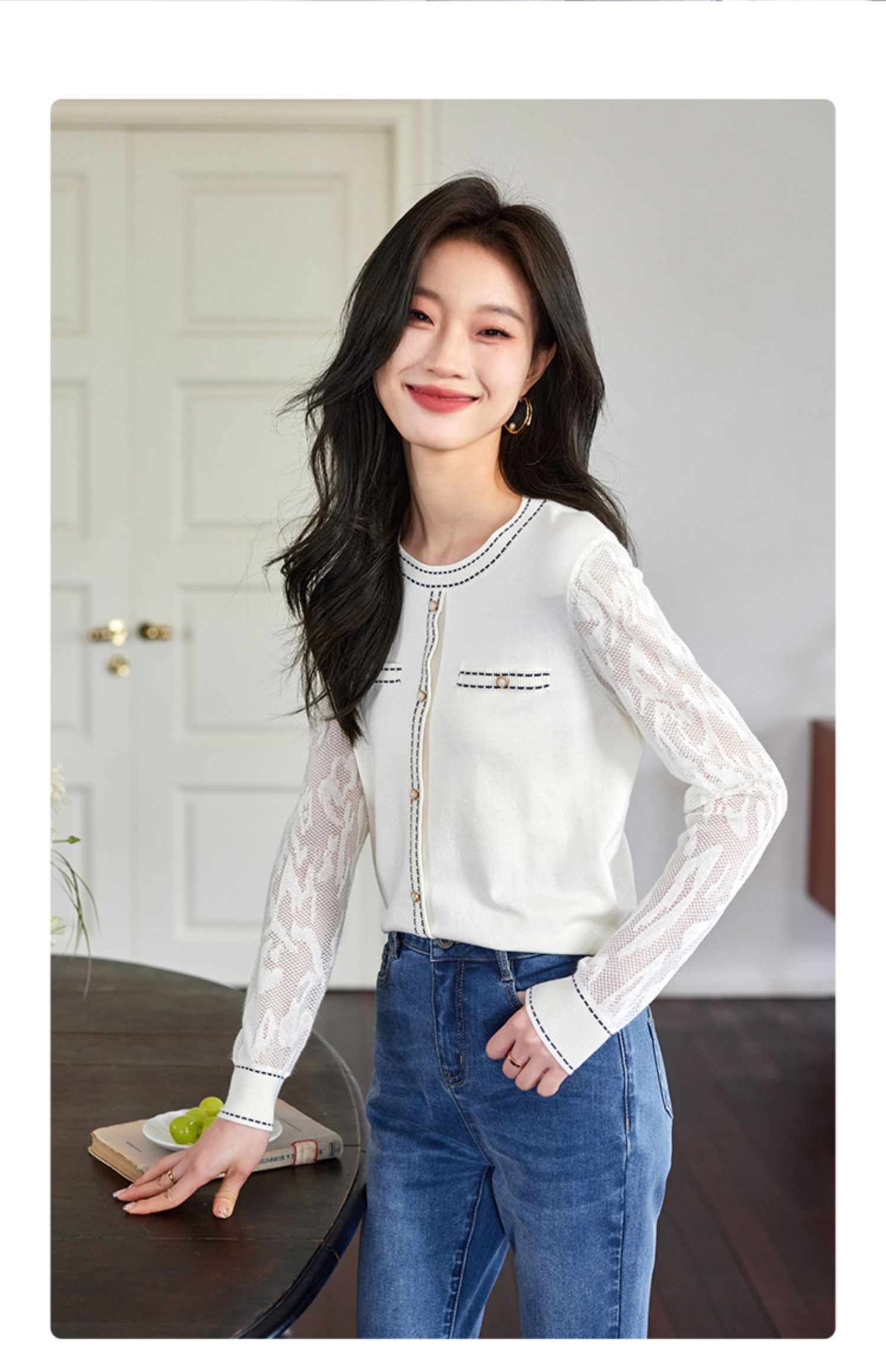 【专属特价】熙世界2025年秋装新款女装小香风蕾丝长袖拼接针织衫圆领毛织上衣