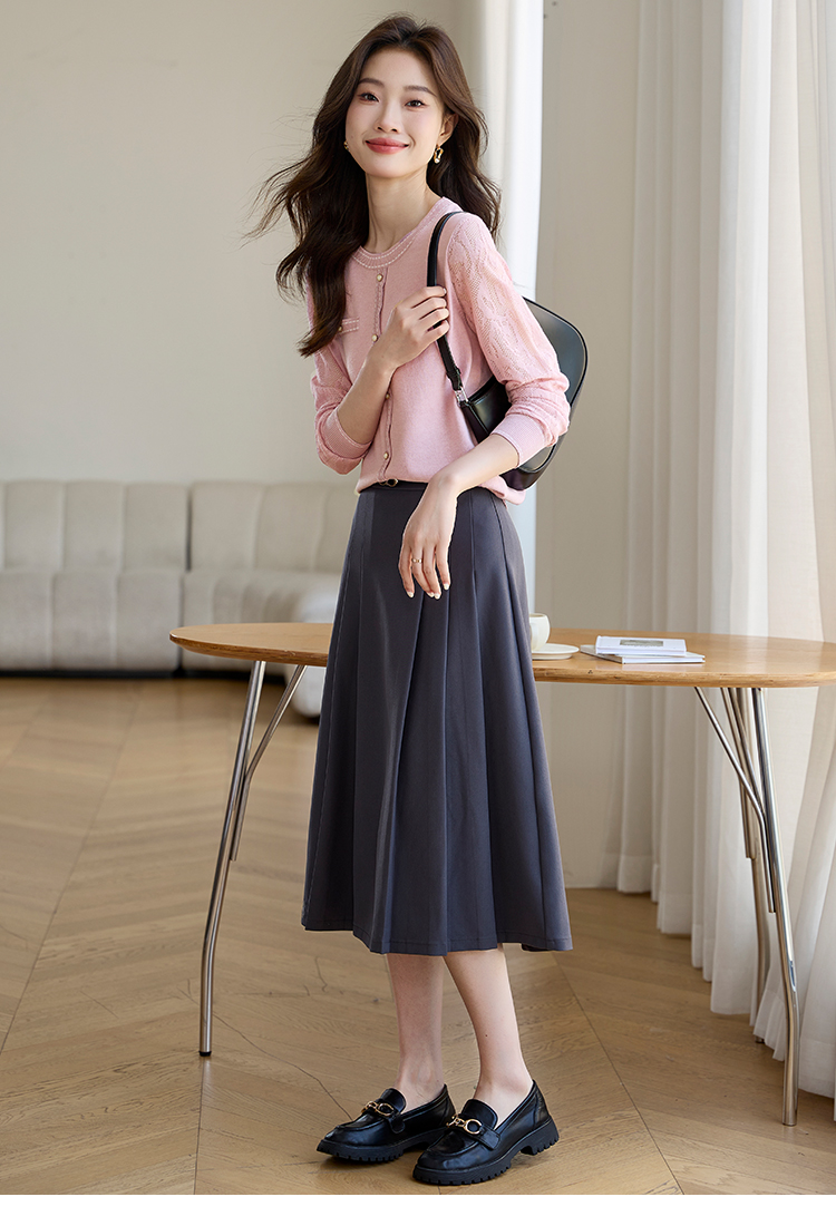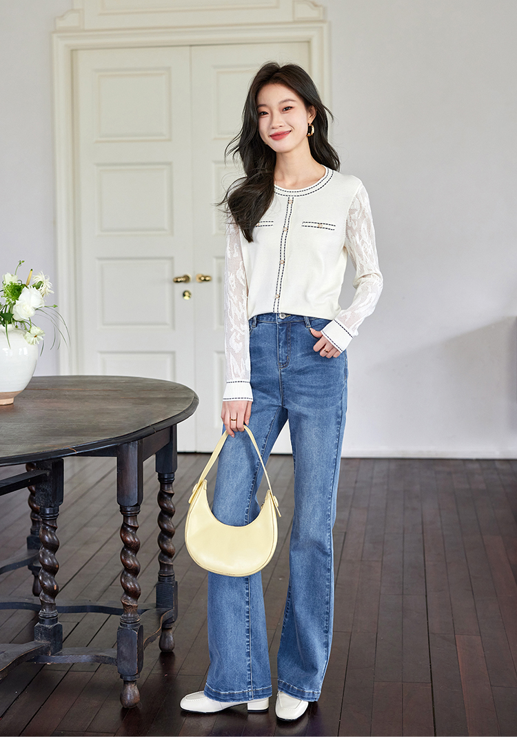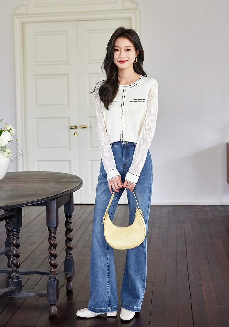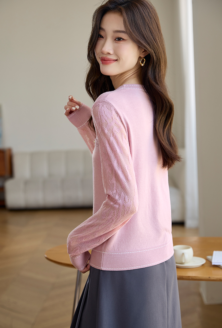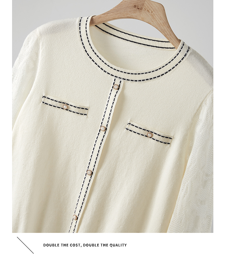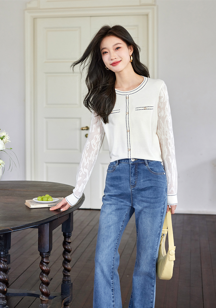 【专属特价】熙世界2025年秋装新款女装小香风蕾丝长袖拼接针织衫圆领毛织上衣