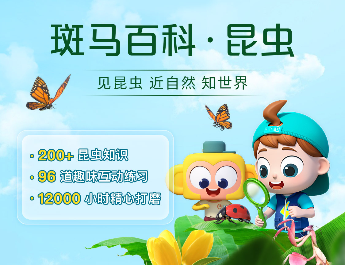 🦗12集昆虫主题内容科普,内容包含200+昆虫知识点,经过12000小时精心打磨的高品质实景动画,96道趣味互动练习