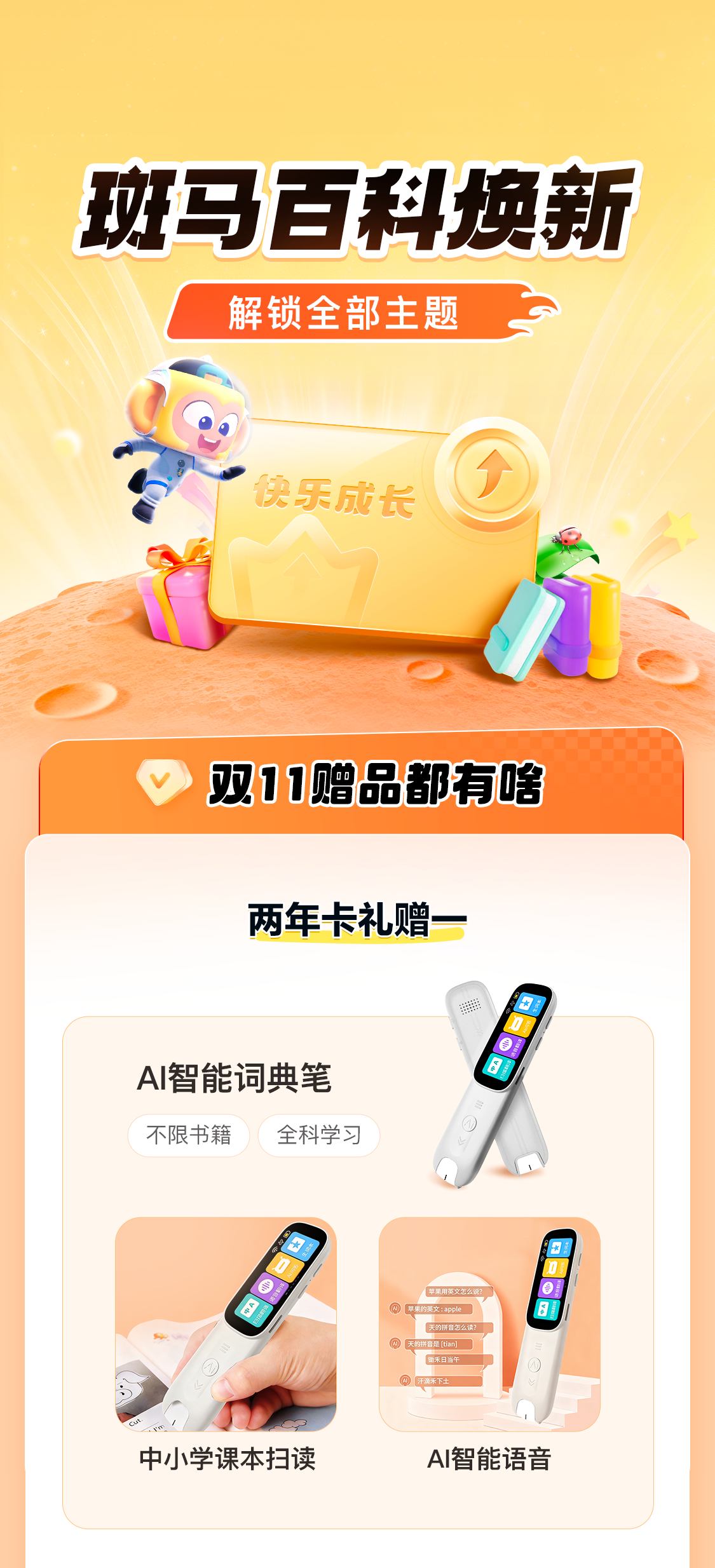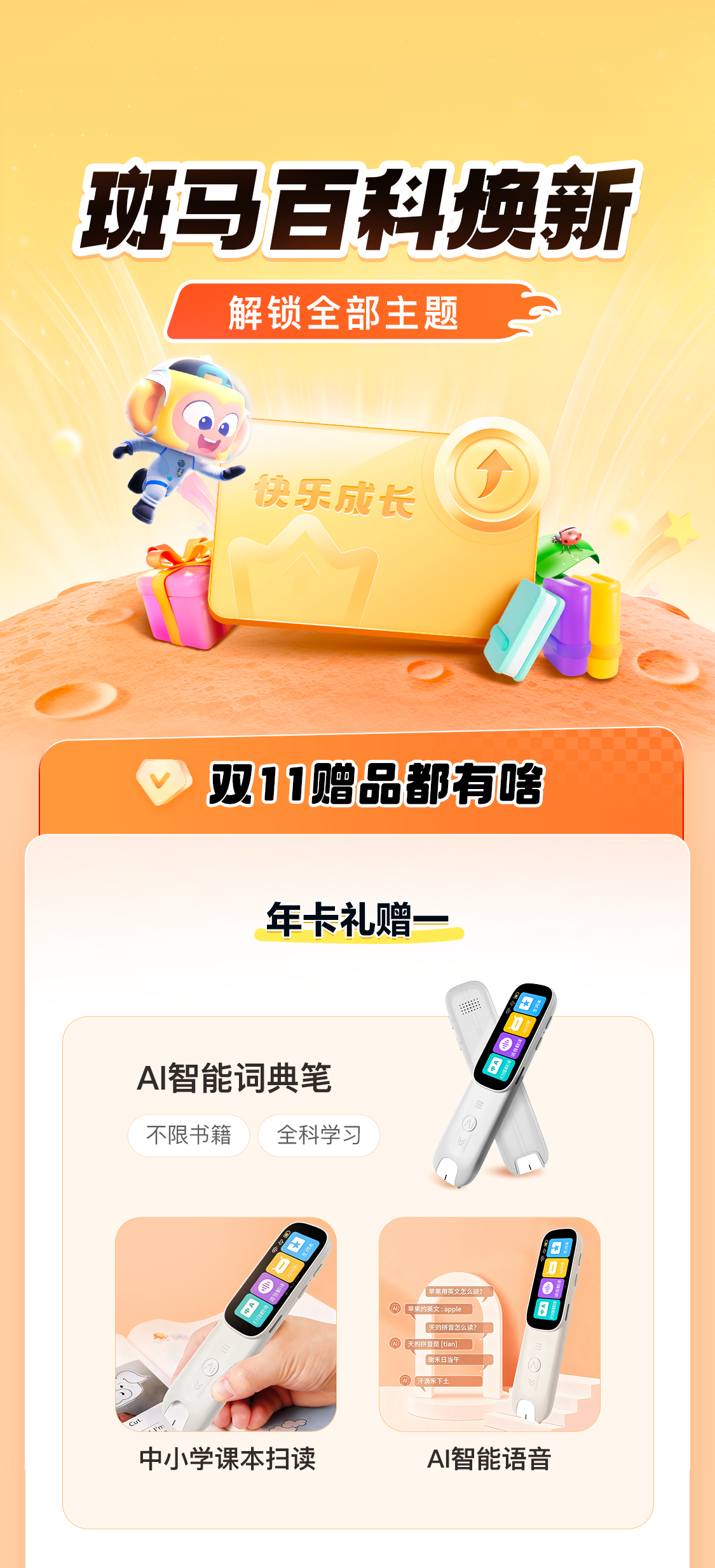 百科一年卡,实物赠品:词典笔一支,得力文具礼盒1套,虚拟赠品:斑马vip会员1年(价值268元)