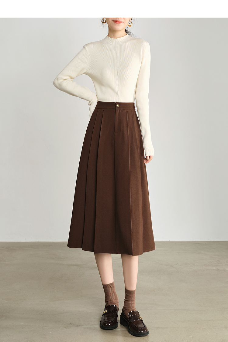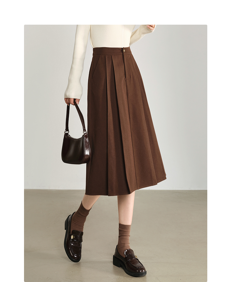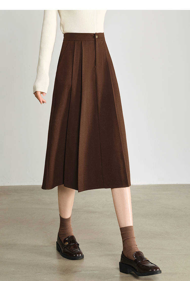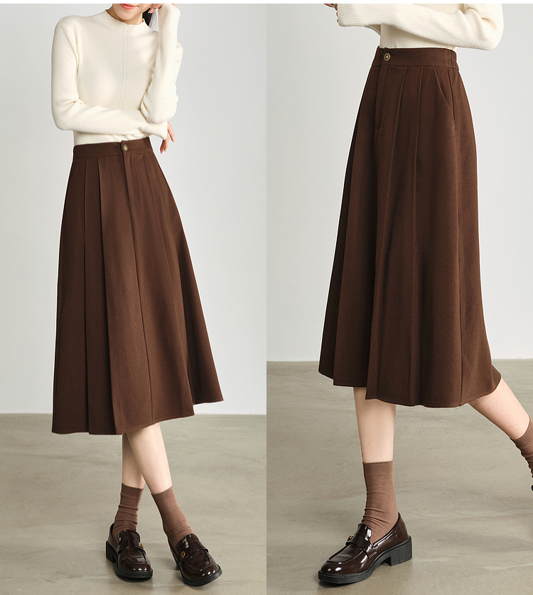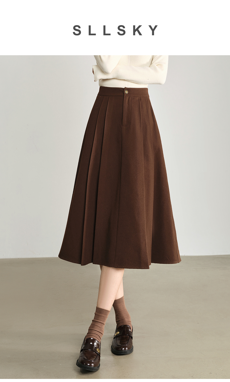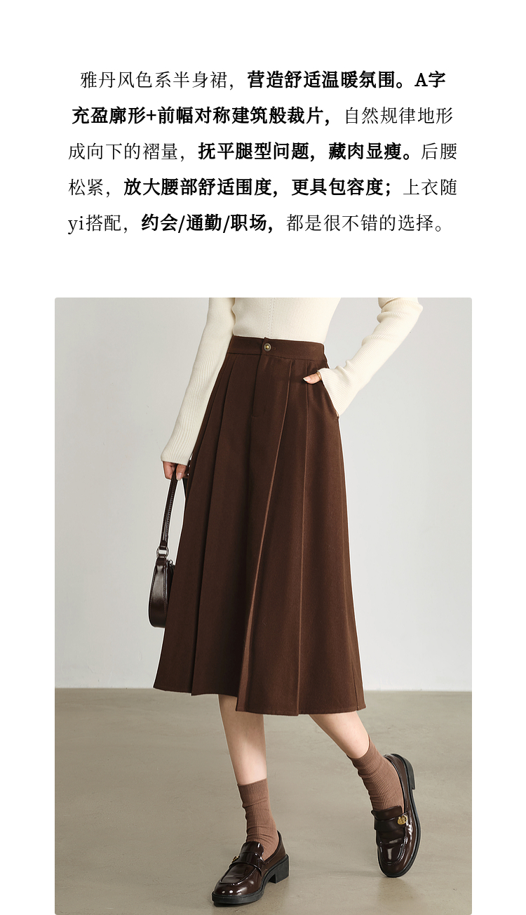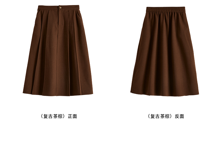 【年终特卖】熙世界复古棕色伞裙半身裙秋冬女2025新款赫本风高腰中长a字裙子