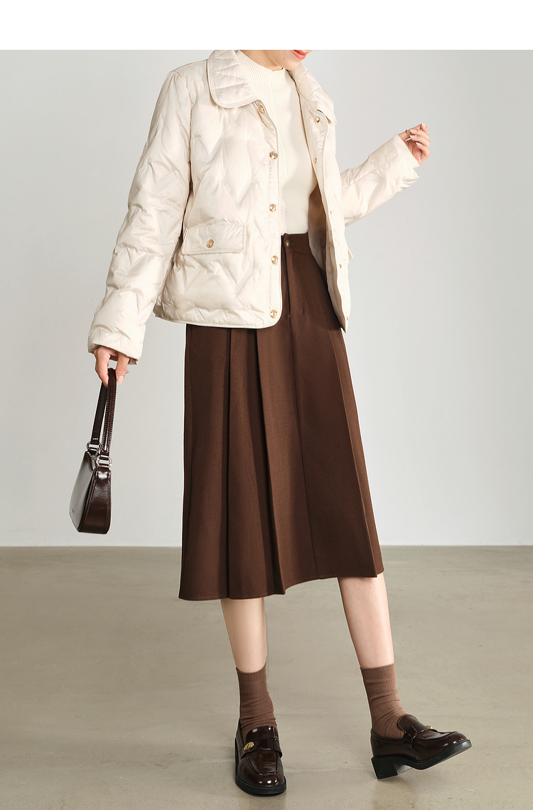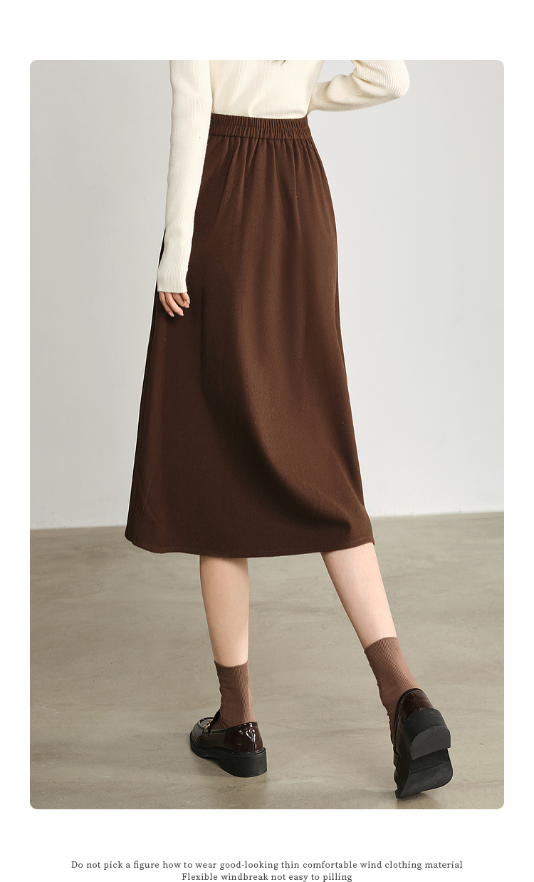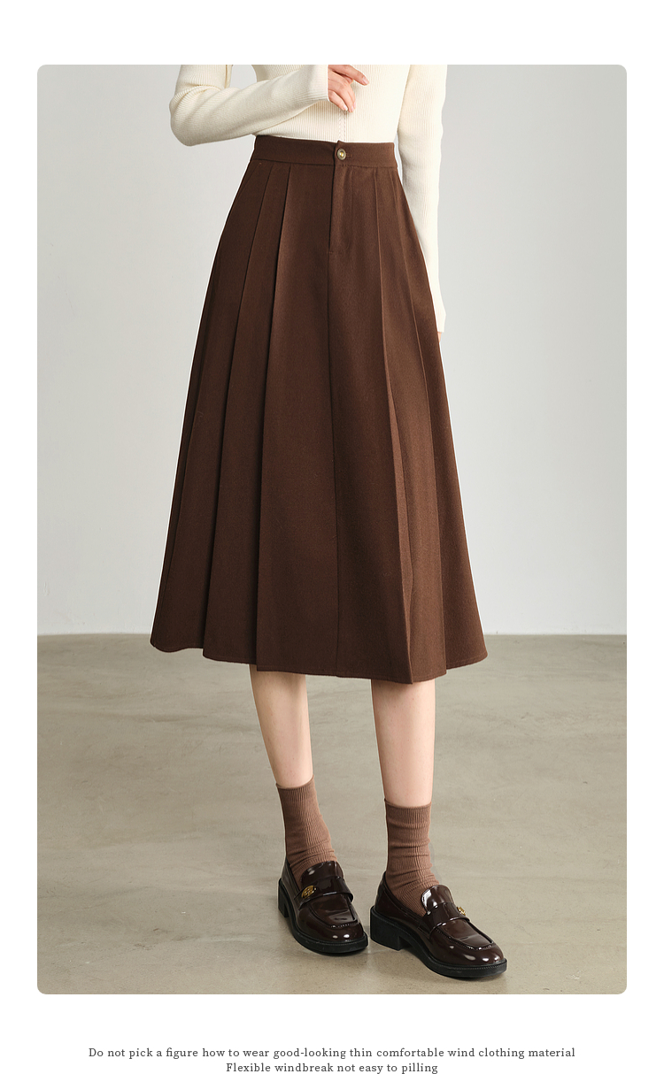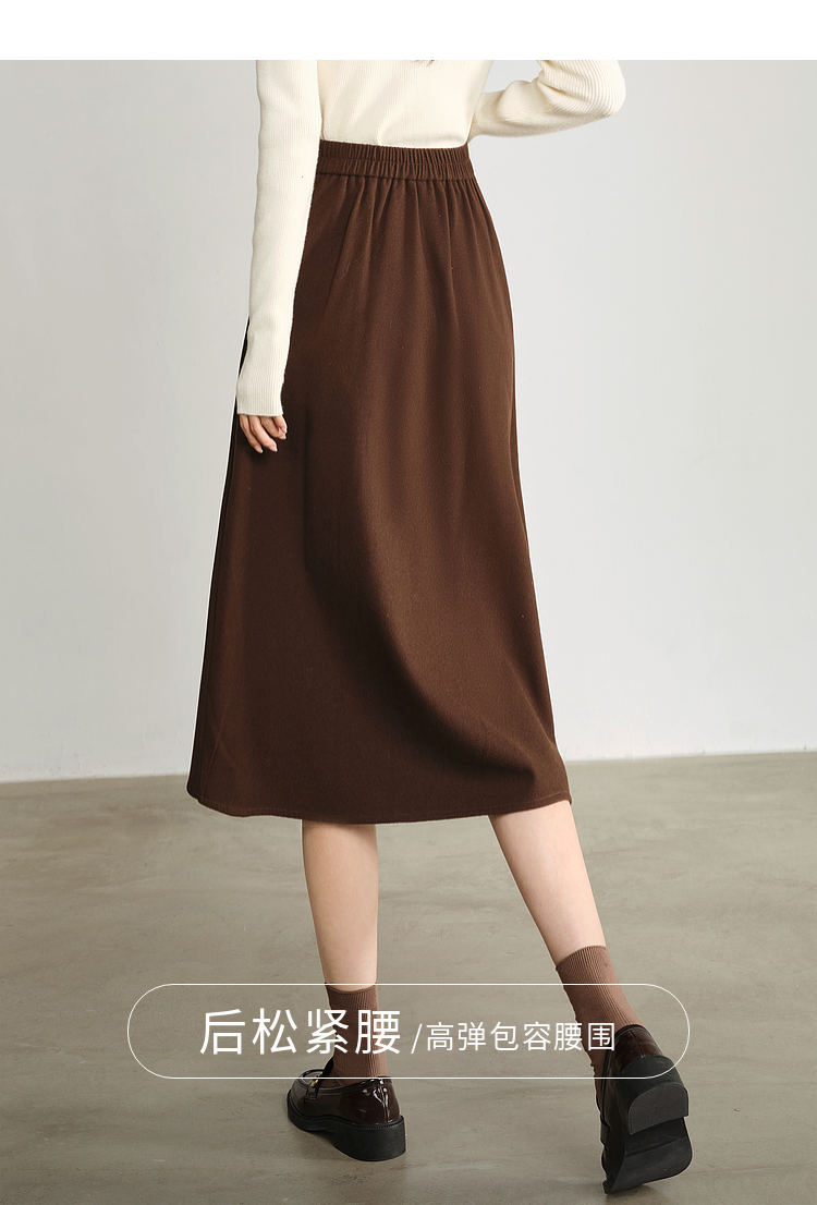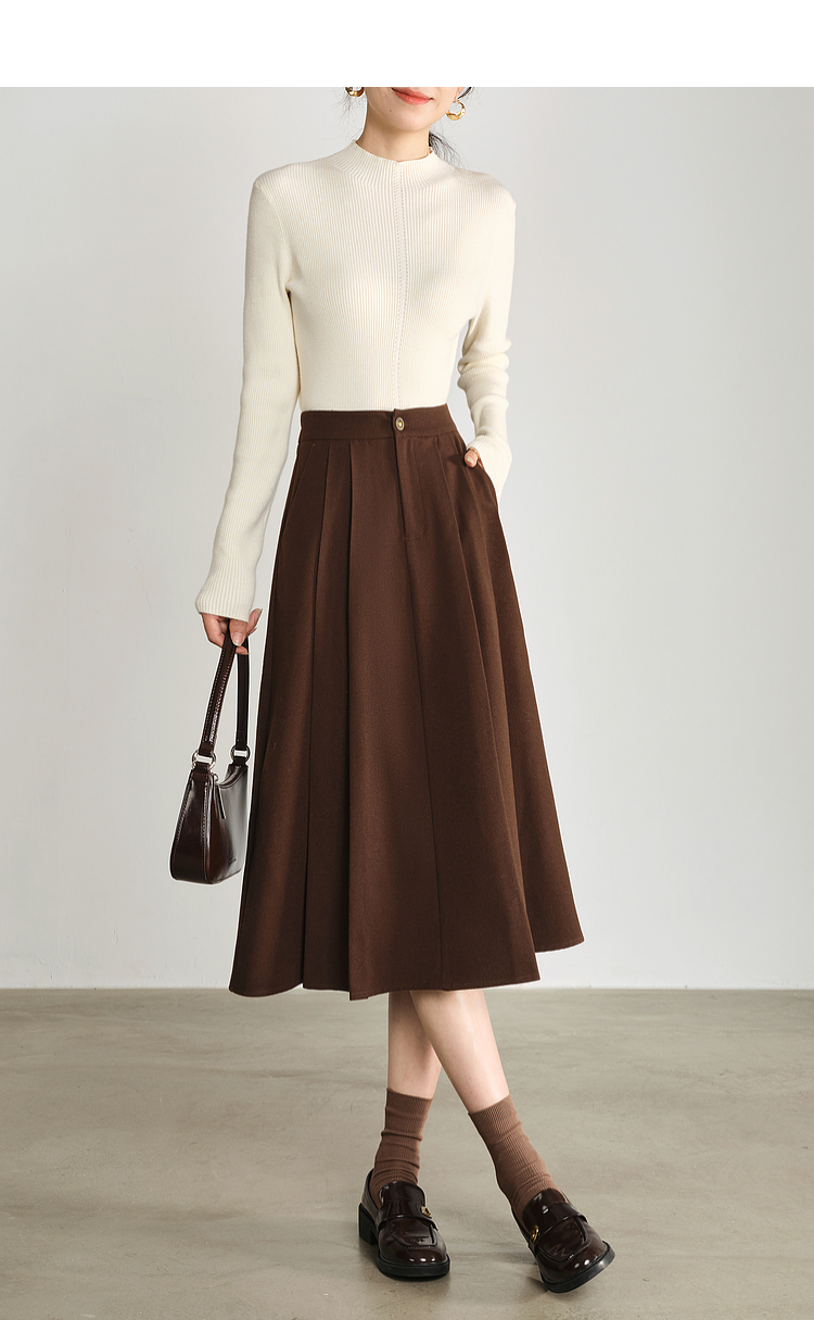 【年终特卖】熙世界复古棕色伞裙半身裙秋冬女2025新款赫本风高腰中长a字裙子