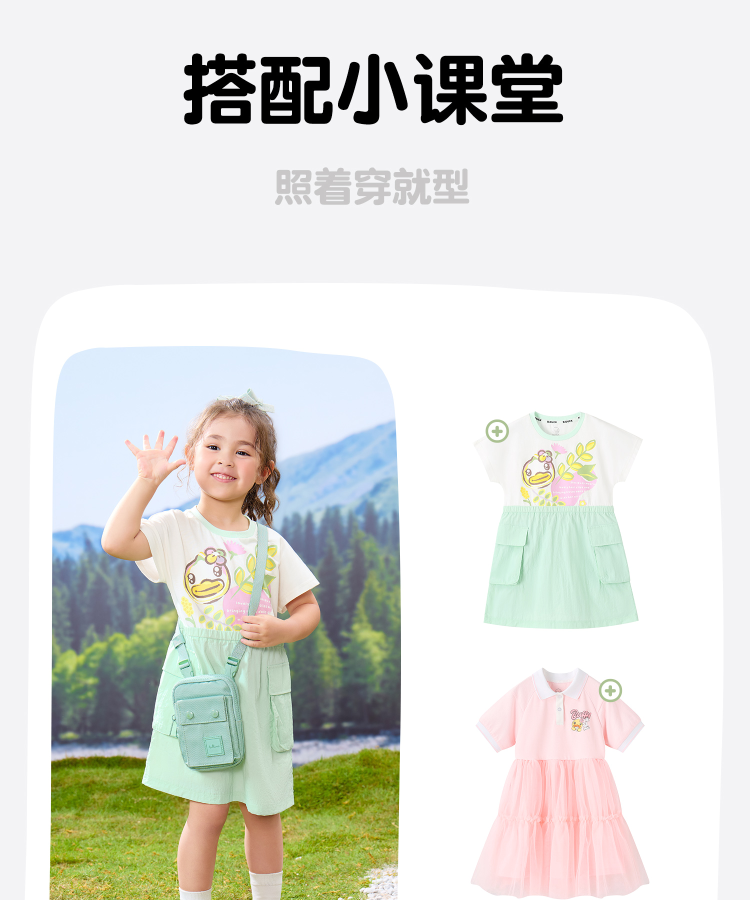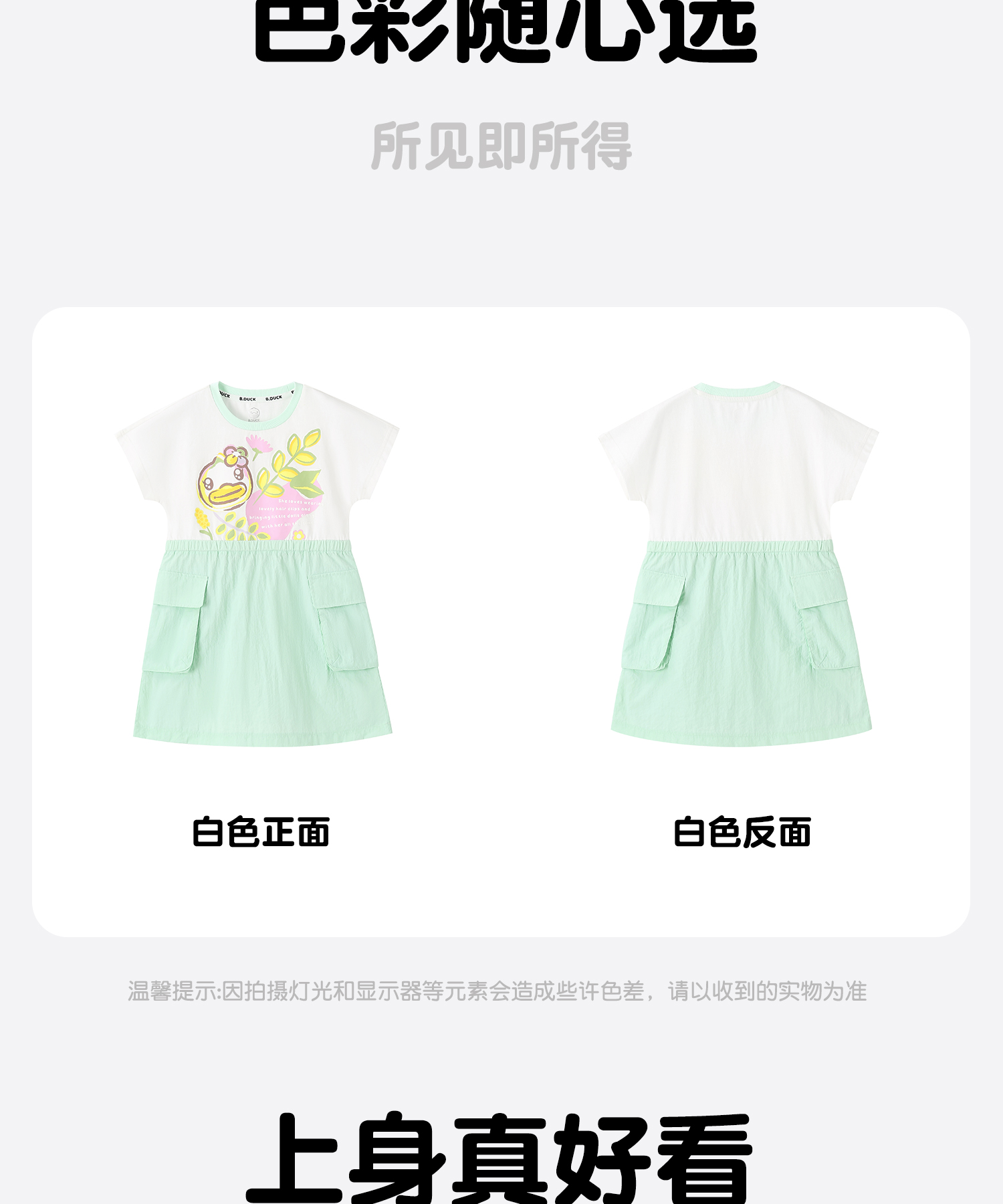 bduck小黄鸭童装夏季女童连衣裙儿童假两件裙子夏装短袖公主裙潮105-150 FF2680056
