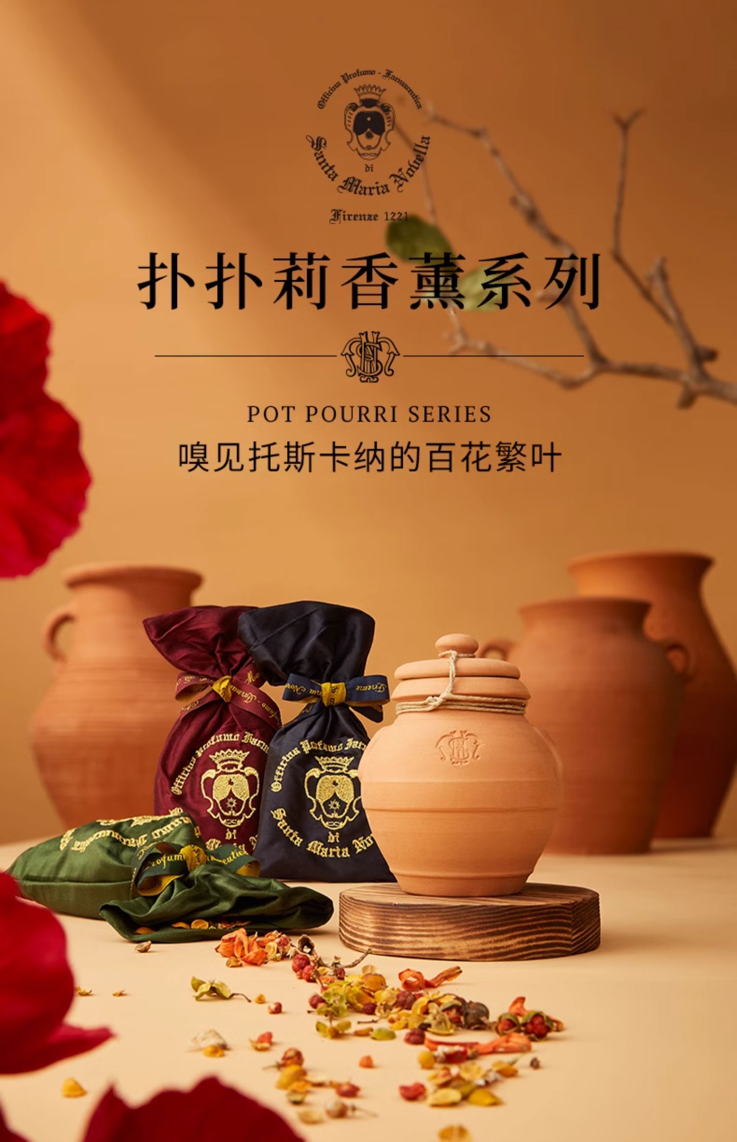 品牌直发 Santa Maria Novella 圣塔玛利亚诺维拉 扑扑莉香薰陶罐 20g/70g 扑扑莉花香包 红色 40g