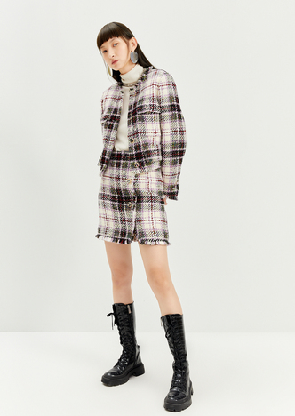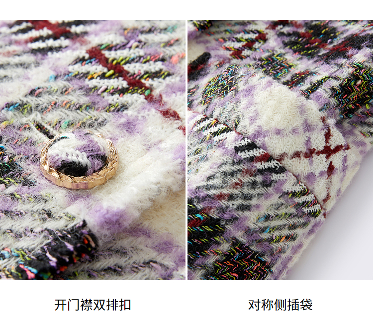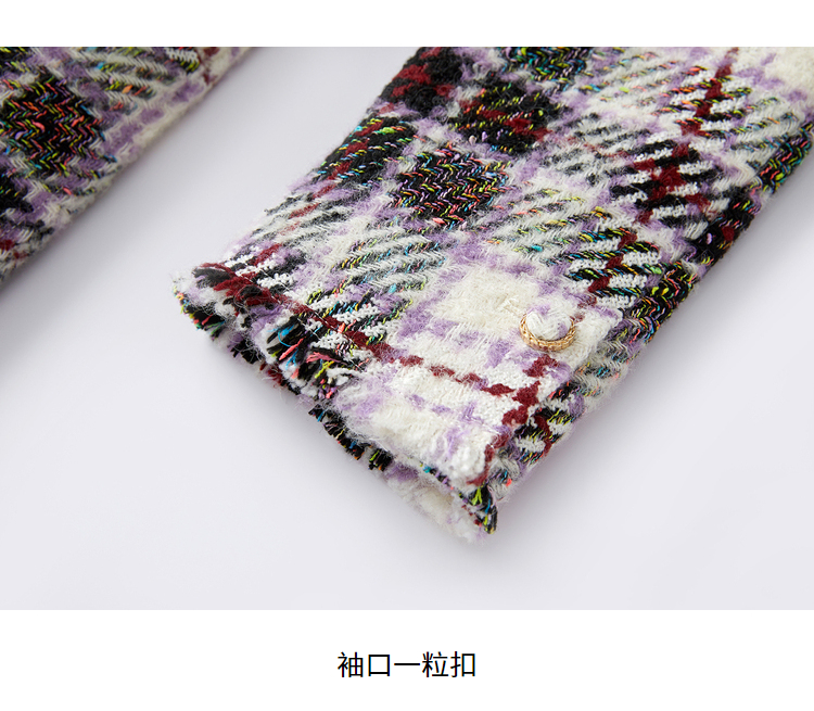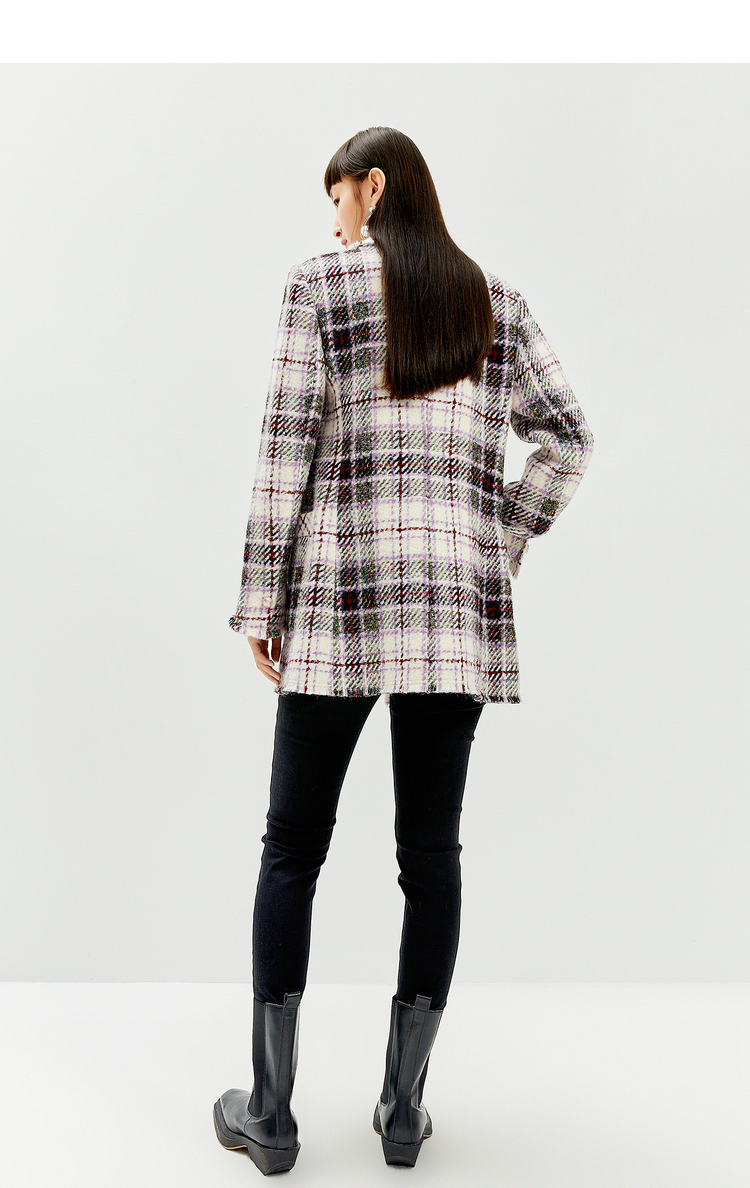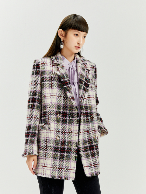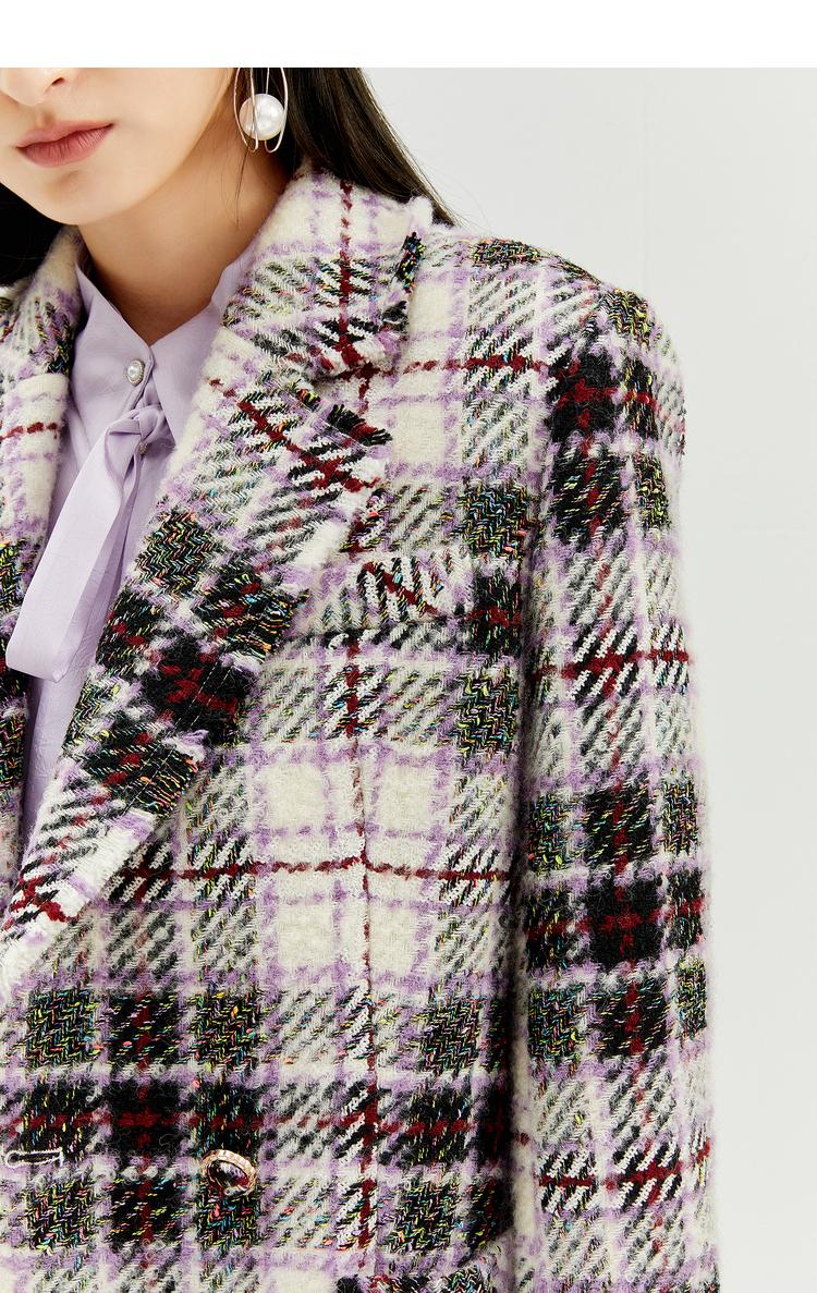 NEELLY纳俪格子毛呢外套女士秋冬季修身双排扣大衣格纹通勤百搭