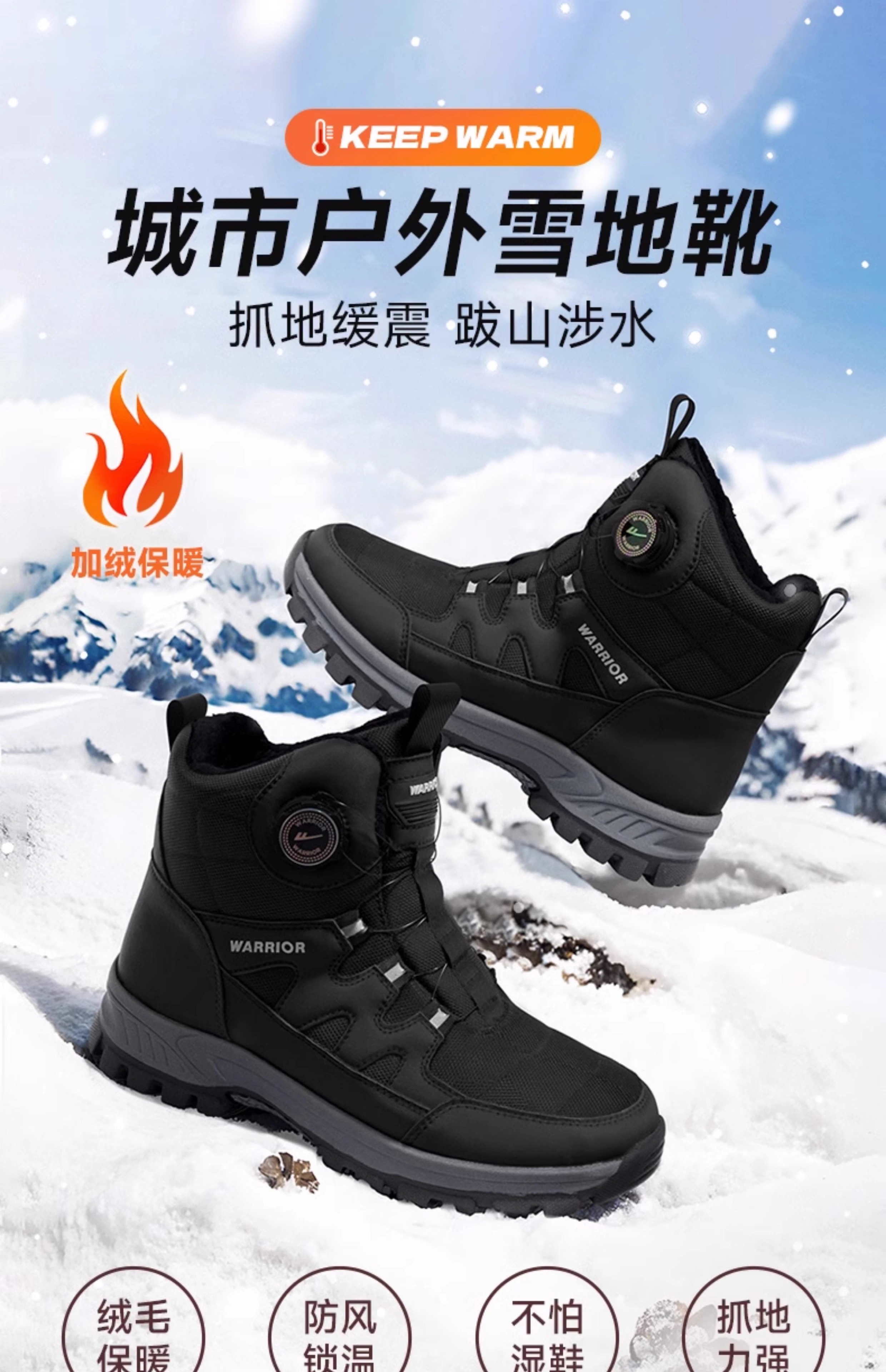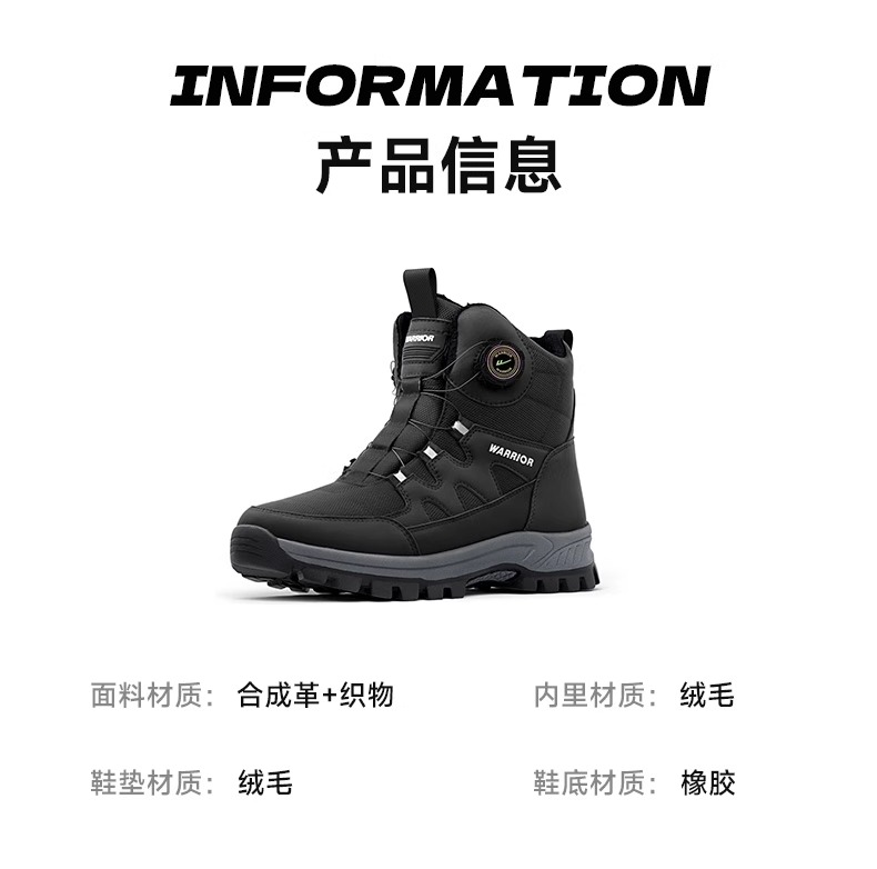 回力雪地靴男2024冬季新款加绒加厚保暖户外登山鞋子东北大棉鞋男