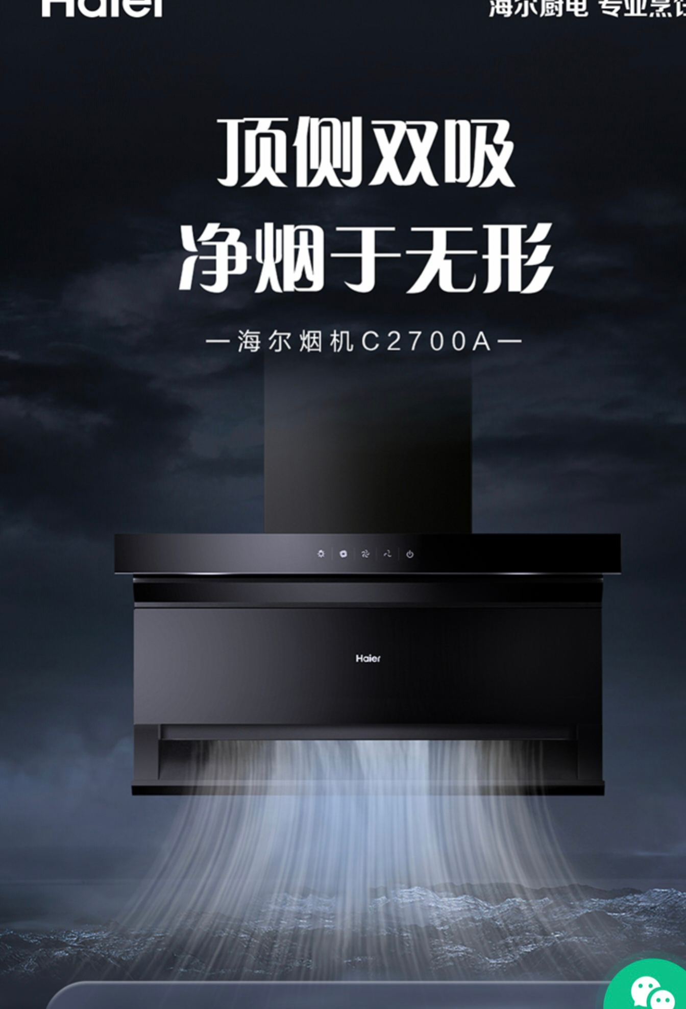海尔 CXW-258-C2700A 烟机 顶侧双吸净烟于无形