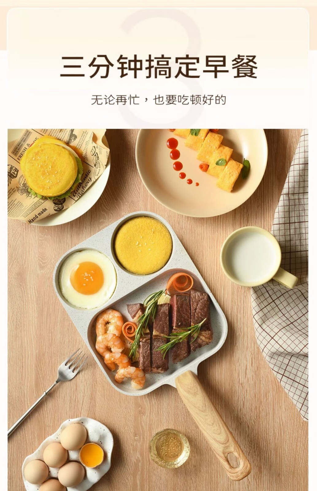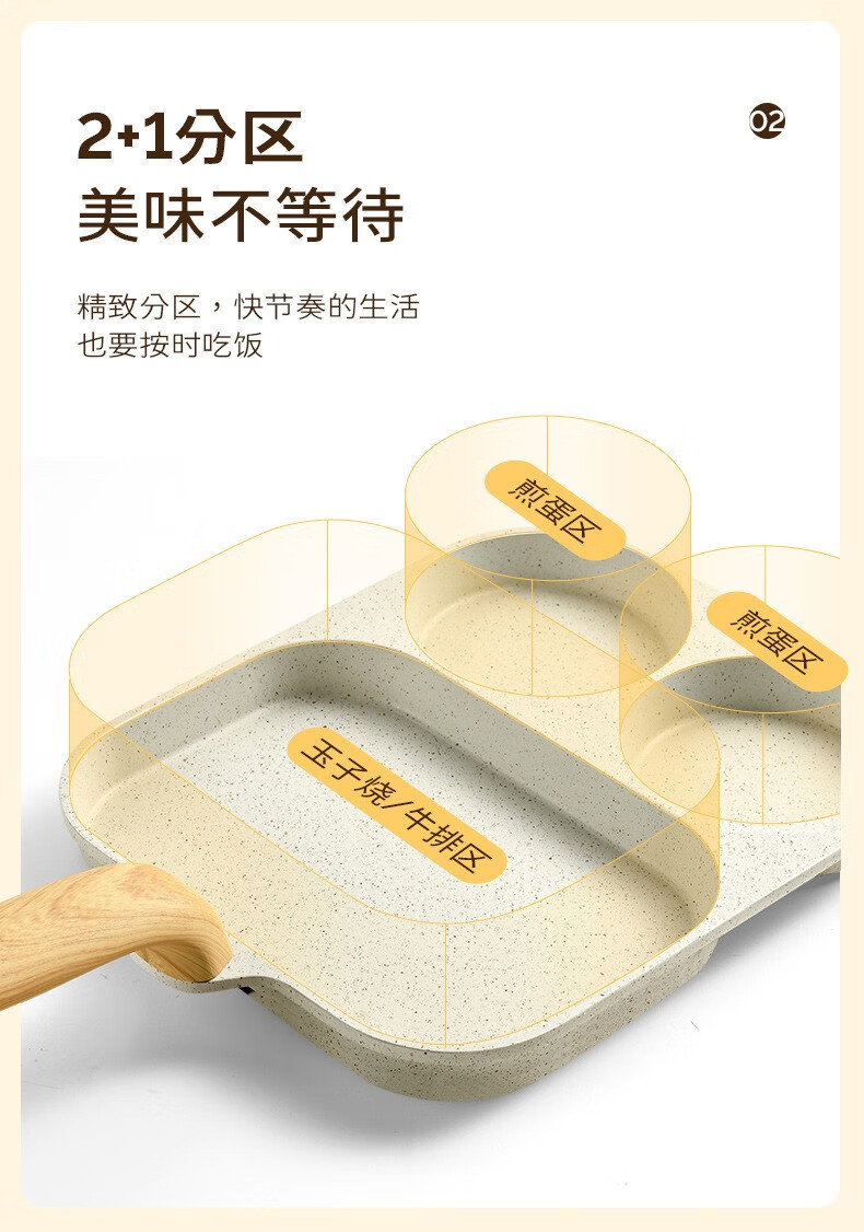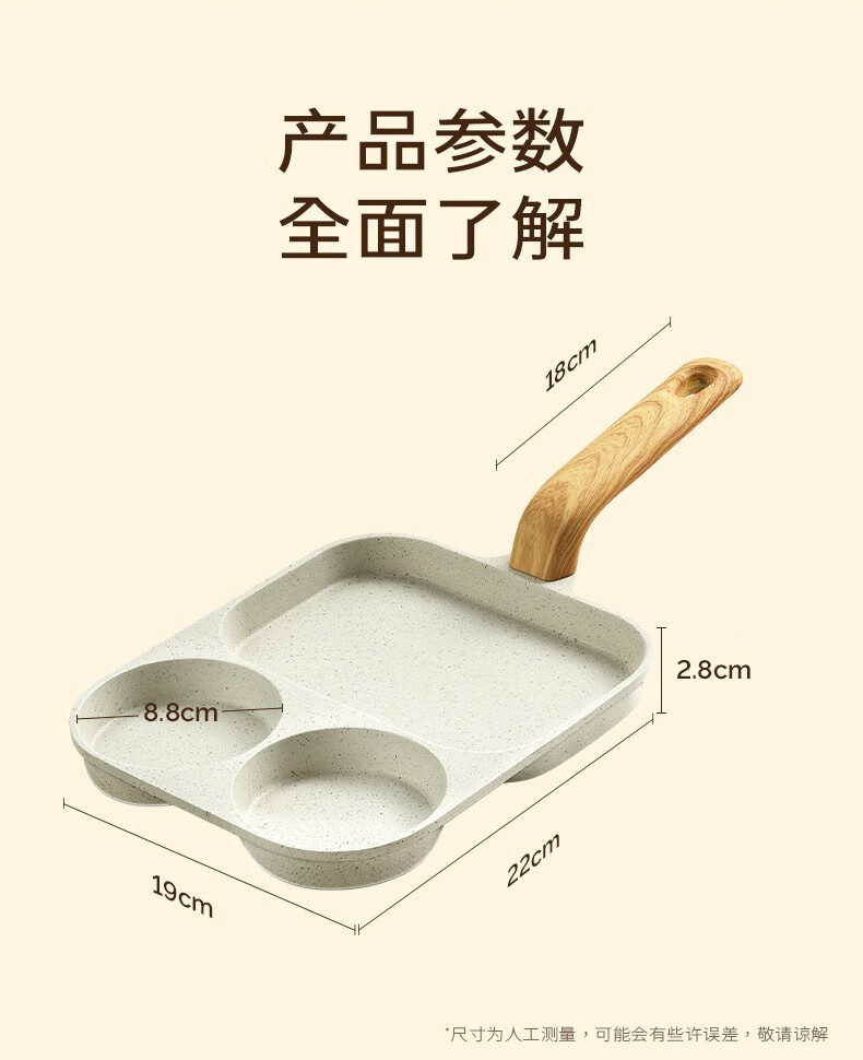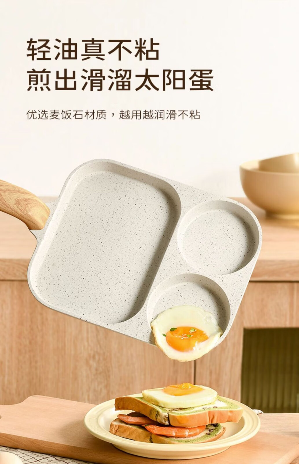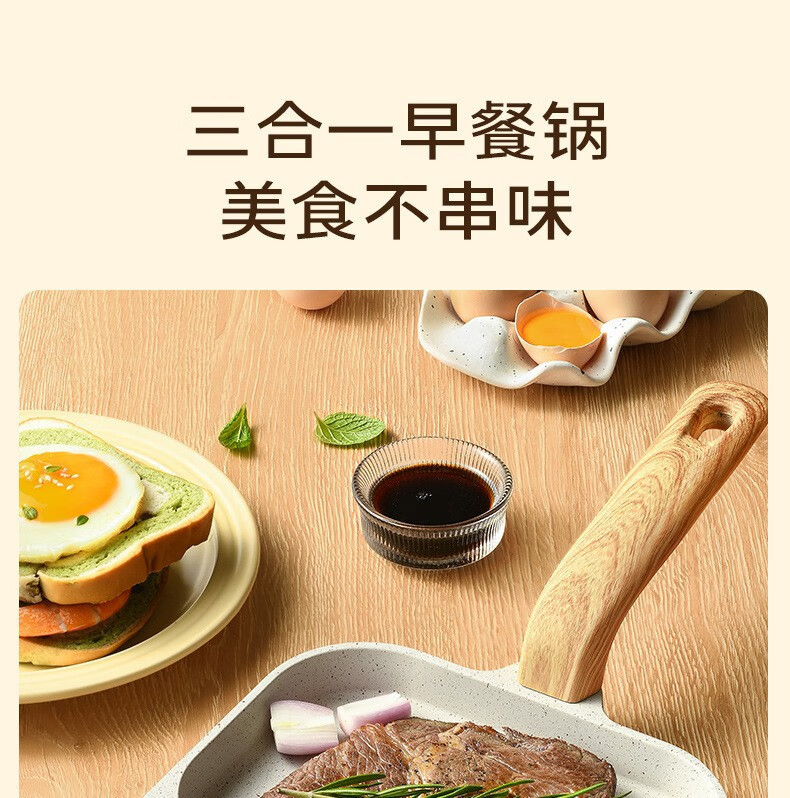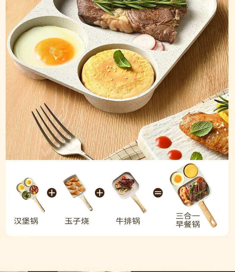 煎蛋锅不粘锅麦饭石加大鸡蛋煎蛋器平底锅三合一早餐锅迷你汉堡锅