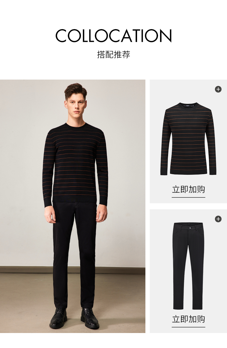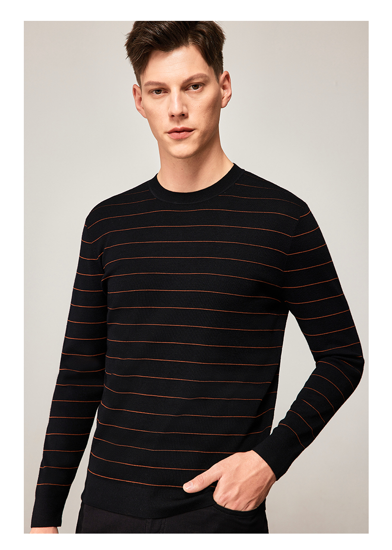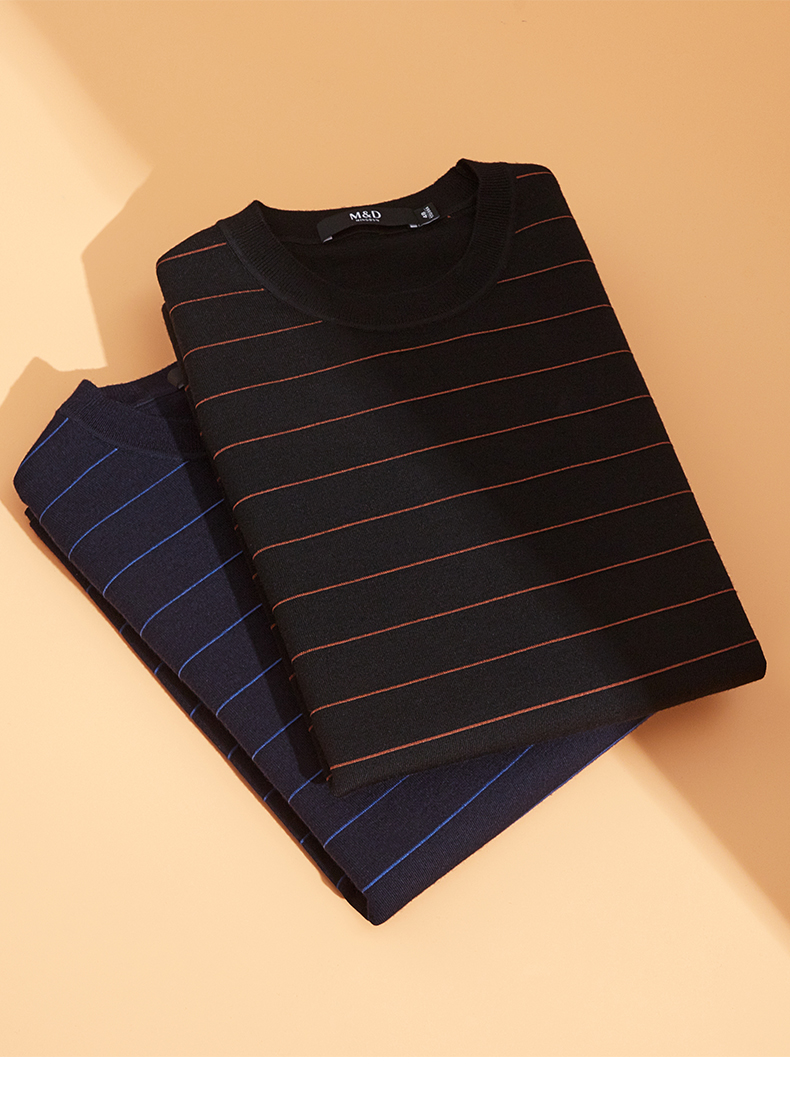 MD名盾男装羊毛针织衫商务休闲长袖条纹保暖毛衣男