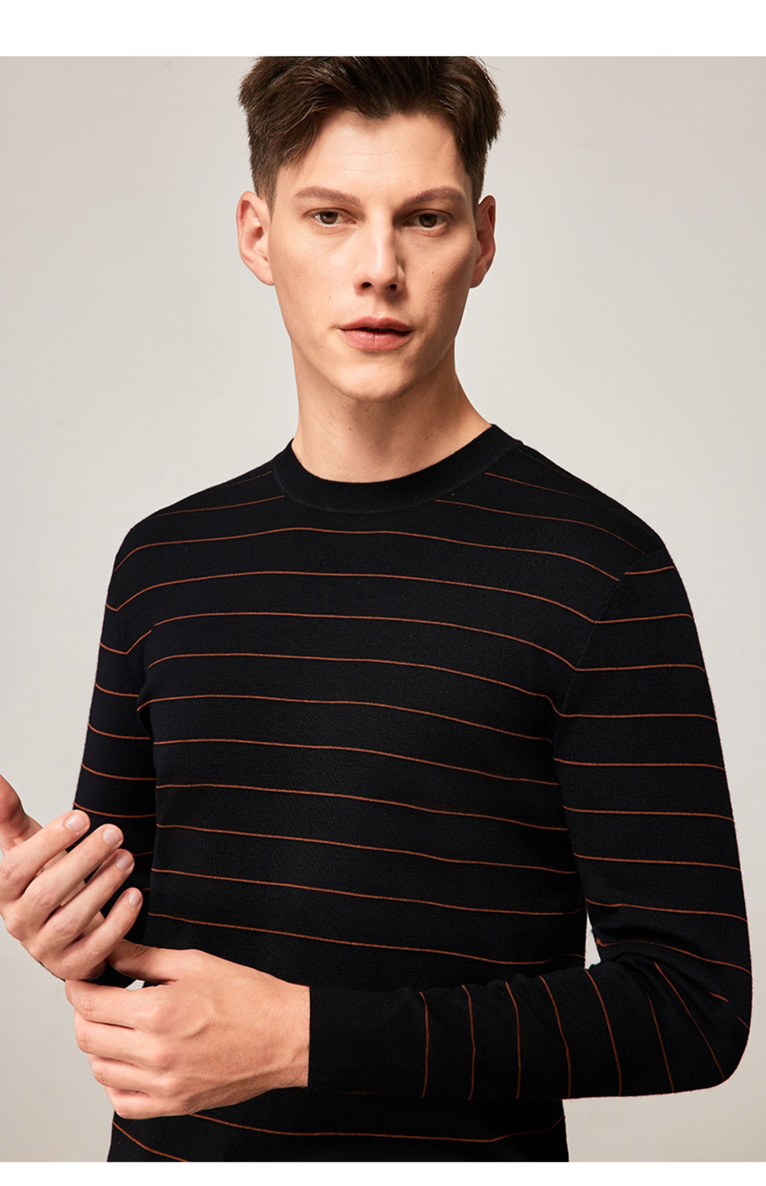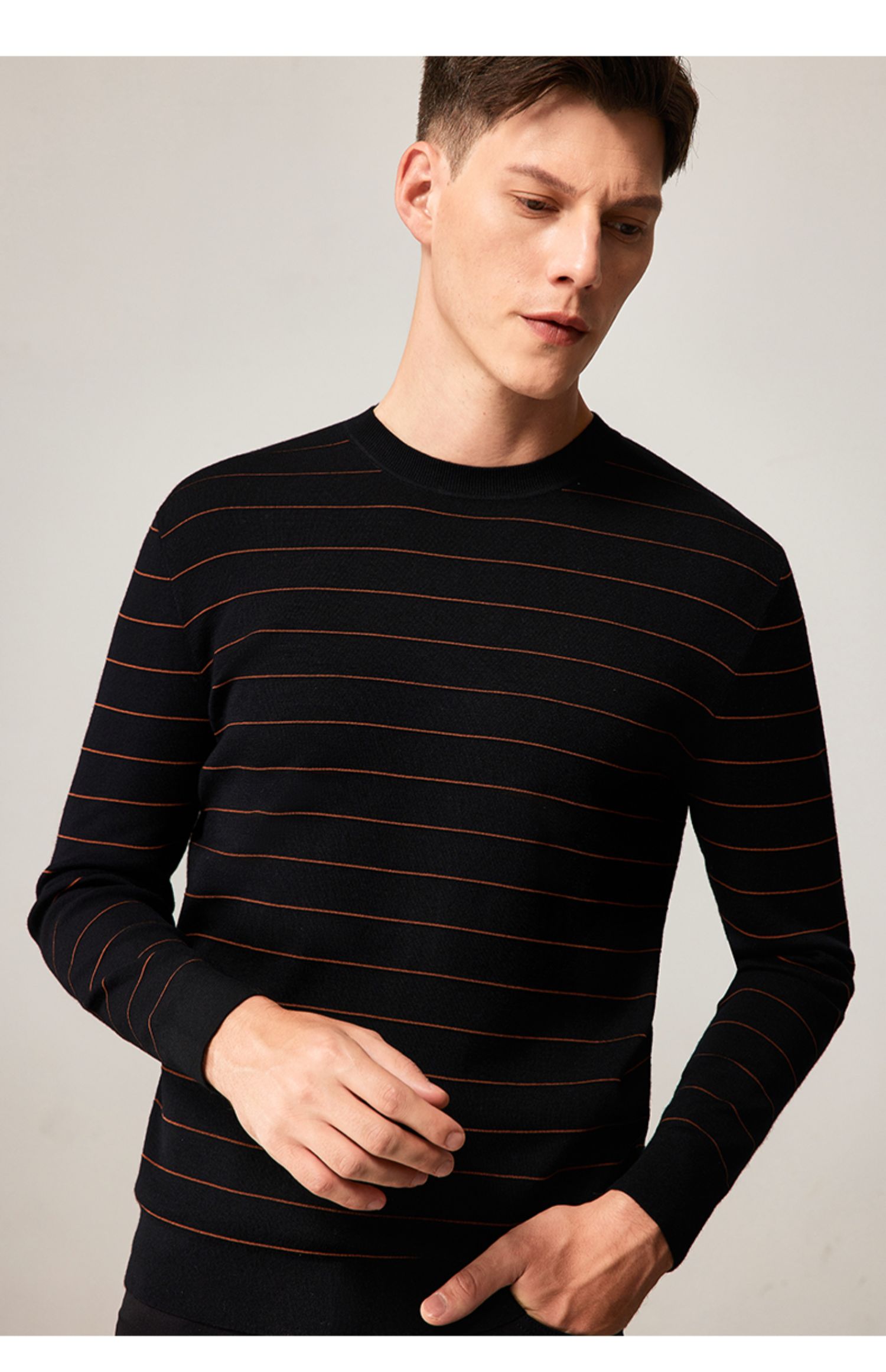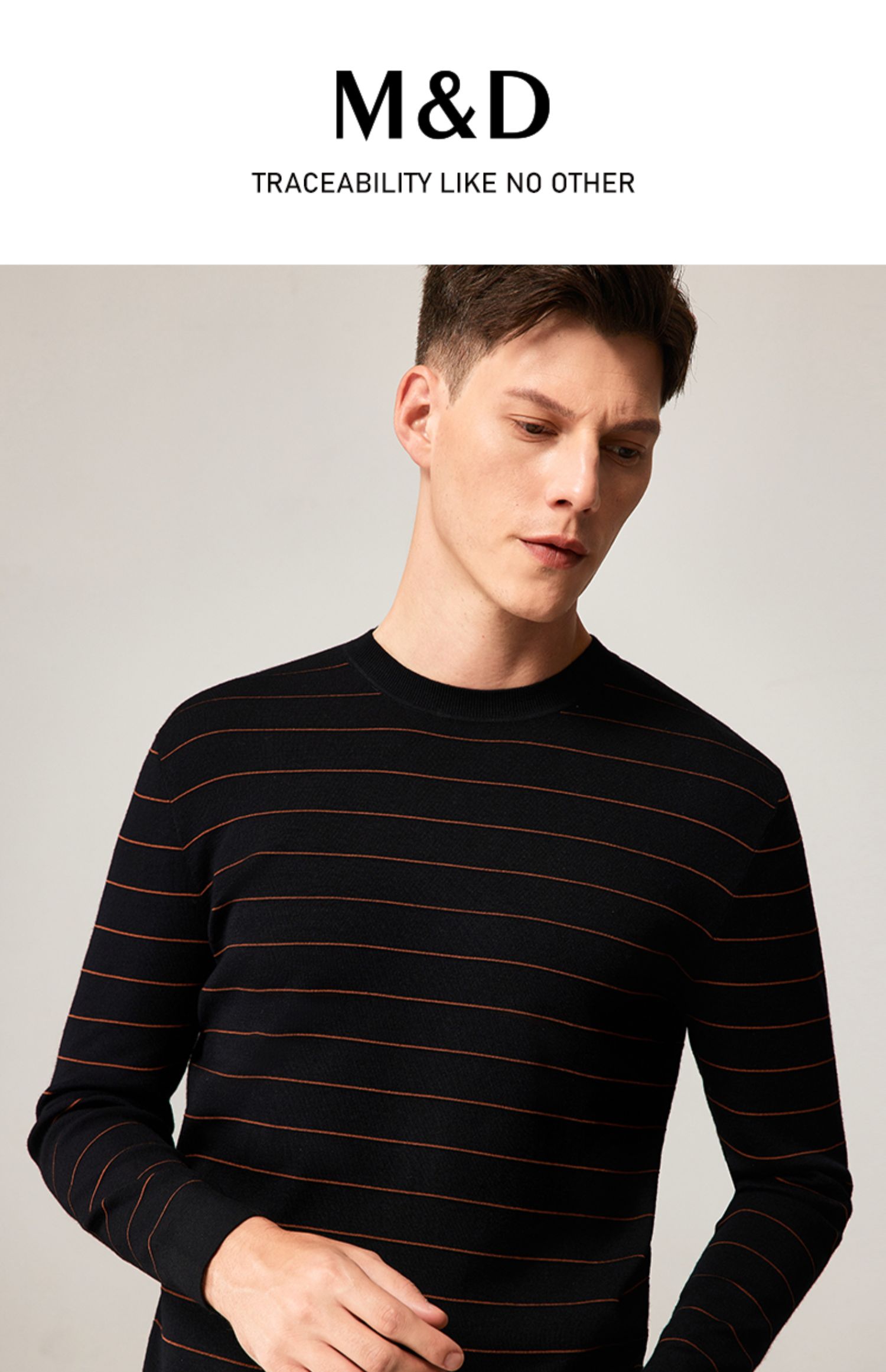 MD名盾男装羊毛针织衫商务休闲长袖条纹保暖毛衣男